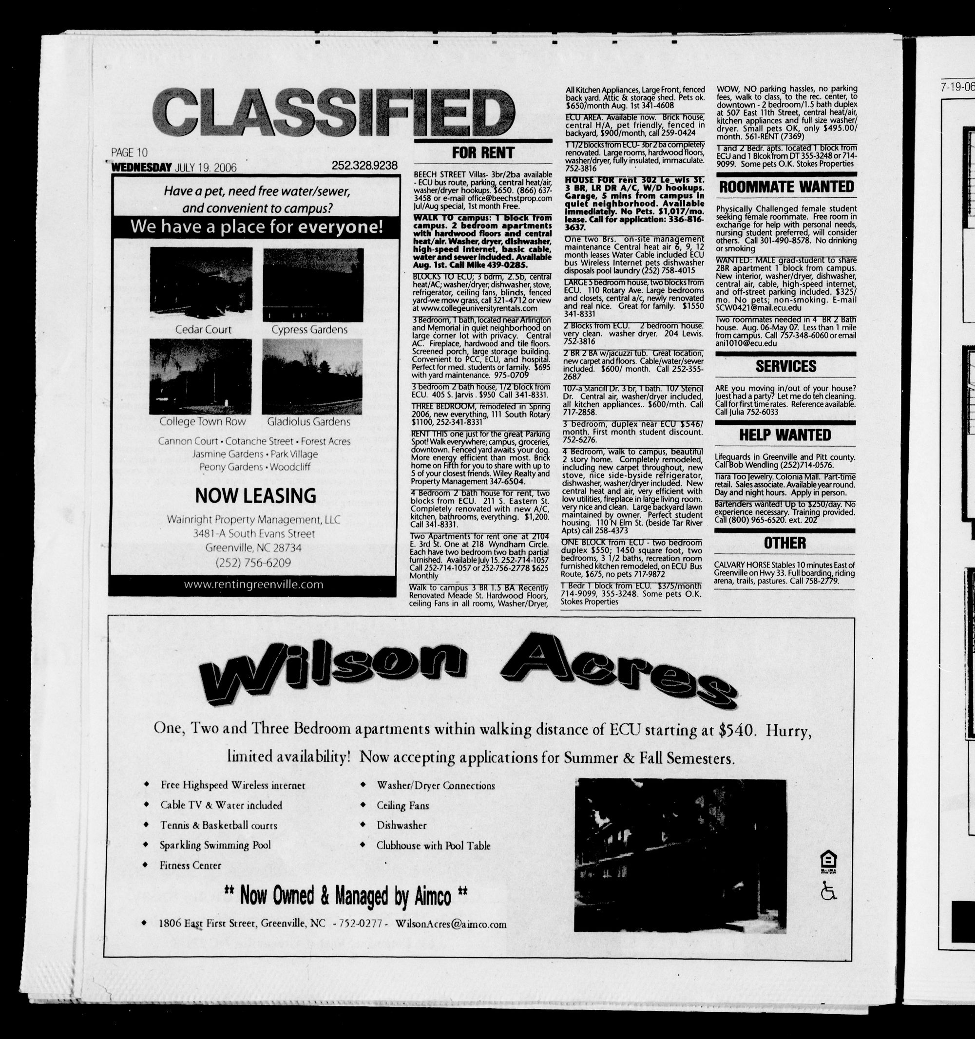 1806 Eajt First Street, Greenville, NC -752-0277- WilsonAcres@aimco.com