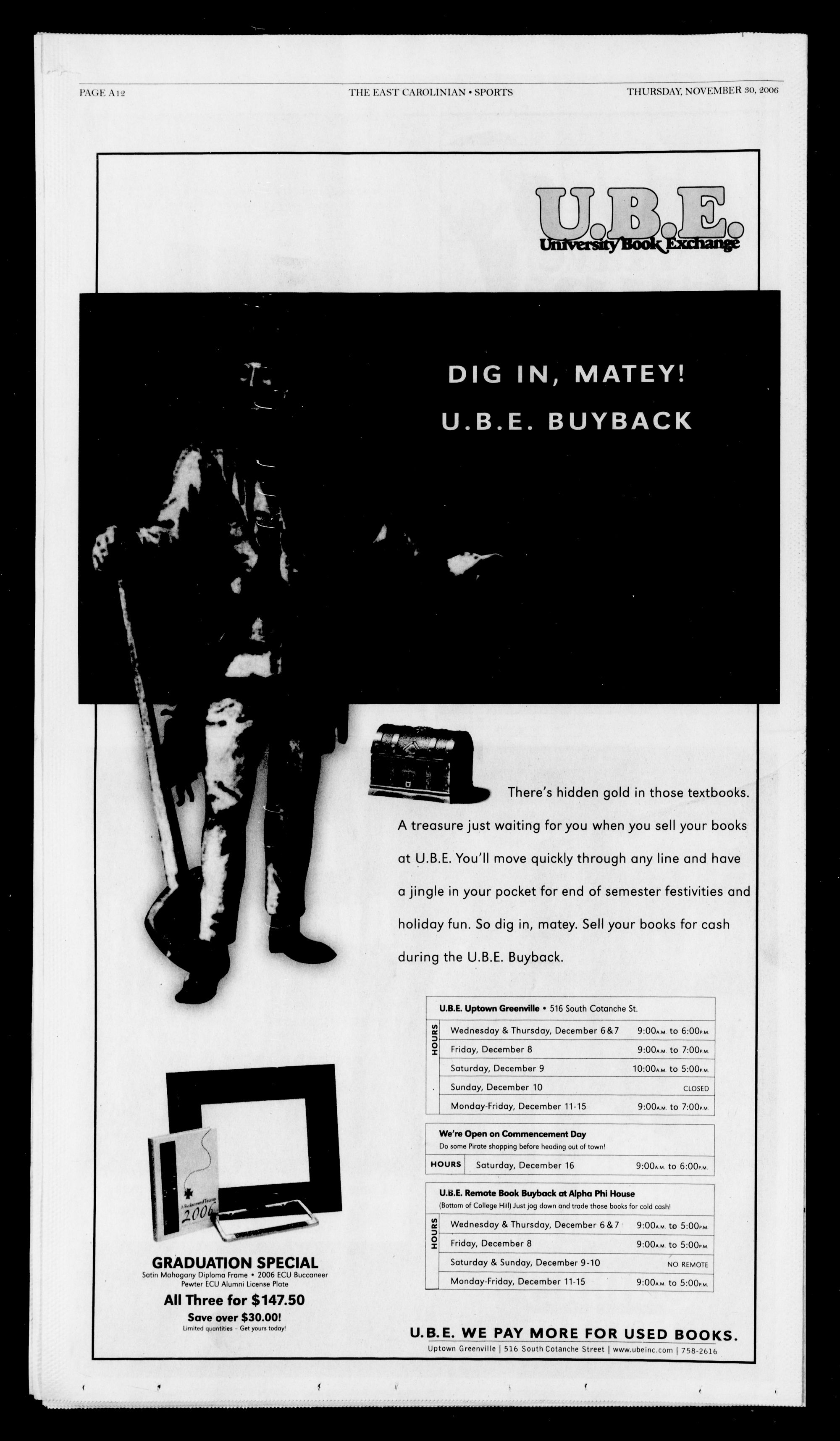 U.B.E. Remote Book Buyback at Alpha Phi House (Bottom of College Hill) Just jog down and trade those books for cold cash!