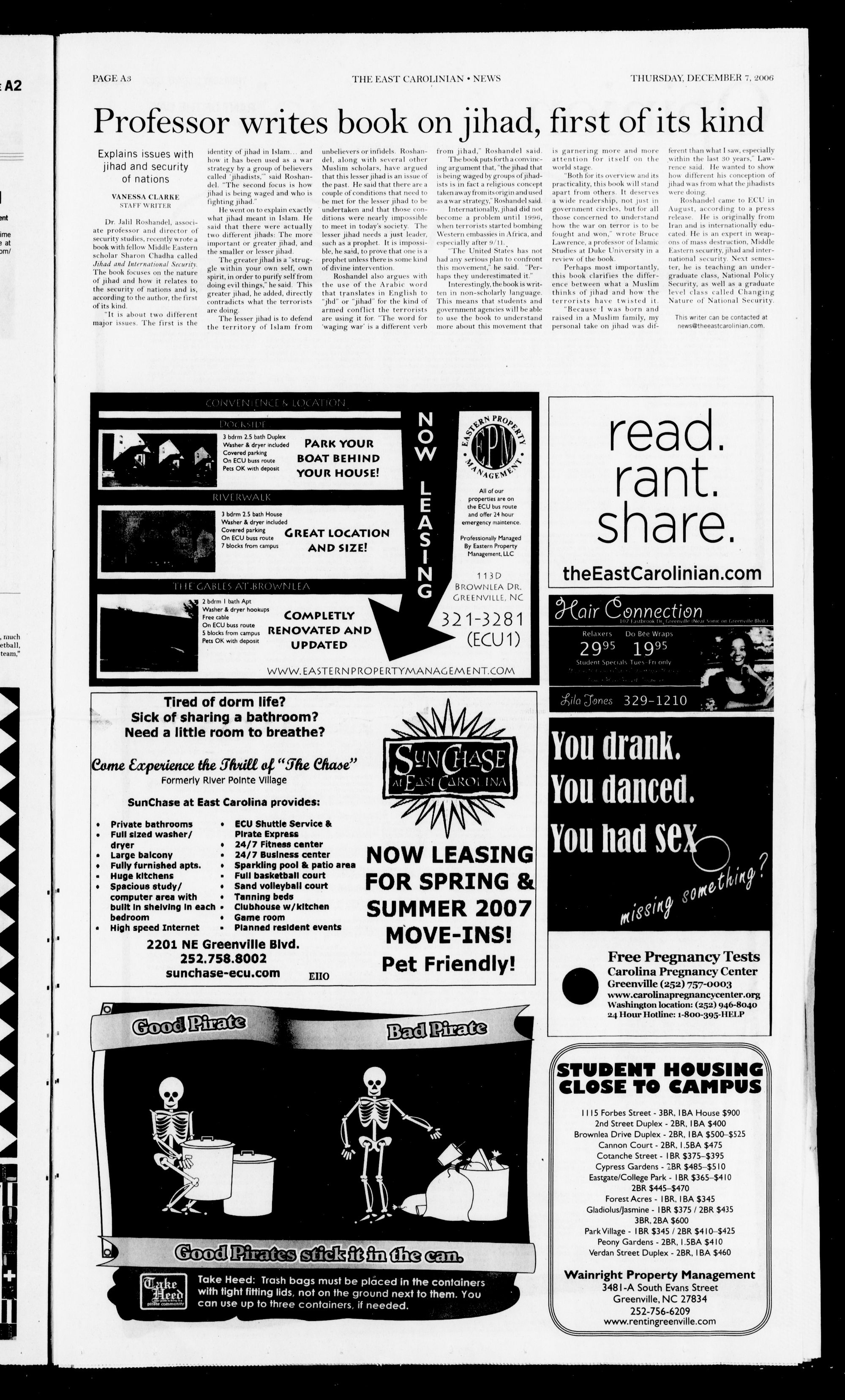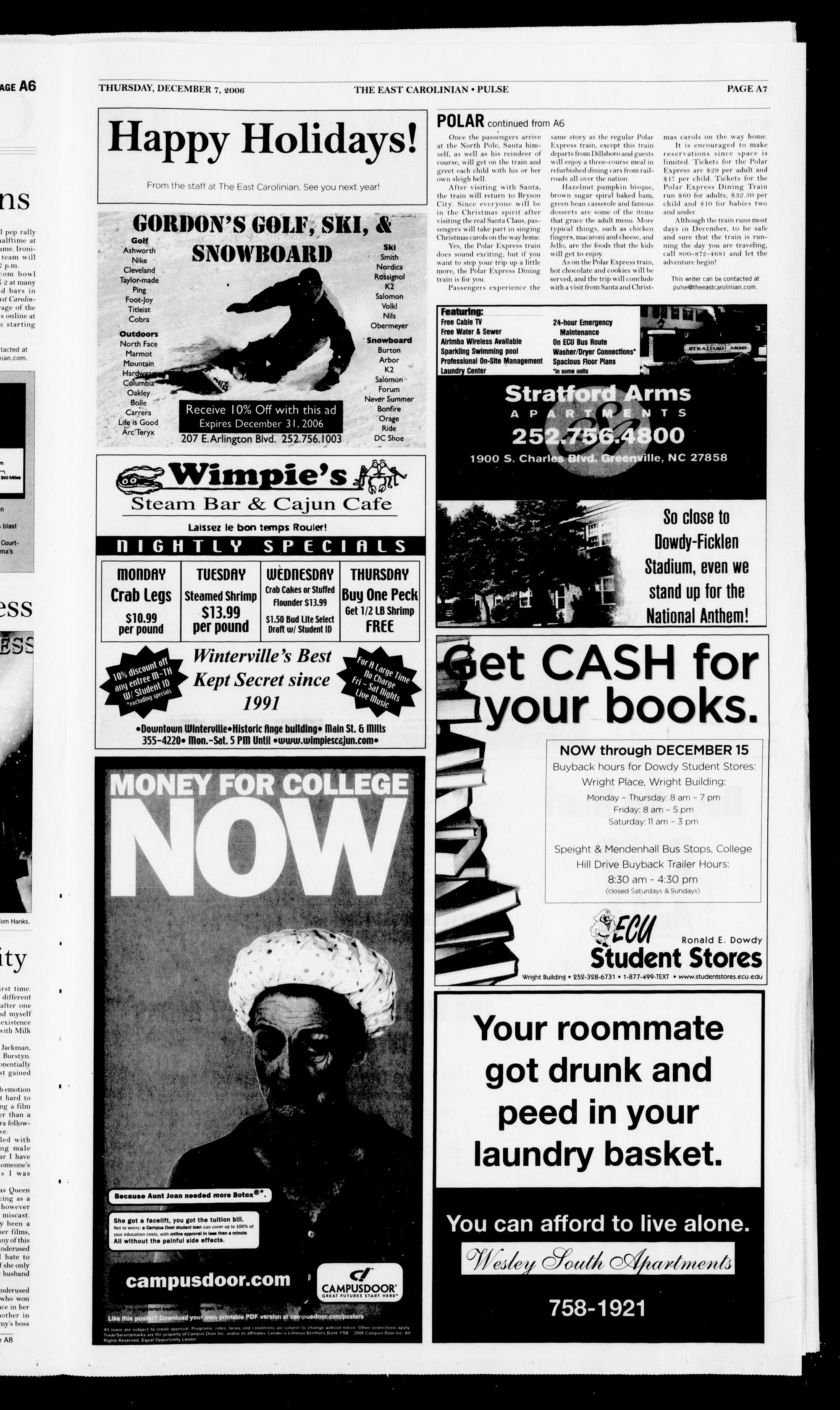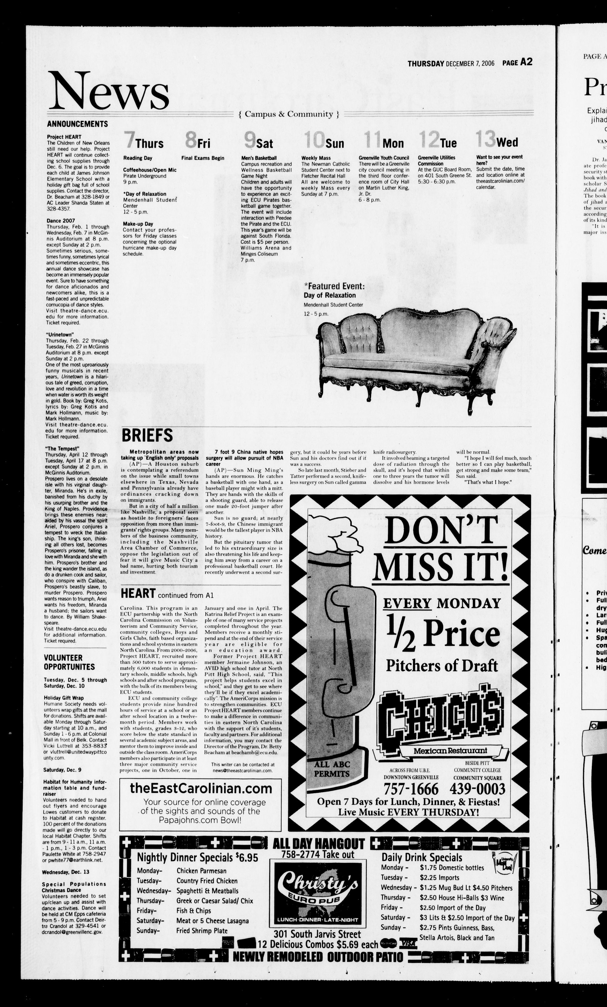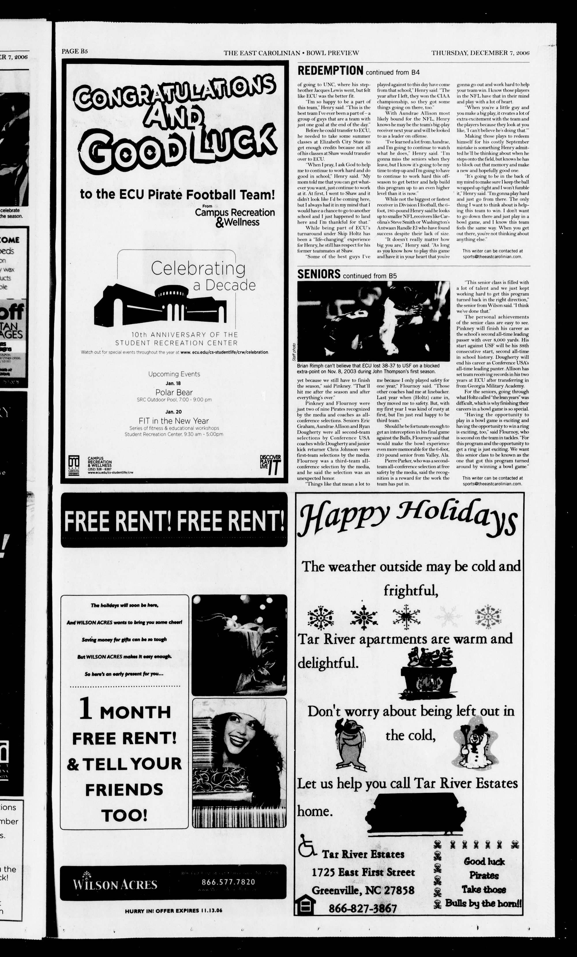 East Carolina's student-run campus newspaper was first published in 1923 as the East Carolina Teachers College News (1923-1925). It has been re-named as The Teco Echo (1925, 1926-1952), East Carolinian (1952-1969), Fountainhead (1969-1979), and The East Carolinian (1969, 1979-present). It includes local, state, national, and international stories with a focus on campus events.