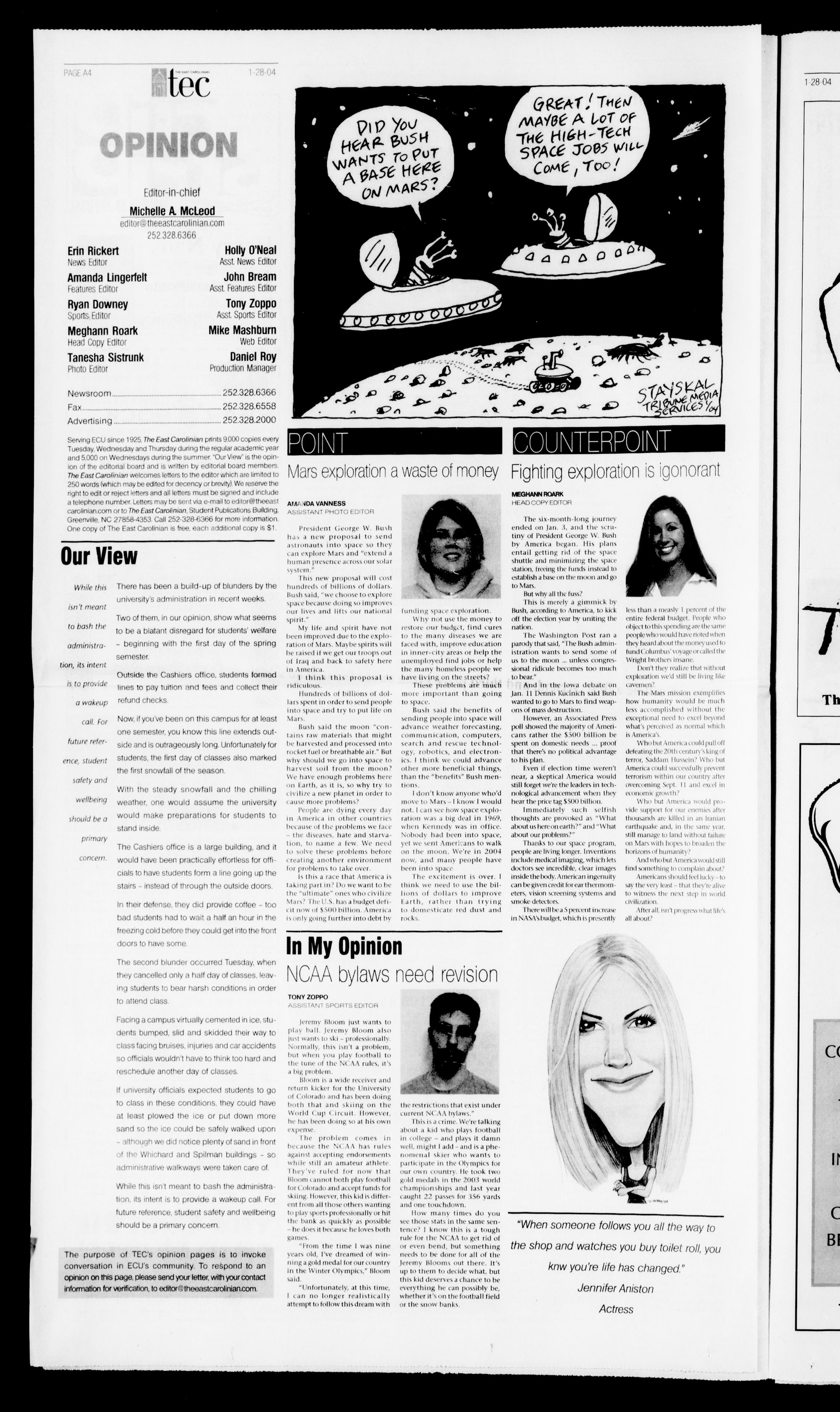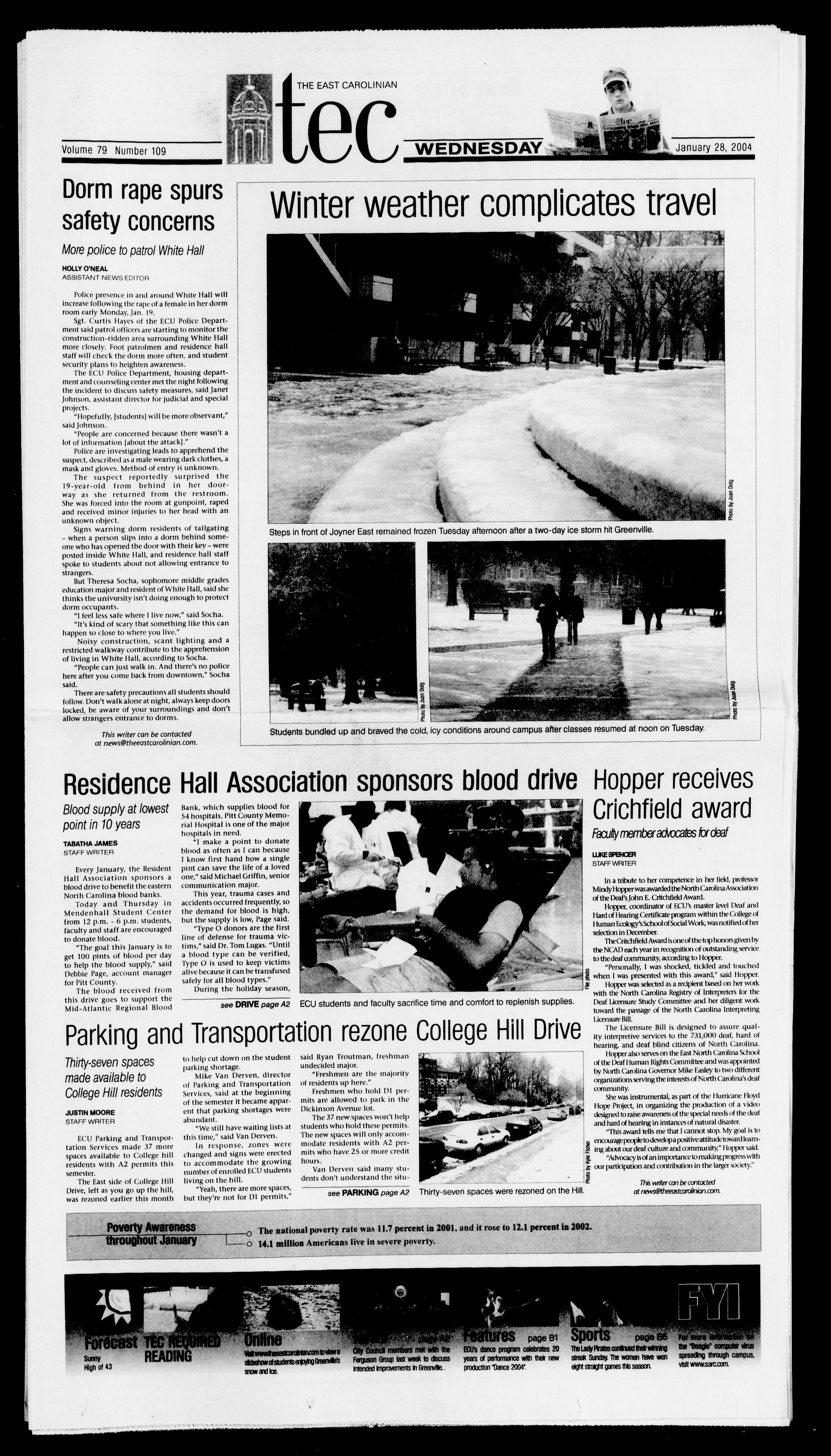 Students bundled up and braved the cold, icy conditions around campus after classes resumed at noon on Tuesday.