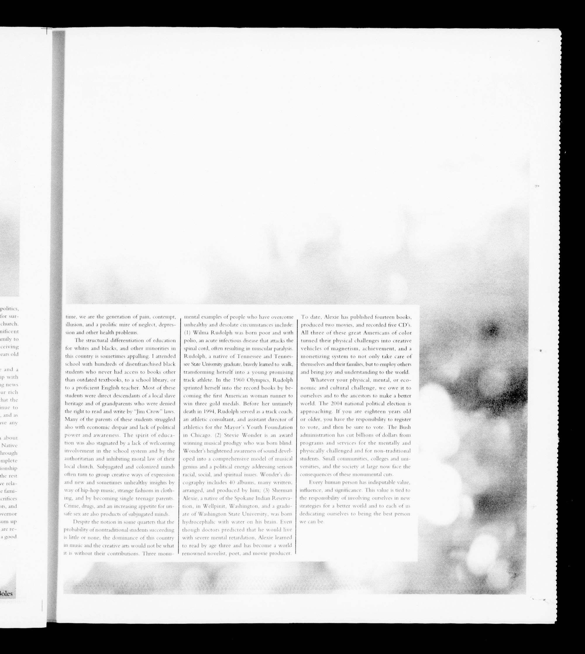 issues as cutting college tuition, affirmative action, "Leave No Child