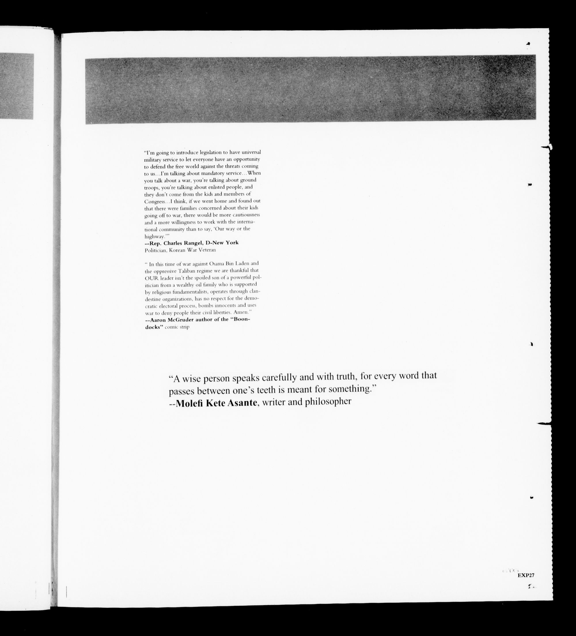 The responsibility of Expressions is to present the opinions and attitudes of vari-