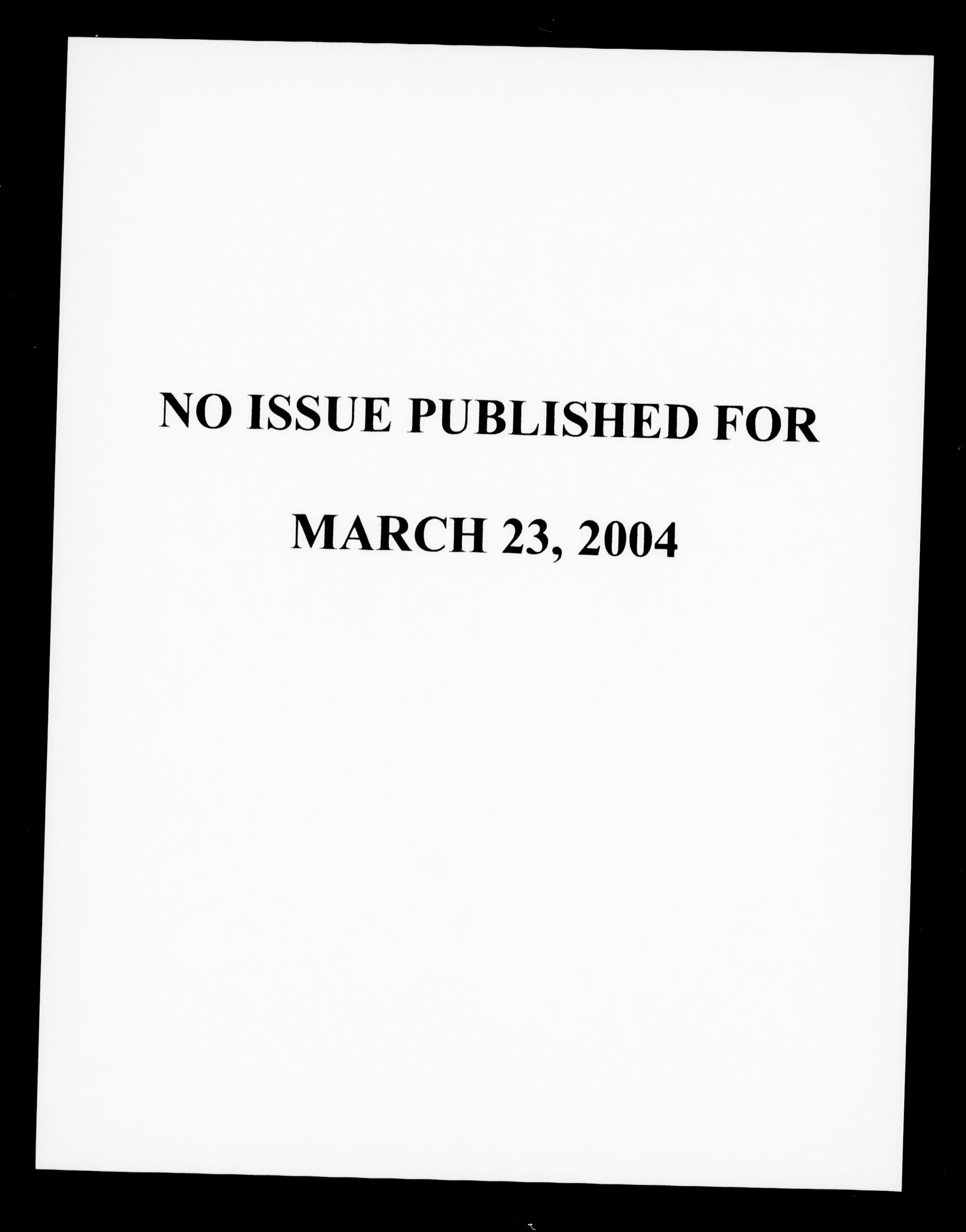 NO ISSUE PUBLISHED FOR