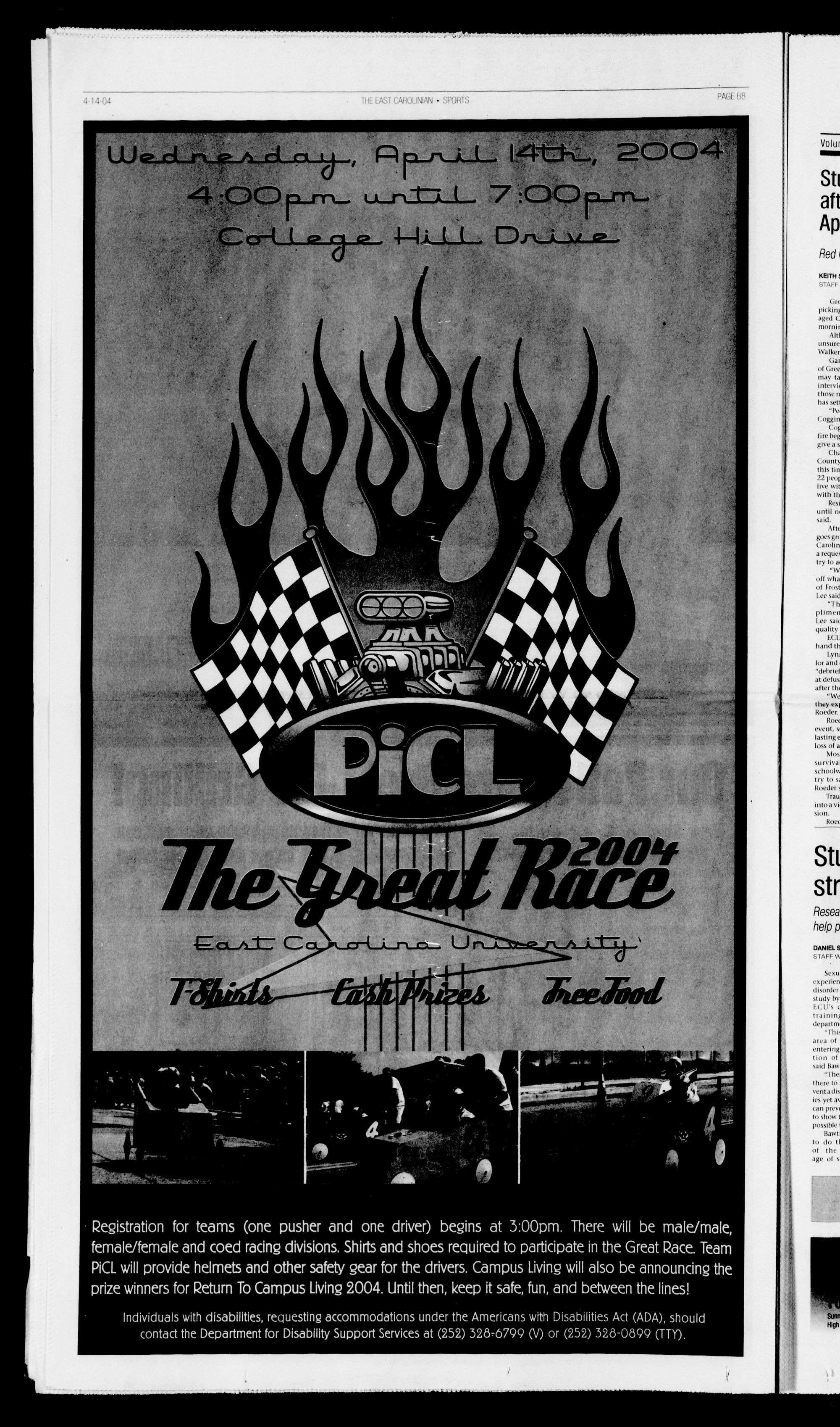 PiCL will provide helmets and other safety gear for the drivers. Campus Living will also be announcing the