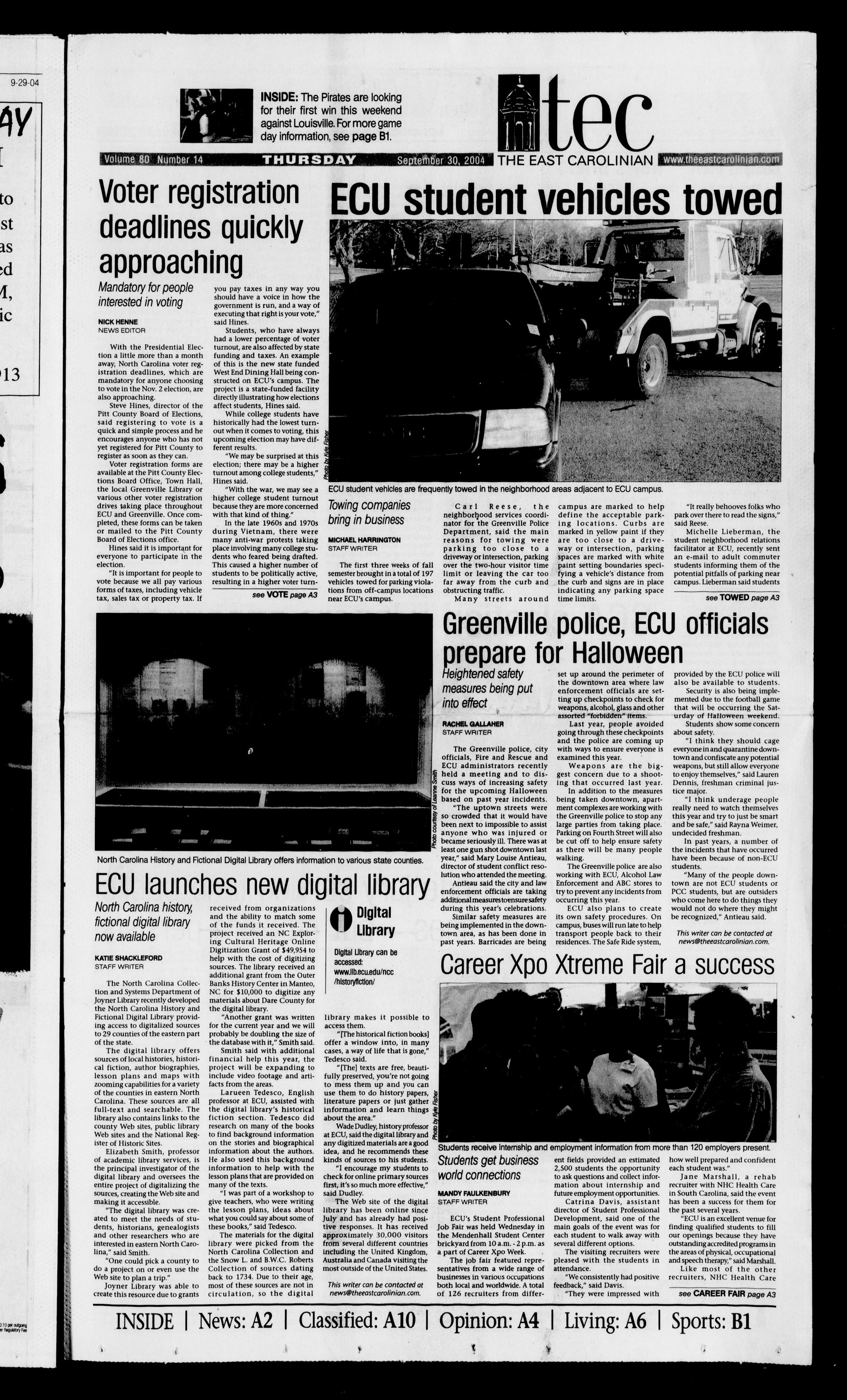 ECU student vehicles are frequently towed in the neighborhood areas adjacent to ECU campus.
