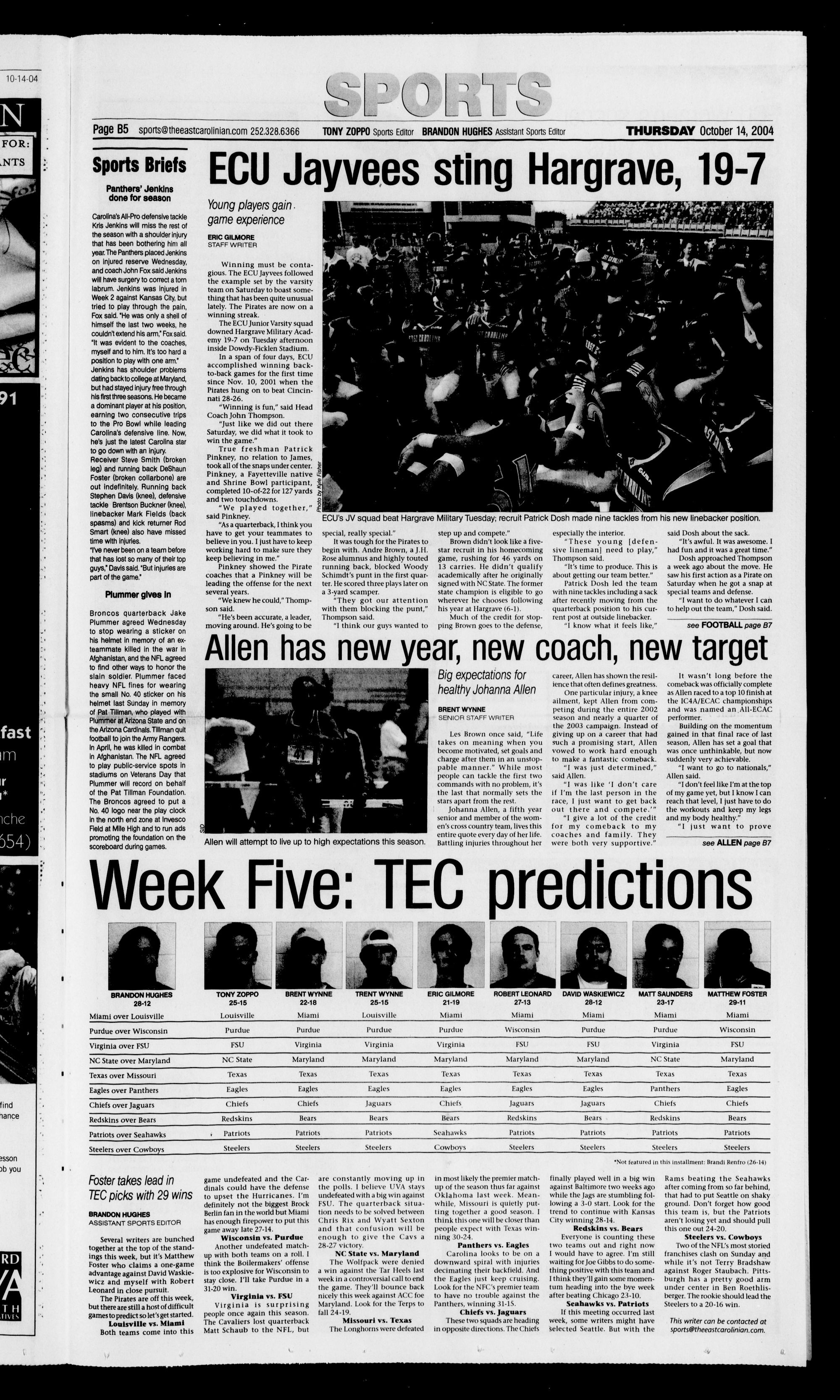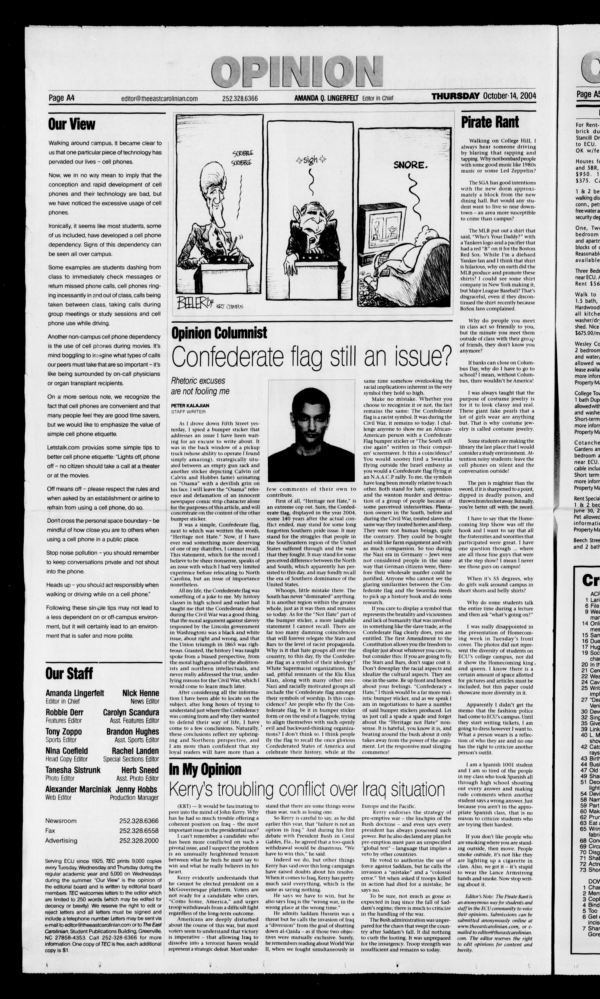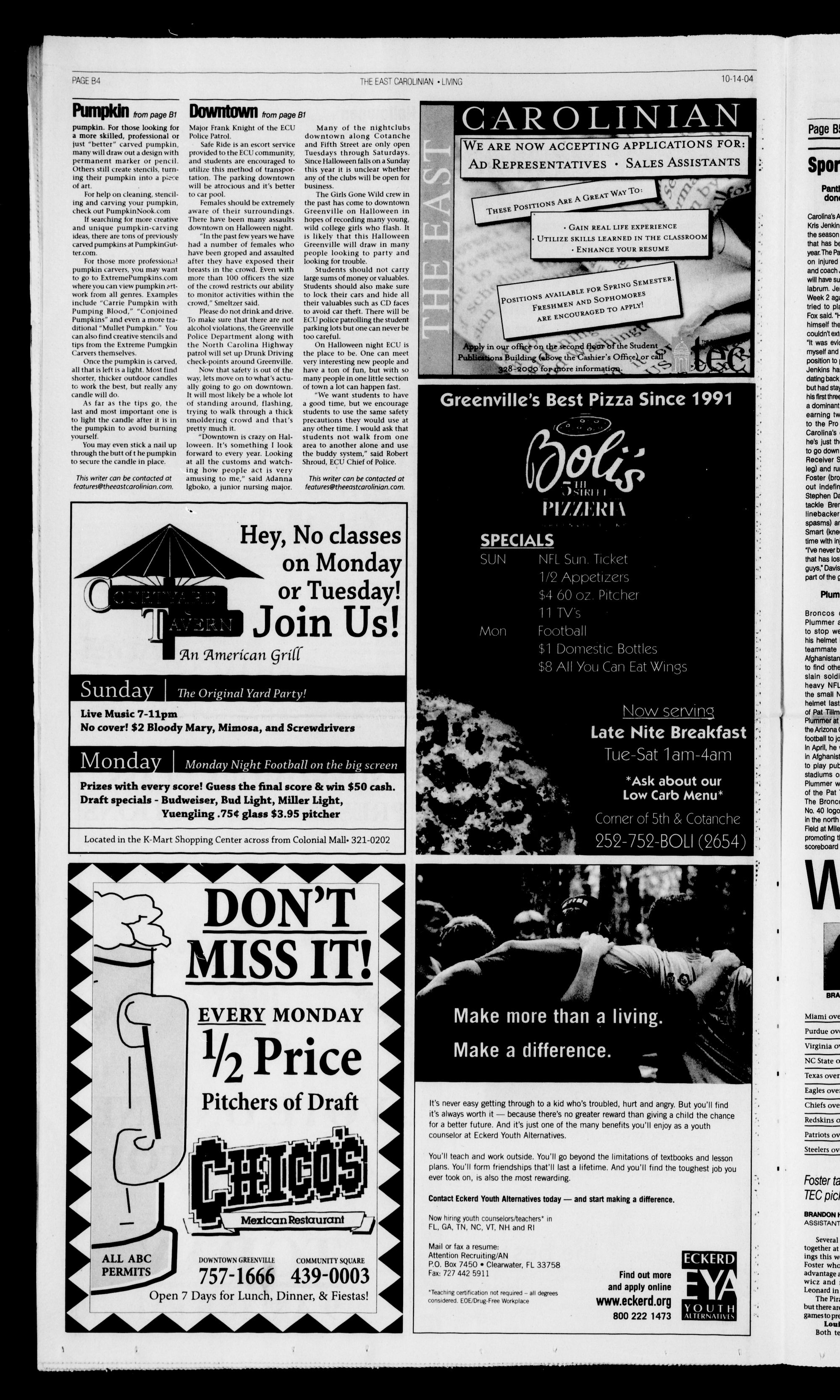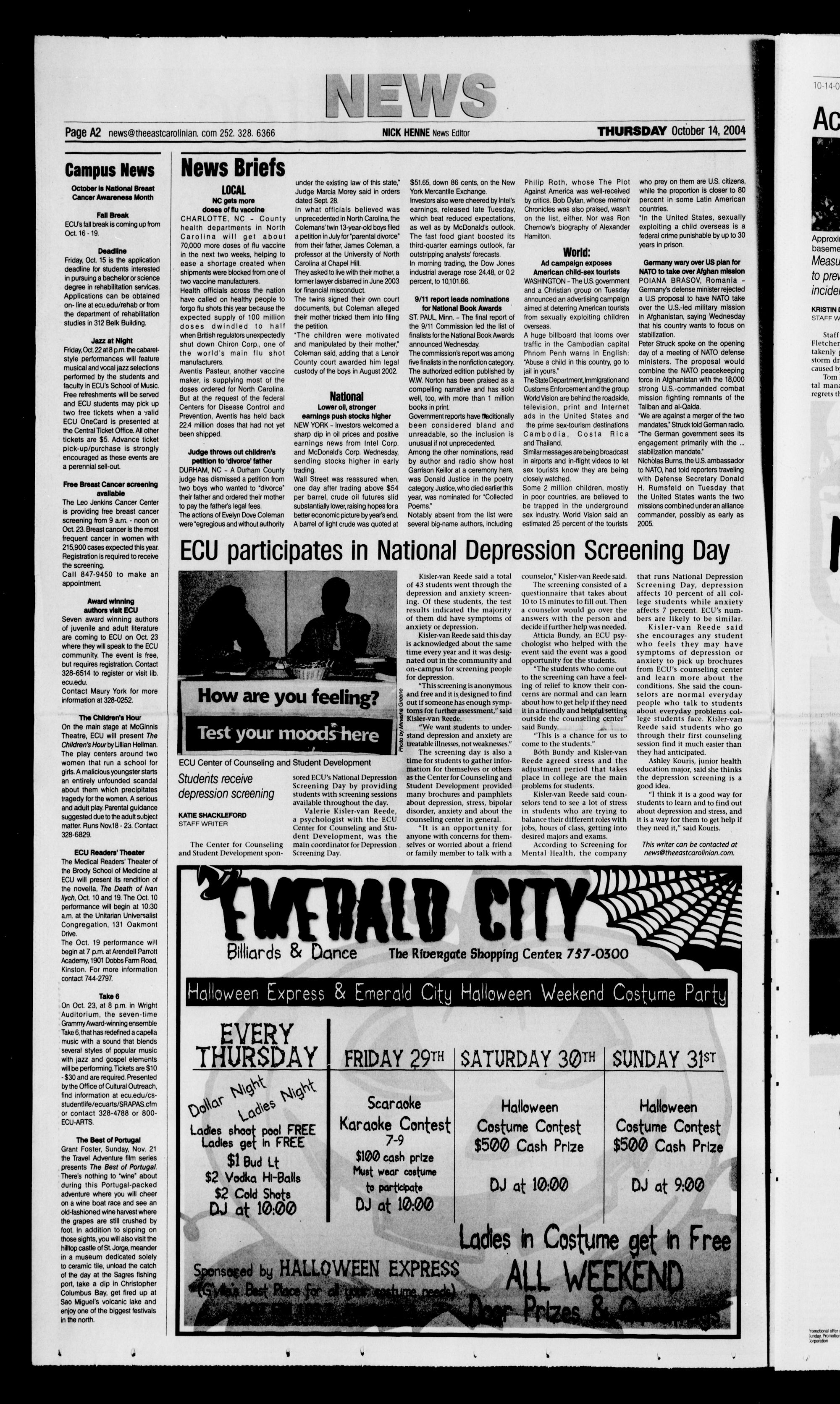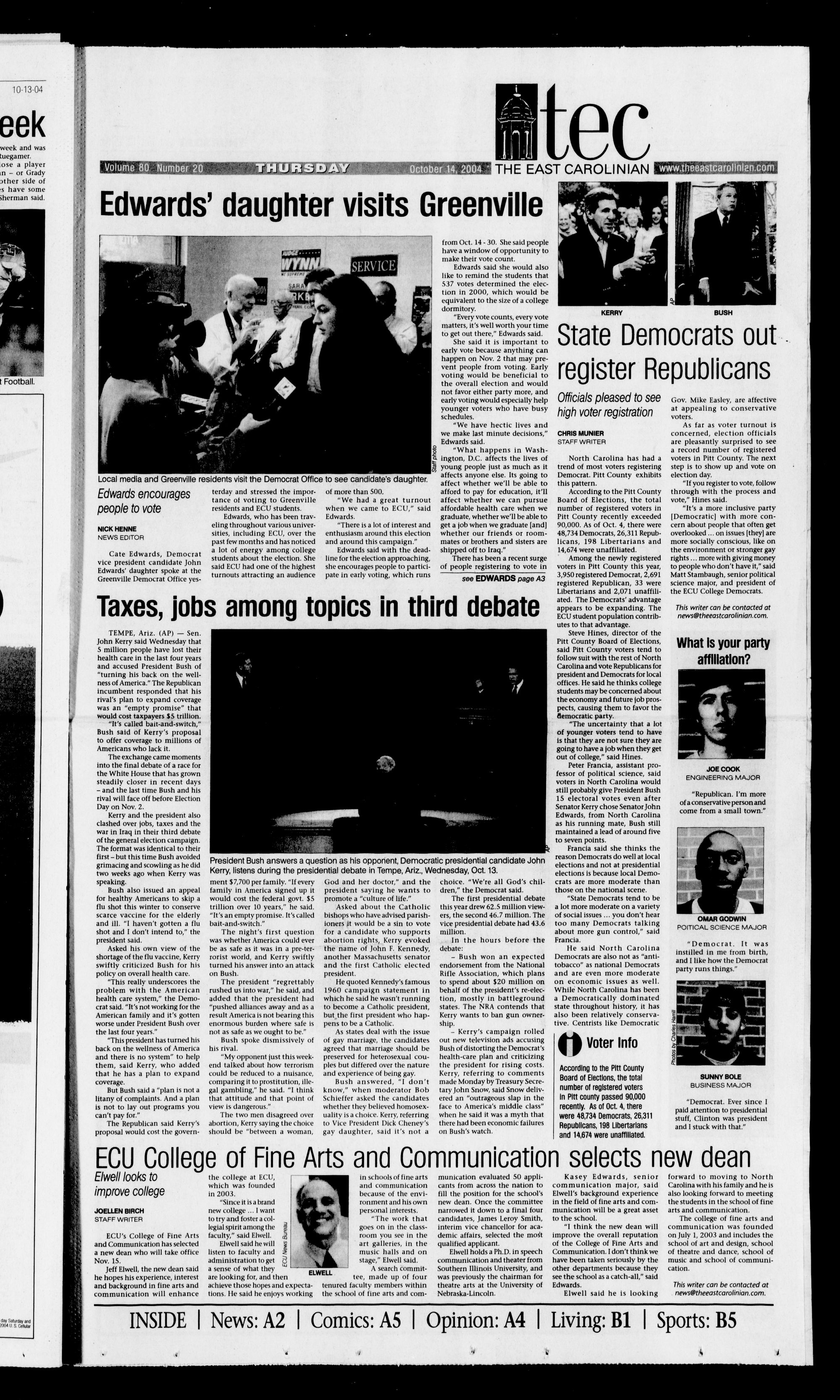 East Carolina's student-run campus newspaper was first published in 1923 as the East Carolina Teachers College News (1923-1925). It has been re-named as The Teco Echo (1925, 1926-1952), East Carolinian (1952-1969), Fountainhead (1969-1979), and The East Carolinian (1969, 1979-present). It includes local, state, national, and international stories with a focus on campus events.