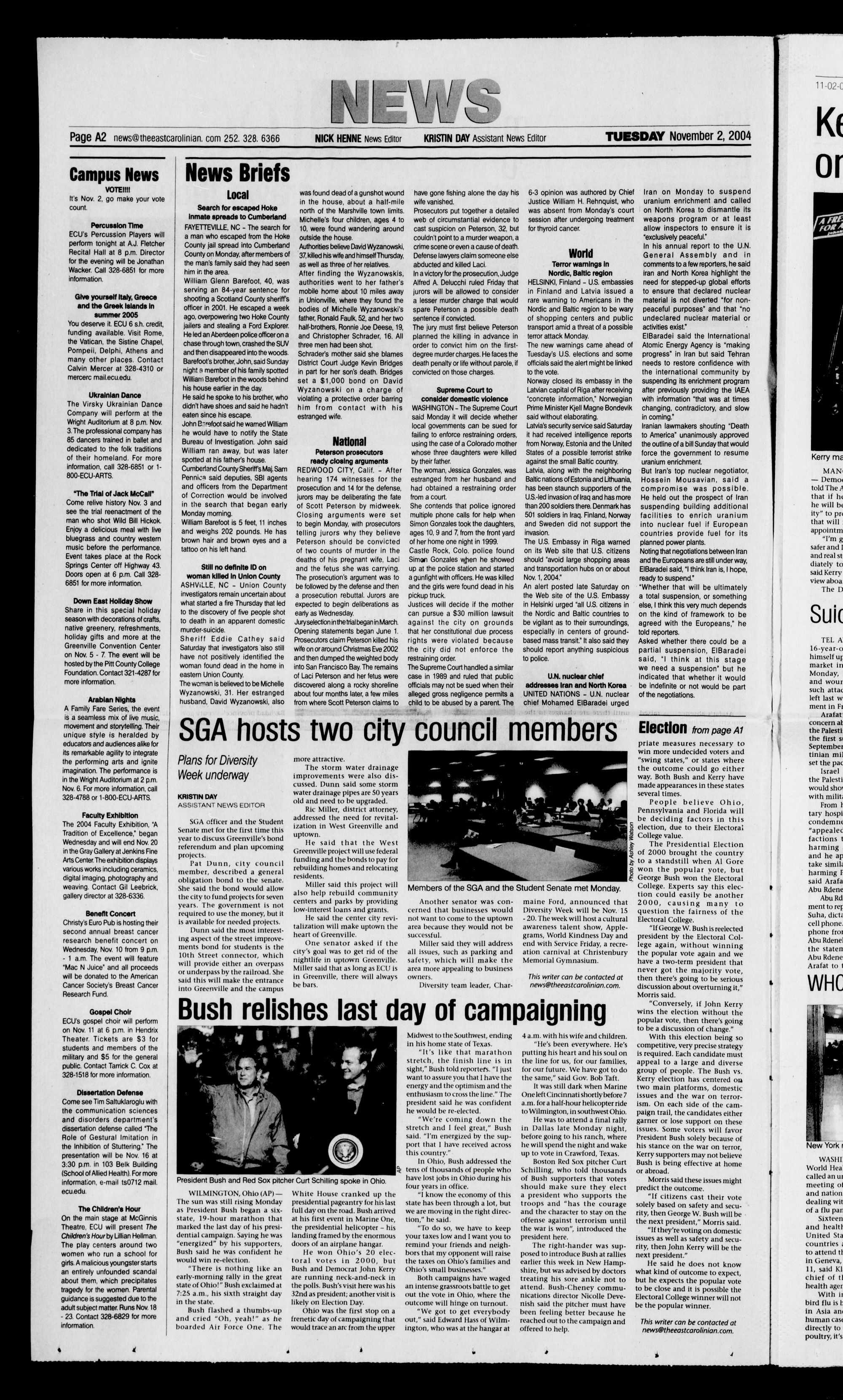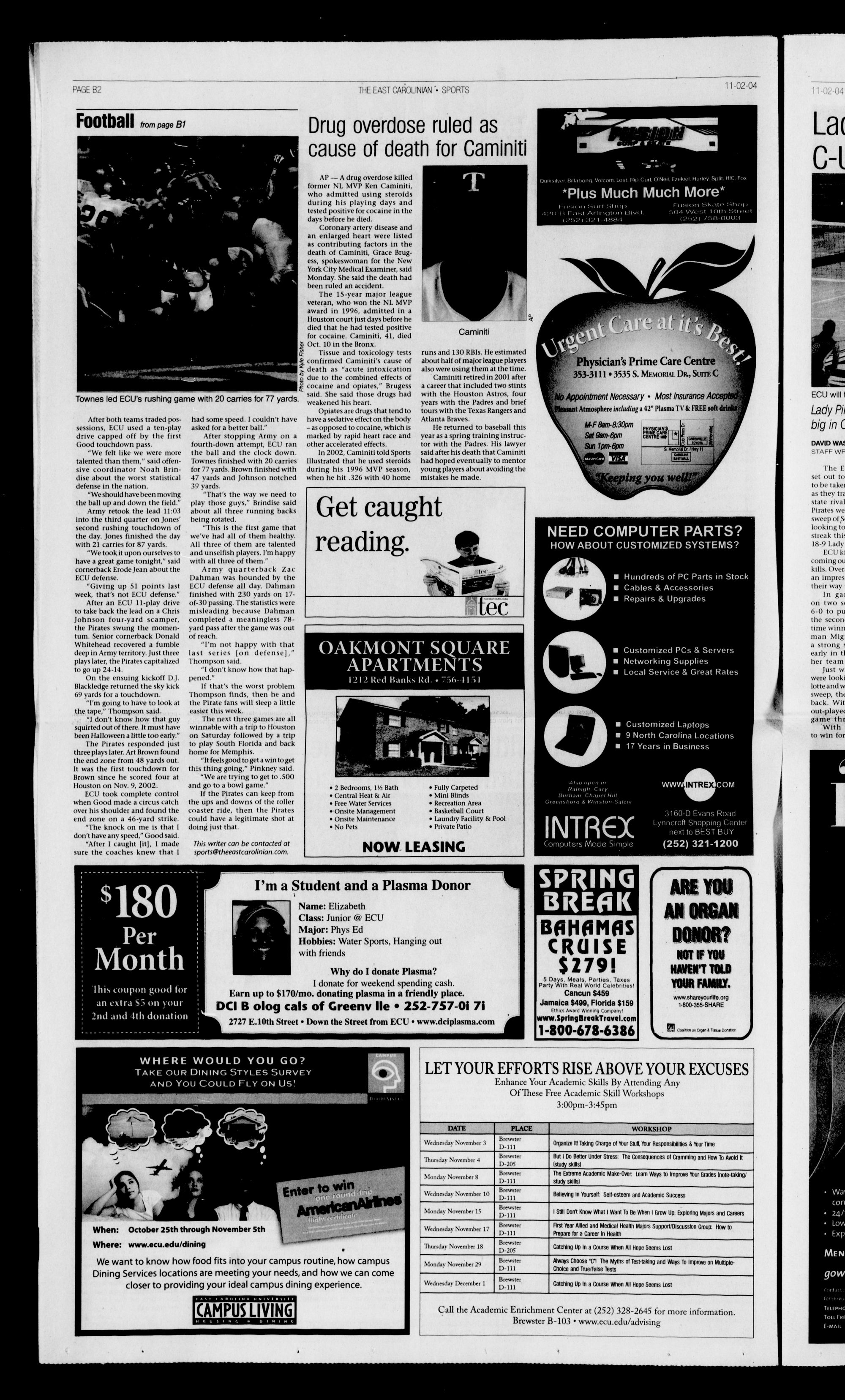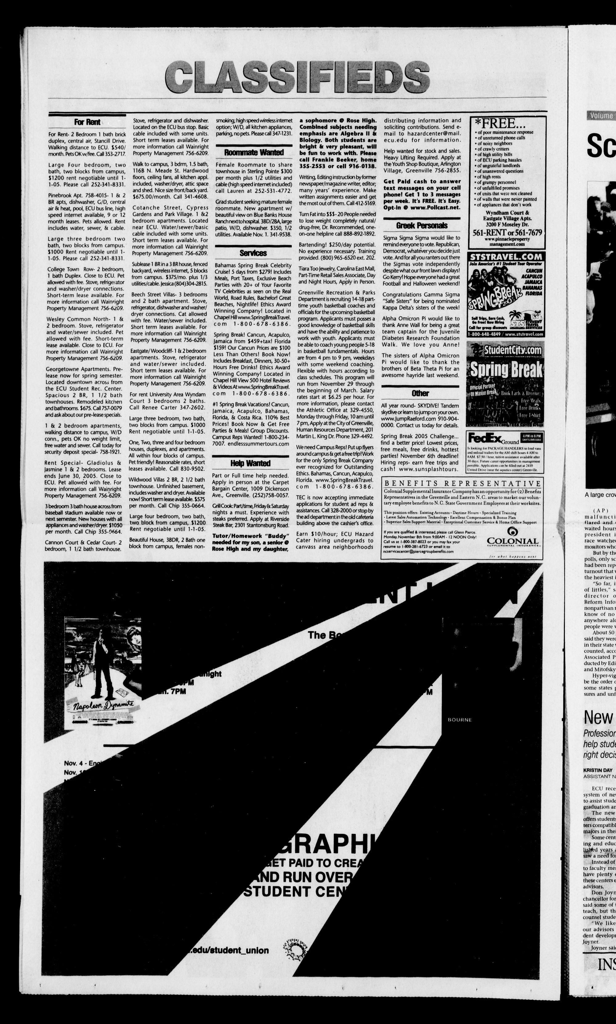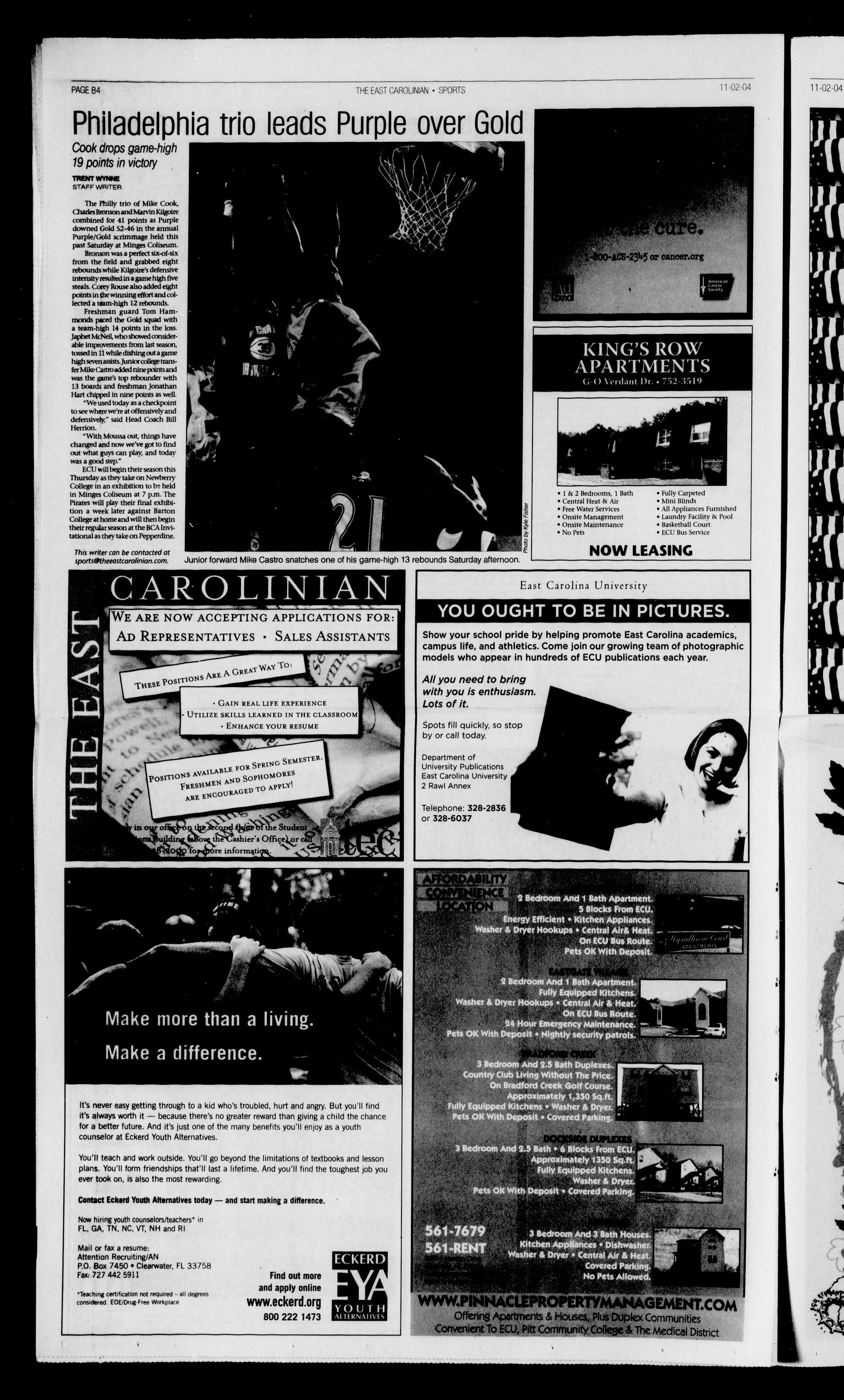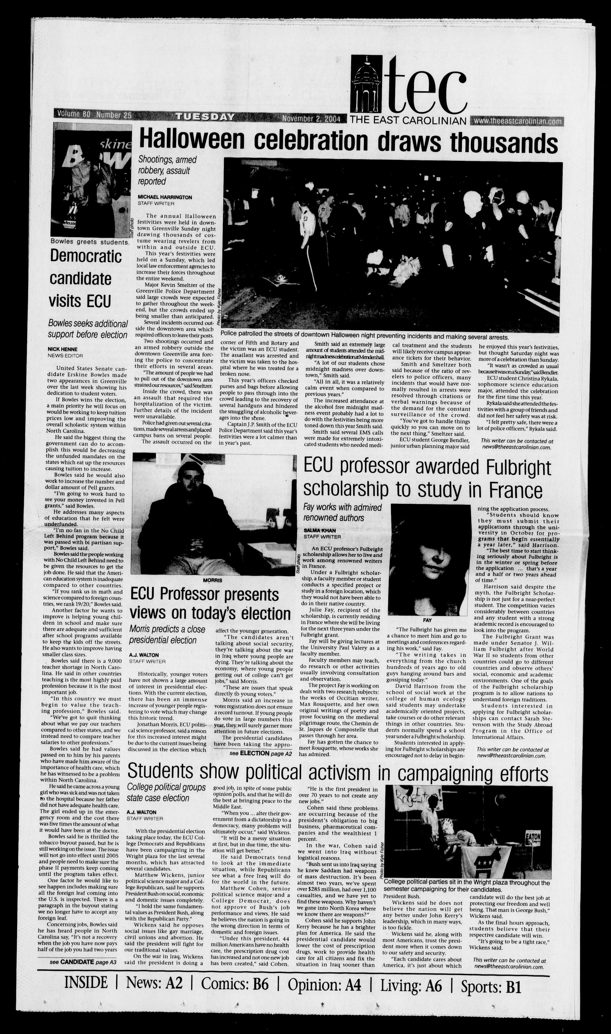 East Carolina's student-run campus newspaper was first published in 1923 as the East Carolina Teachers College News (1923-1925). It has been re-named as The Teco Echo (1925, 1926-1952), East Carolinian (1952-1969), Fountainhead (1969-1979), and The East Carolinian (1969, 1979-present). It includes local, state, national, and international stories with a focus on campus events.