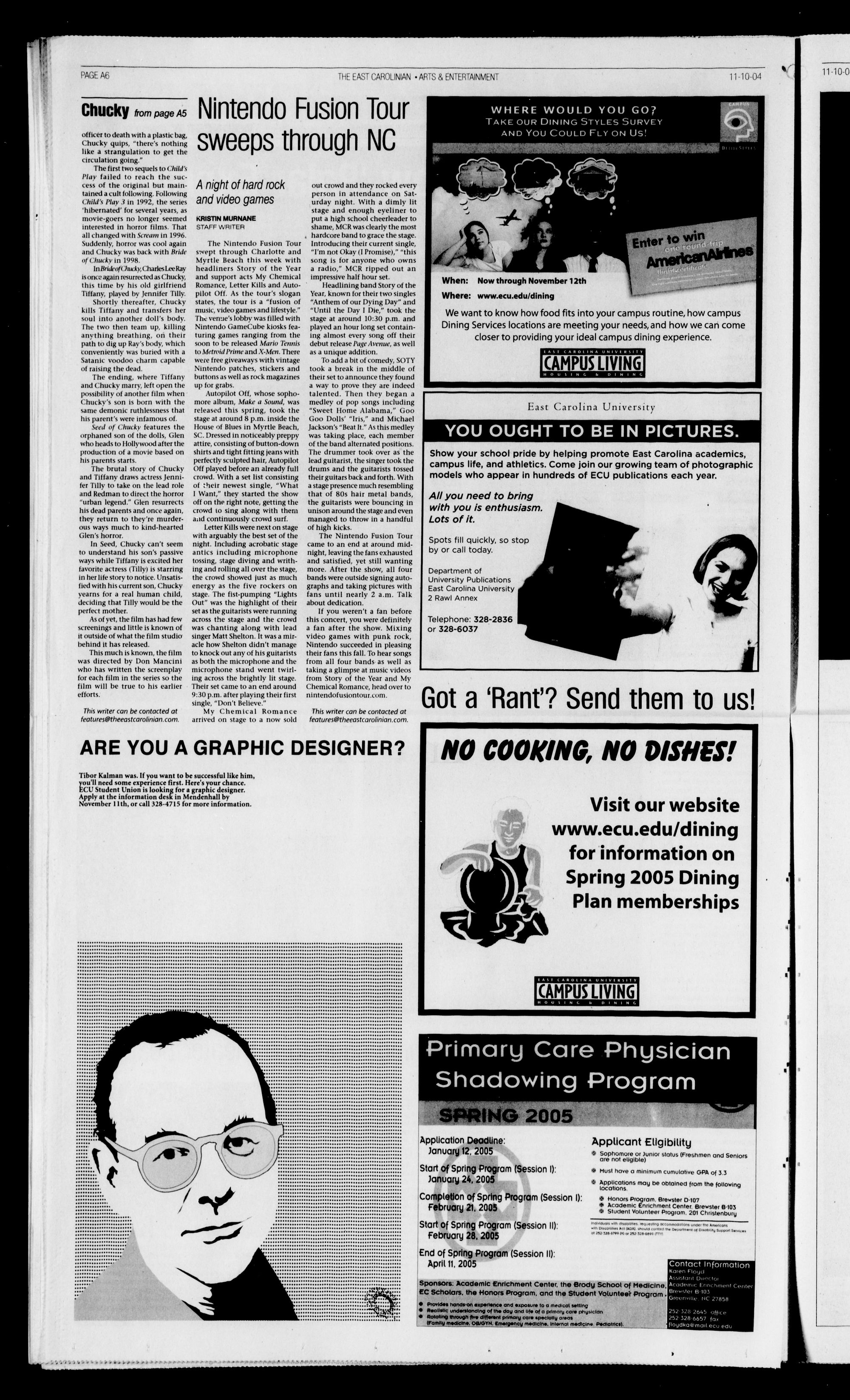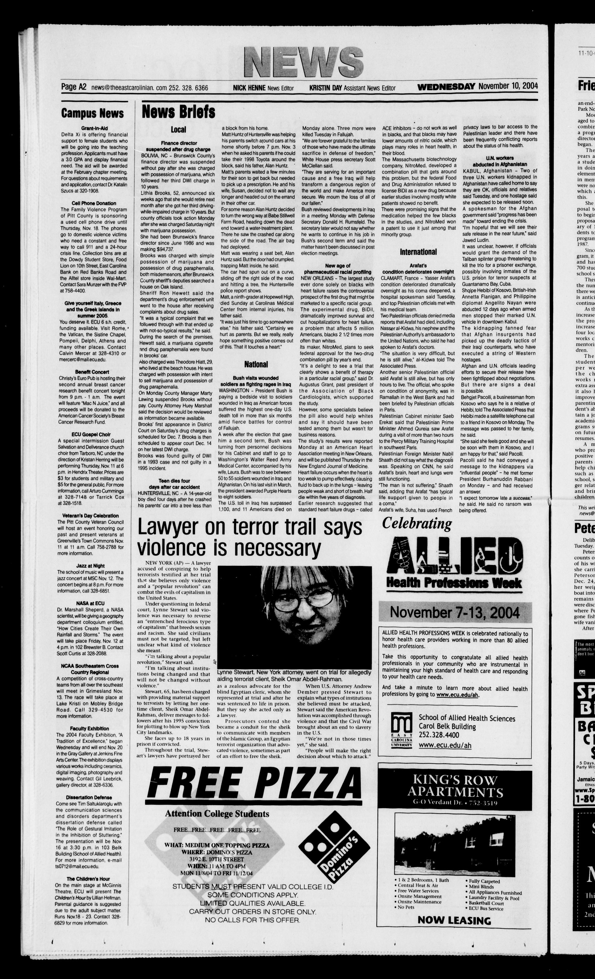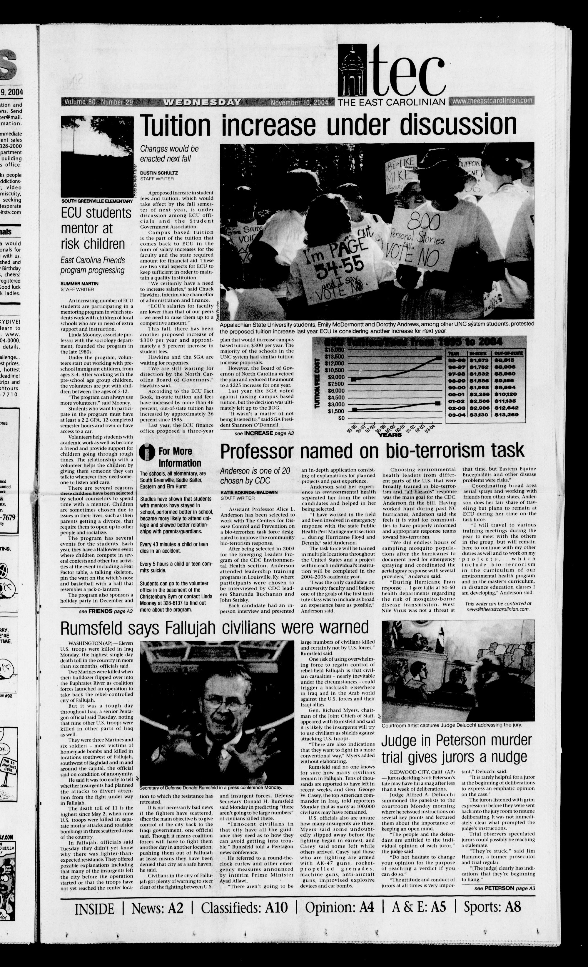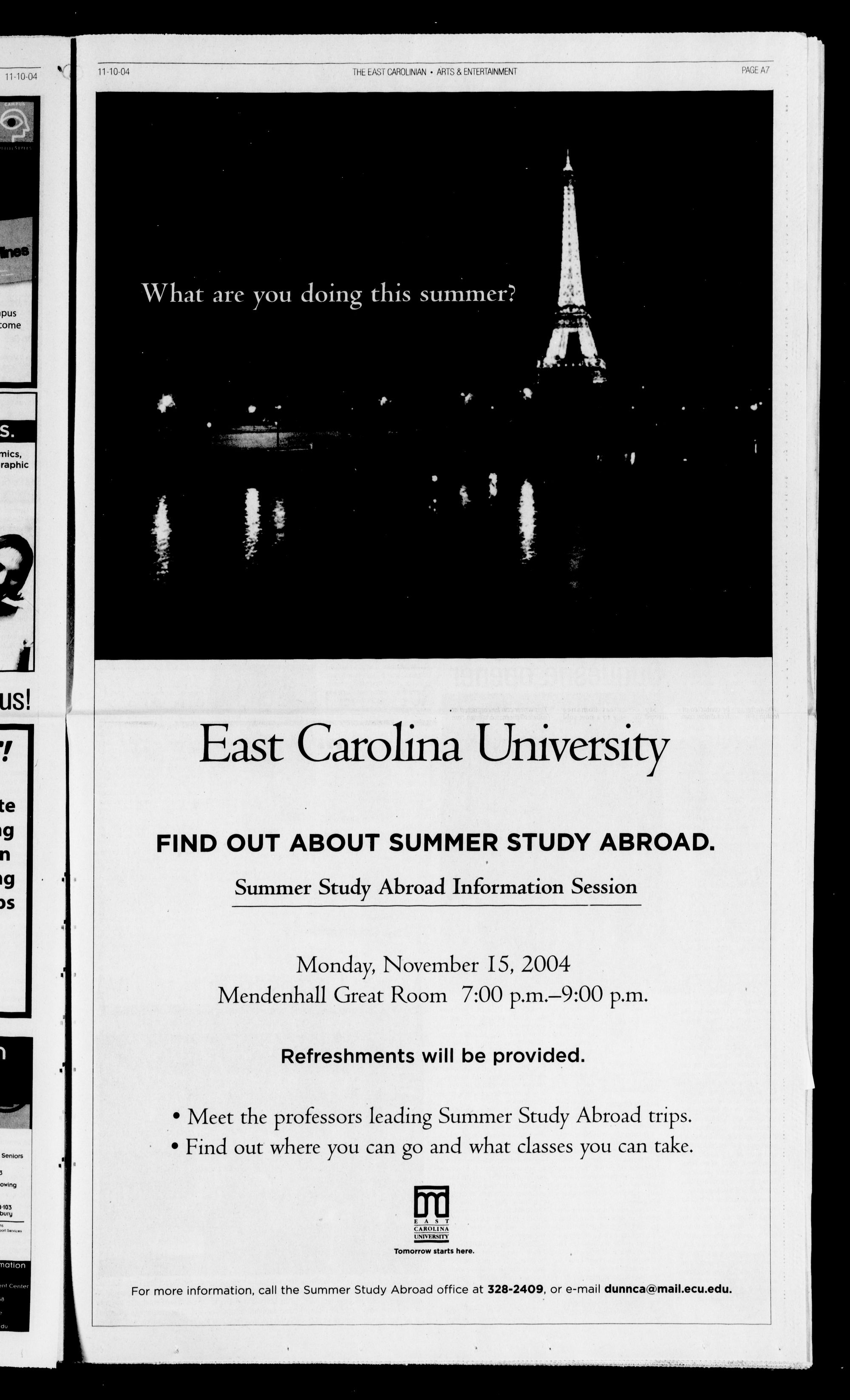 East Carolina's student-run campus newspaper was first published in 1923 as the East Carolina Teachers College News (1923-1925). It has been re-named as The Teco Echo (1925, 1926-1952), East Carolinian (1952-1969), Fountainhead (1969-1979), and The East Carolinian (1969, 1979-present). It includes local, state, national, and international stories with a focus on campus events.