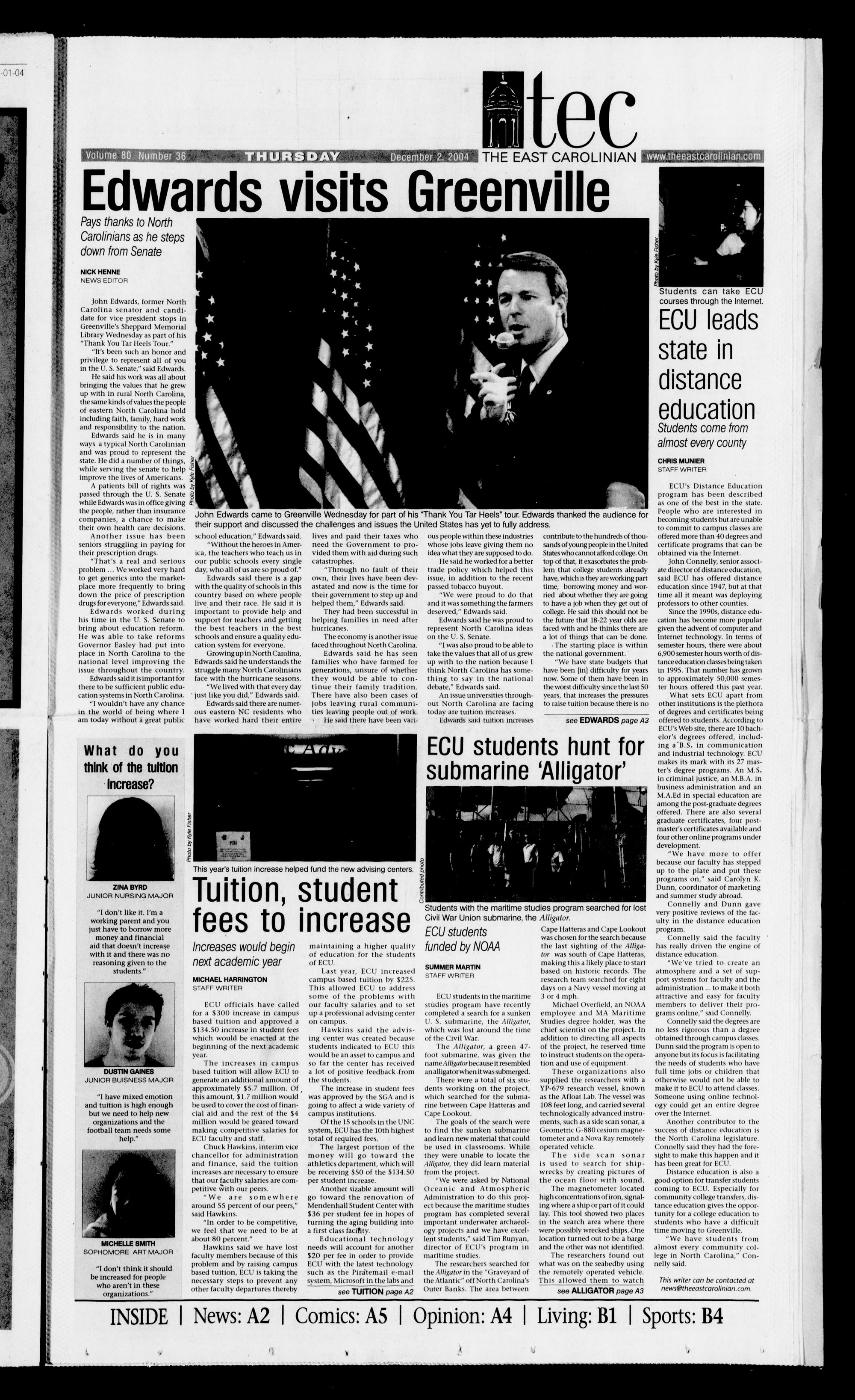 John Edwards came to Greenville Wednesday for part of his "Thank You Tar Heels" tour. Edwards thanked the audience for