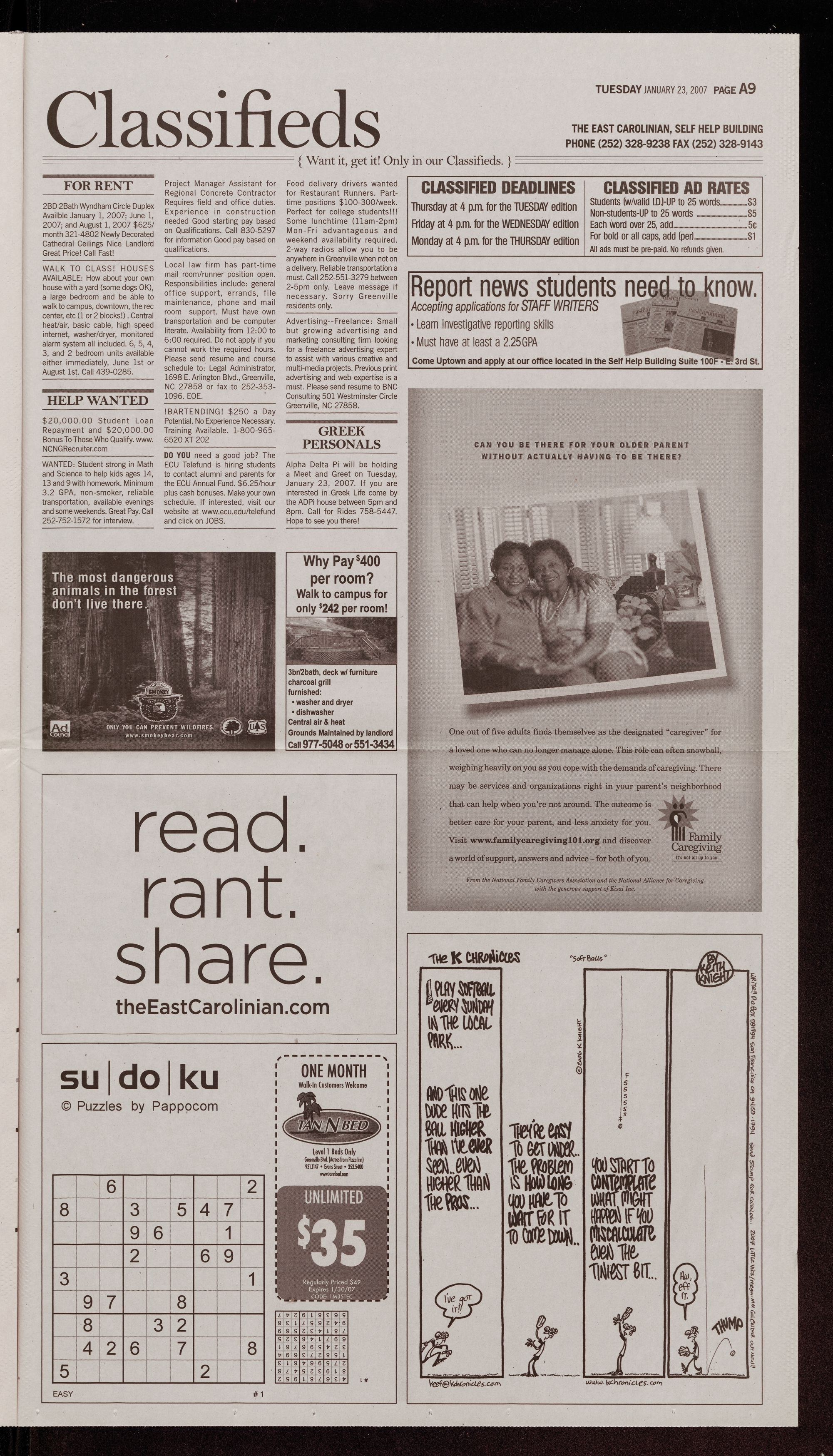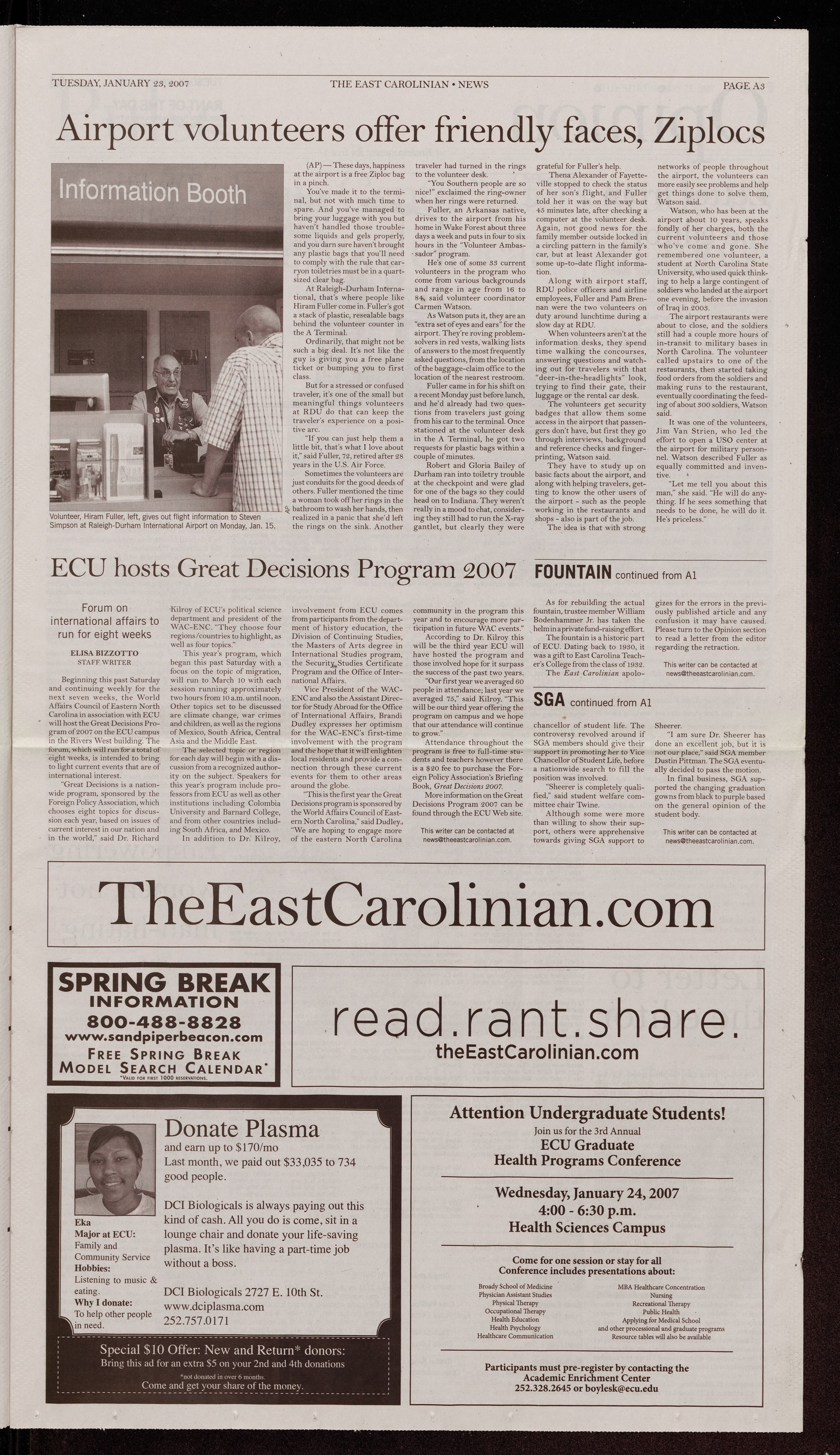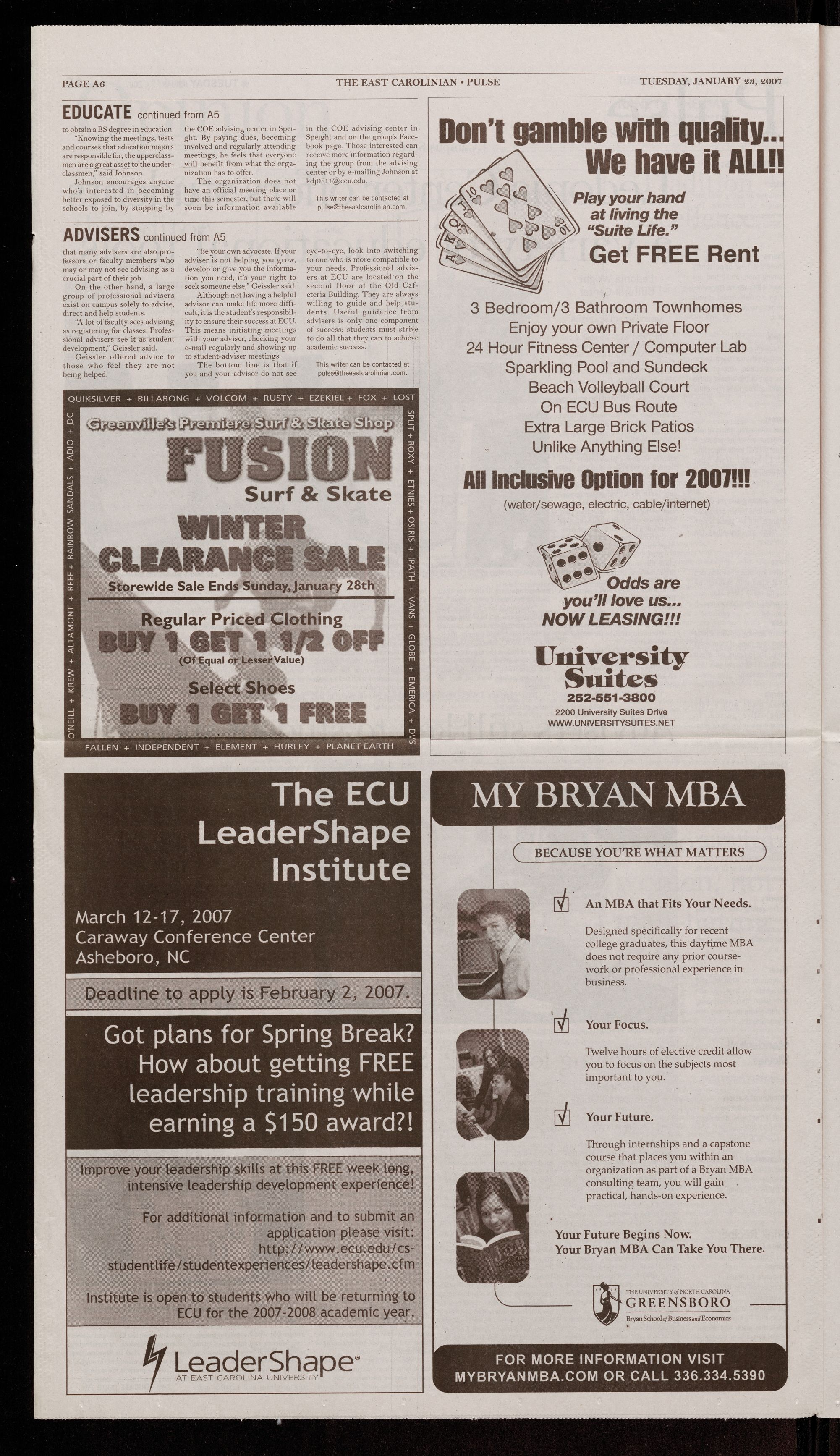 The East Carolinian VOLUME 82, ISSUE 43 TUESDAY JANUARY 23, 2007