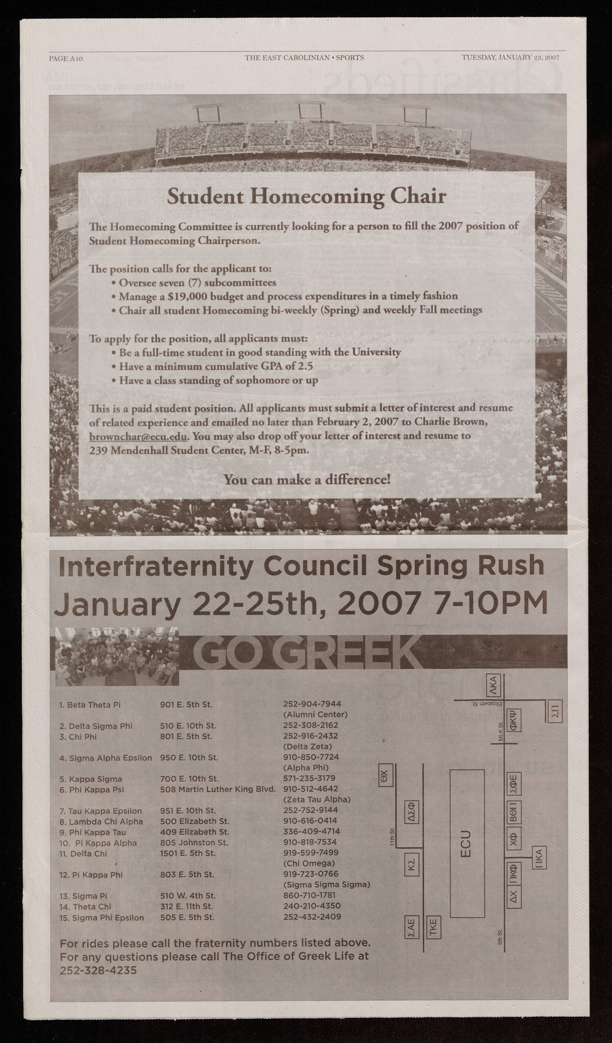 brownchar@ecu.edu. You may also drop off your letter of interest and resume to