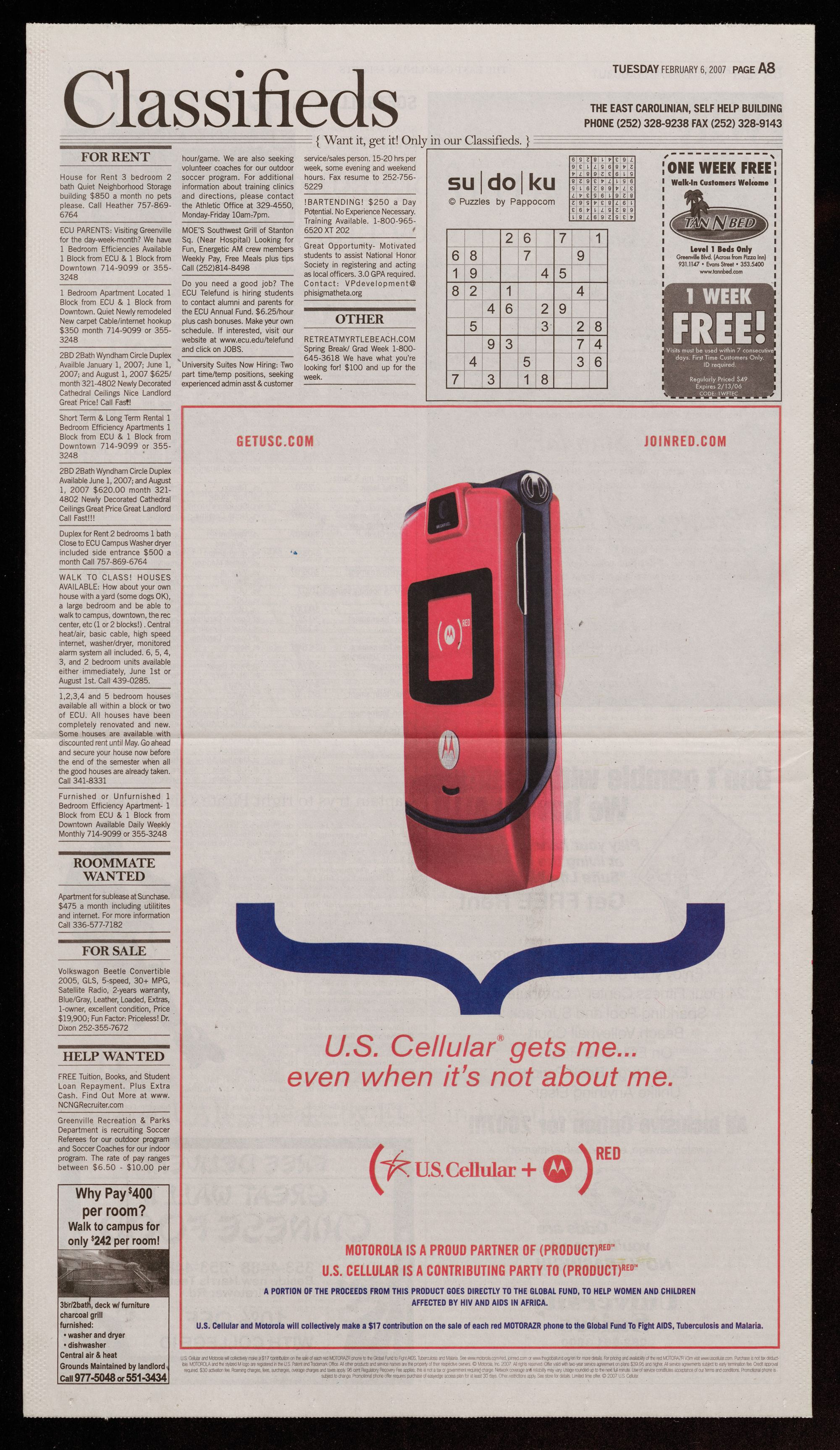 US, Cellular and Motorola will collectively make @'$17 contribution on the sale of each red MOTORAZR phone to the Global Fund to Fight AIDS, Tuberculosis and Malaria. See www. motorola.com www.theglobalfund.org/en for more details. For pricing and availabilty of the red MOTORAZR V3m visit www.uscellular.com. Purchase is not tax deduct-