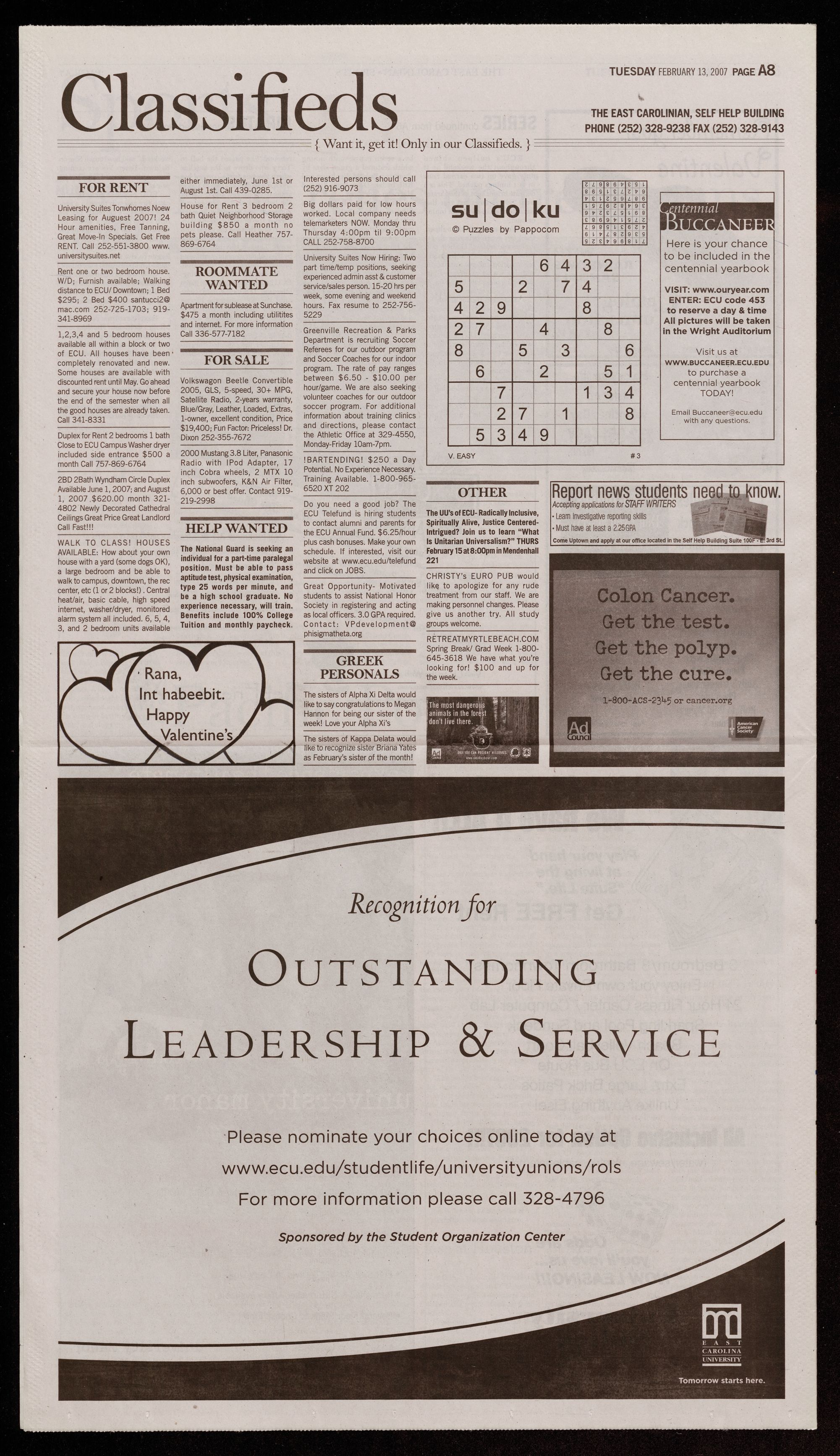 The East Carolinian VOLUME 82, ISSUE 52 February 13, 2007