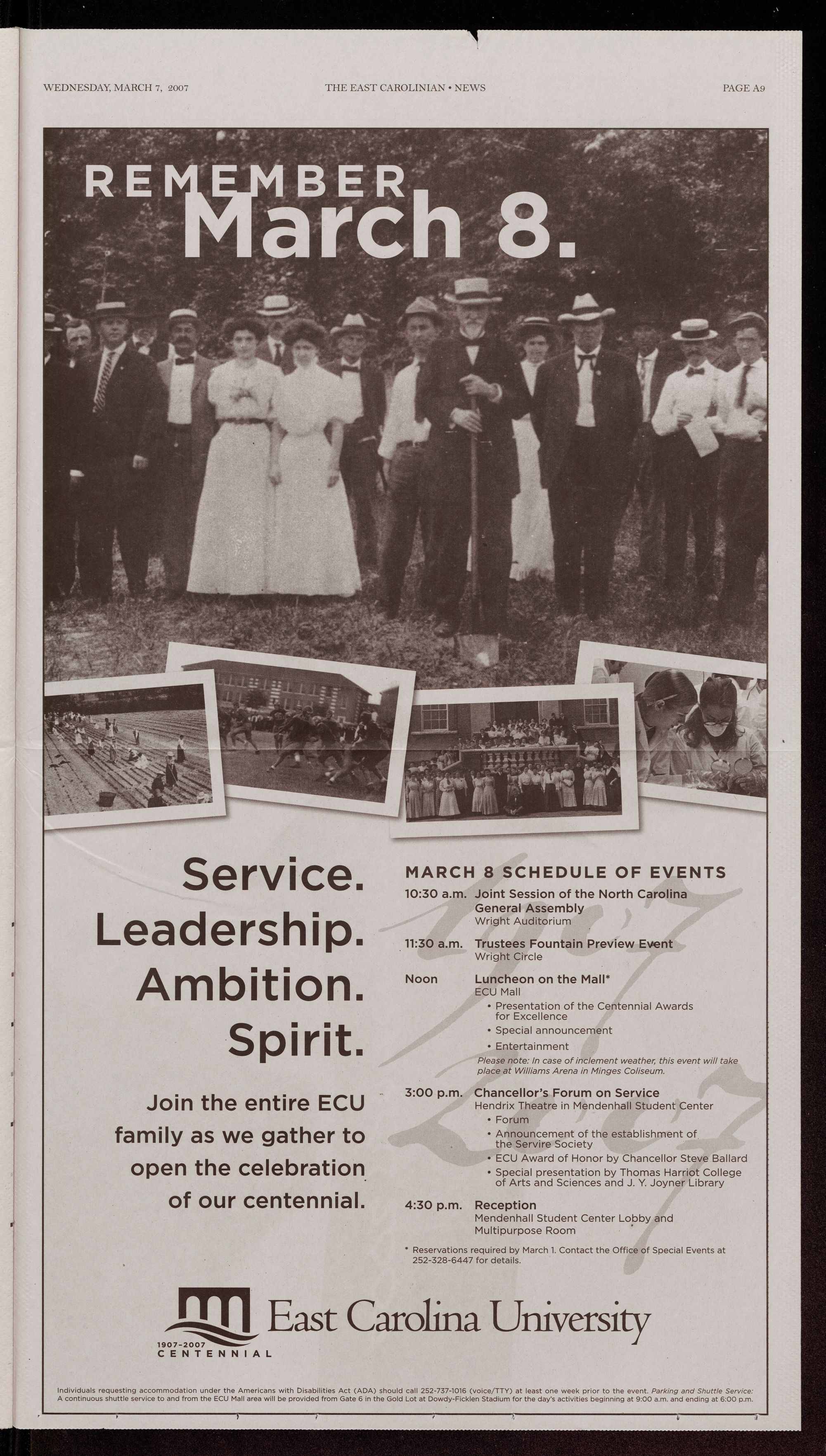 Individuals requesting accommodation under the Americans with Disabilities Act (ADA) should call 252-737-1016 (voice/TTY) at least one week prior to the event. Parking and Shuttle Service: