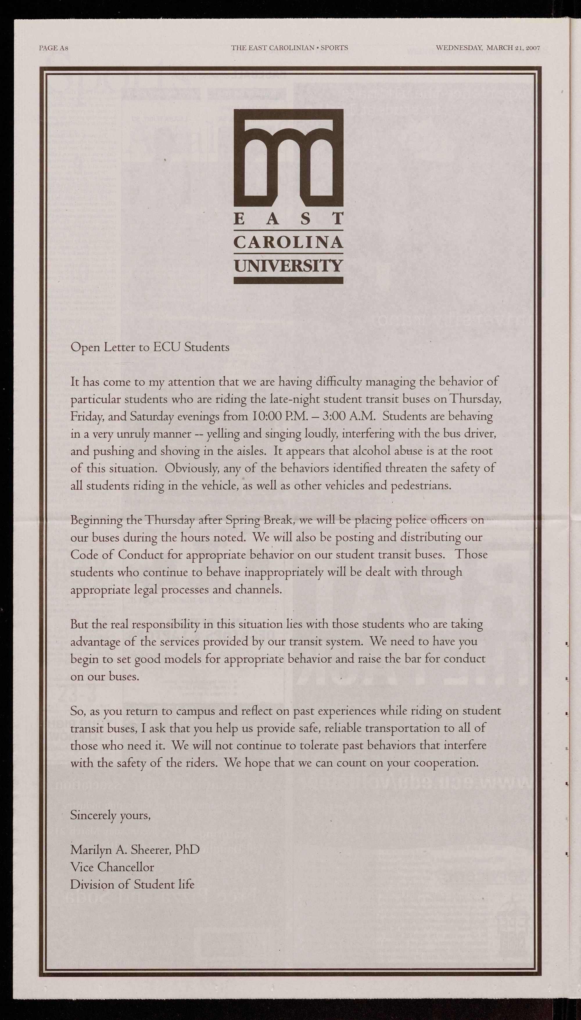 The East Carolinian VOLUME 82, ISSUE 64 March 21, 2007