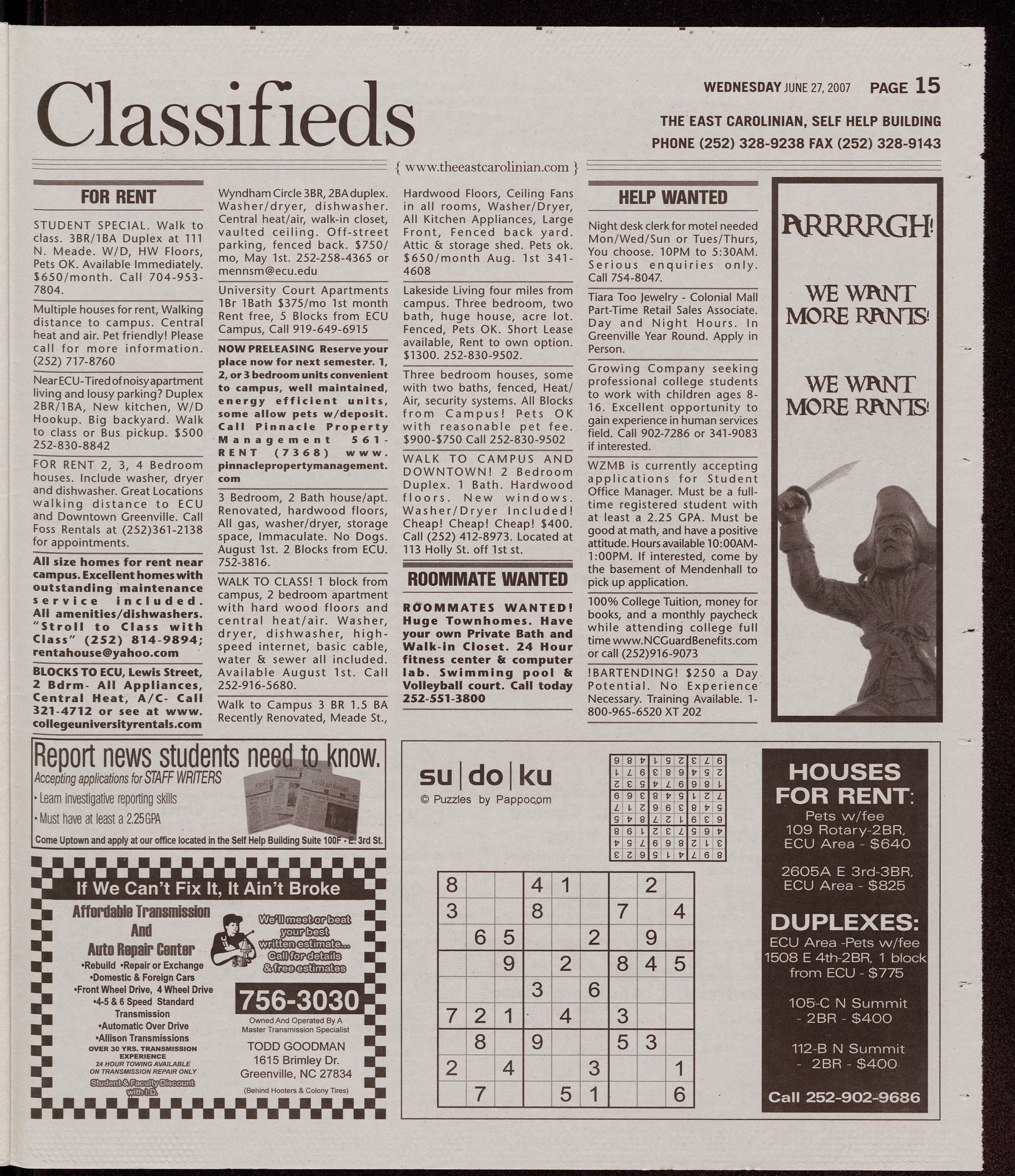The East Carolinian Volume 82, Issue 82 June 27, 2007