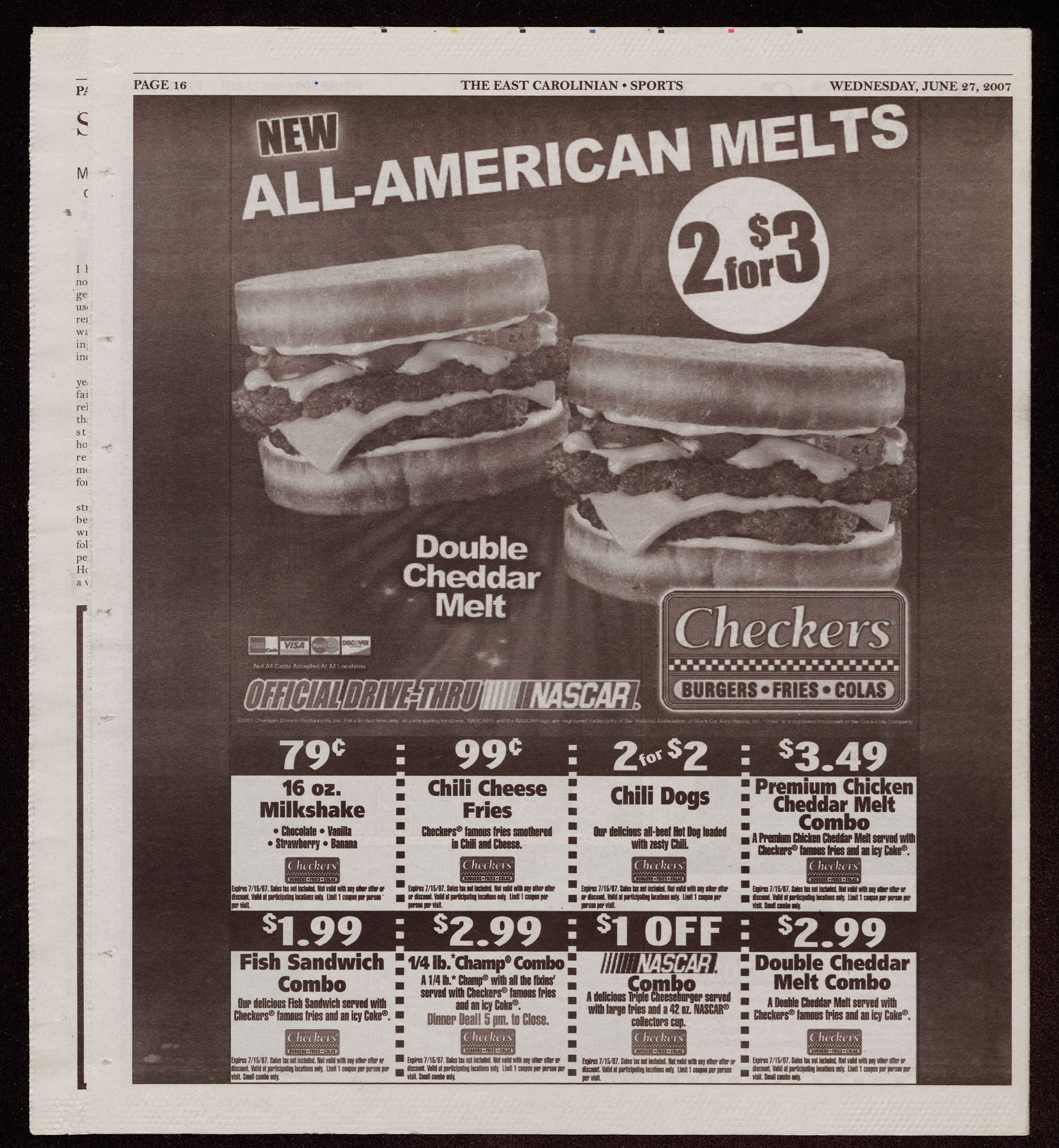 Checkers® famous fries and an shri Dinner Deal! 5 pm, to Clase, : collectors cup co ee: