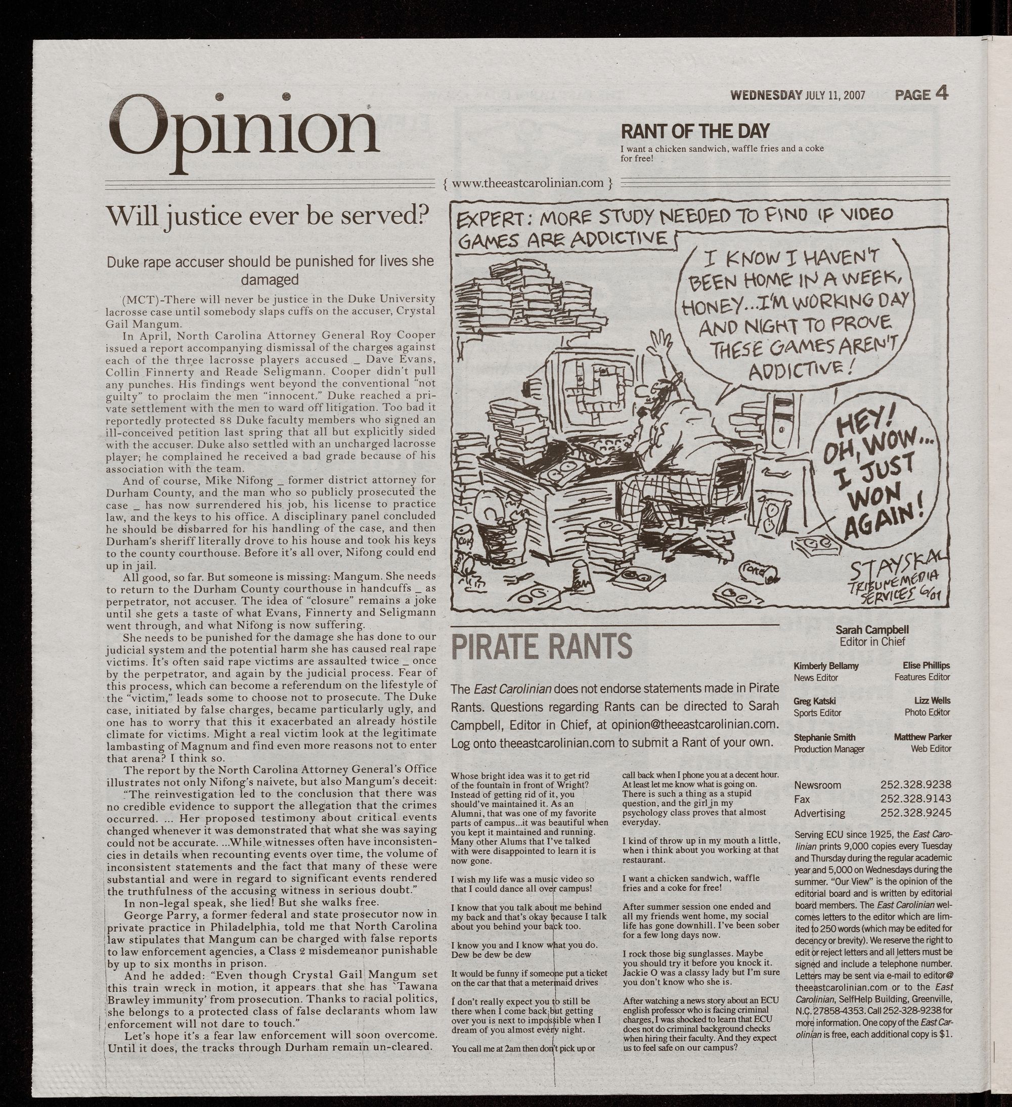 The East Carolinian Volume 82, Issue 83 July 11, 2007