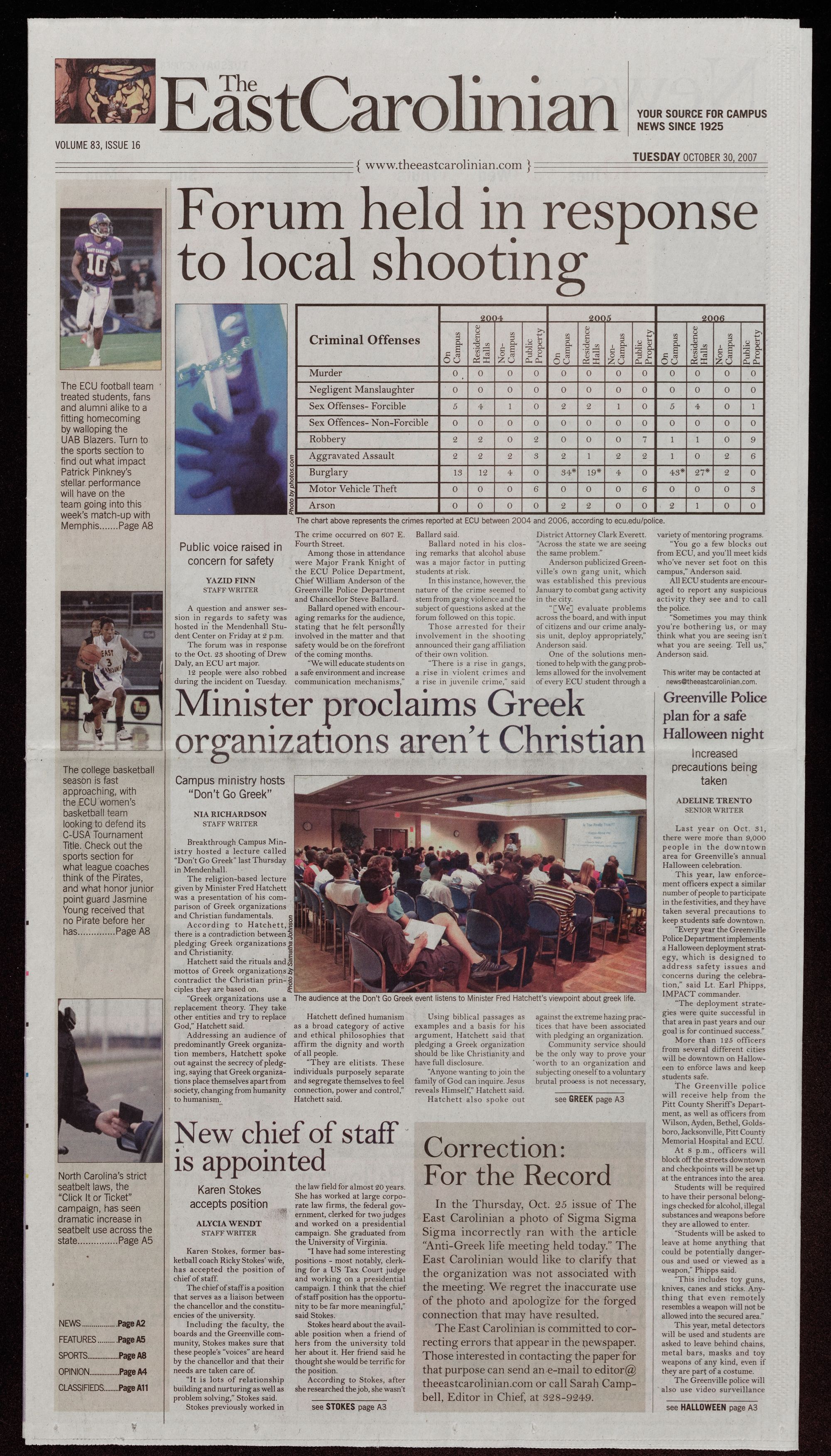 The East Carolinian VOLUME 83, ISSUE 16 October 30, 2007