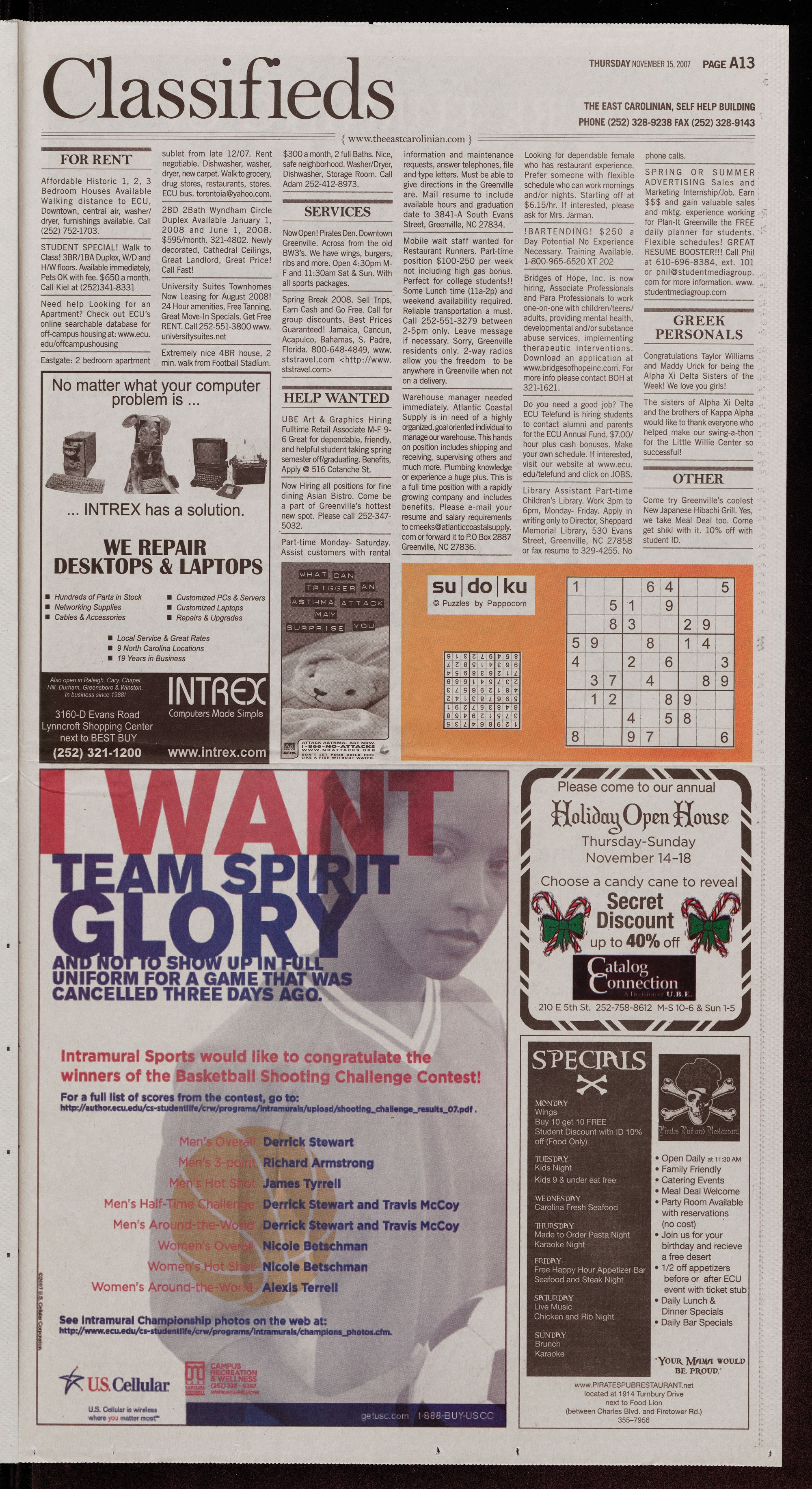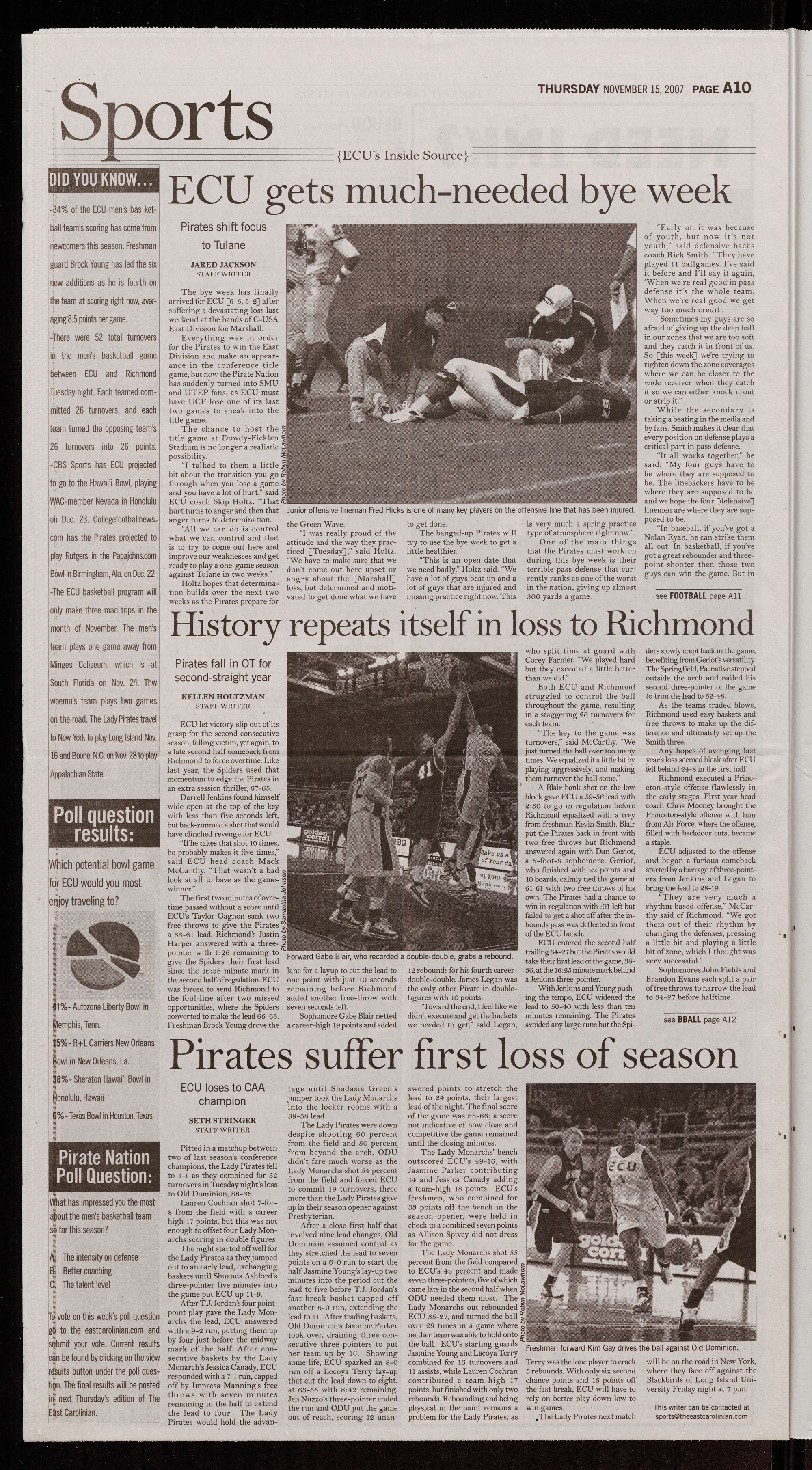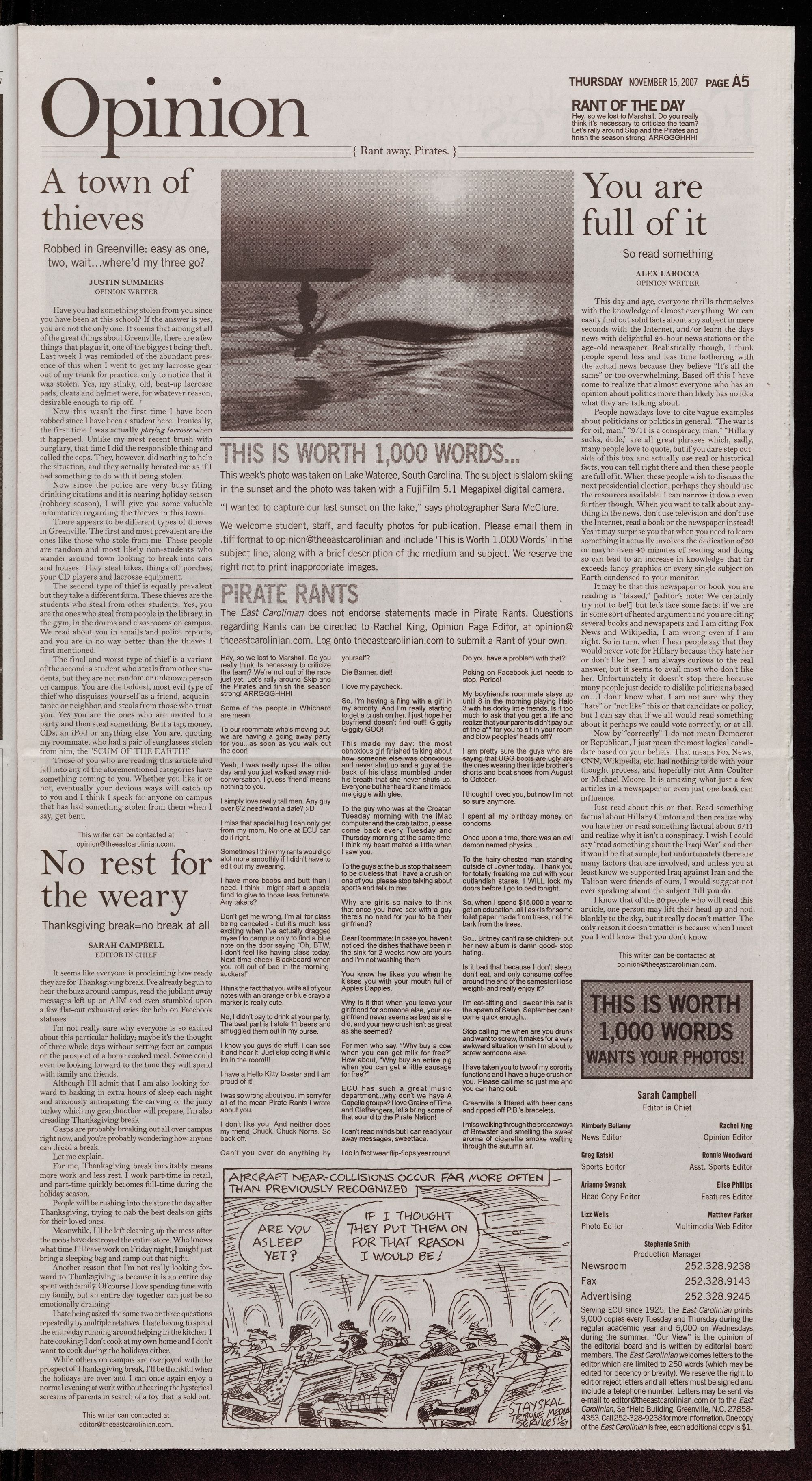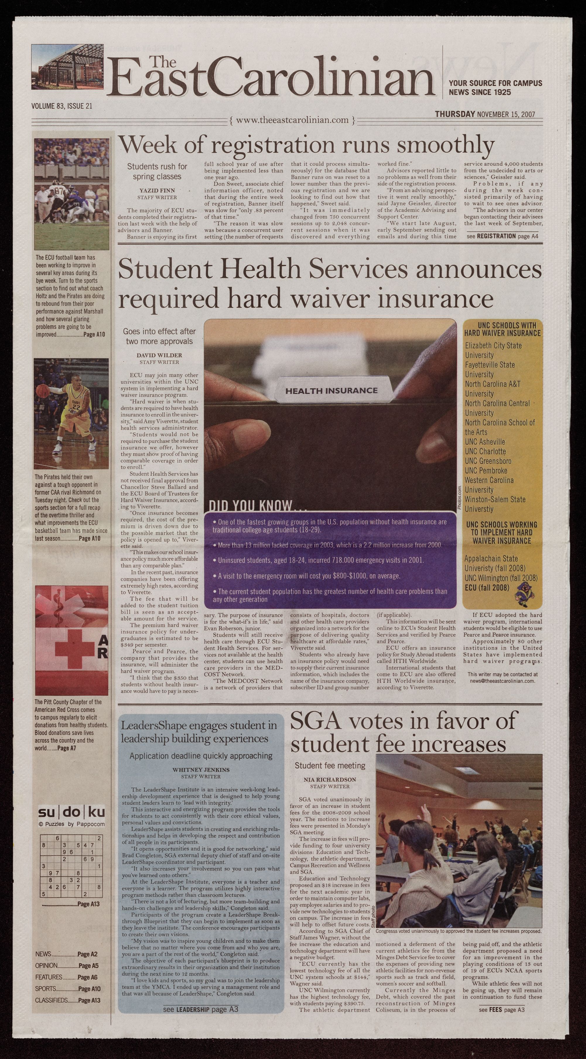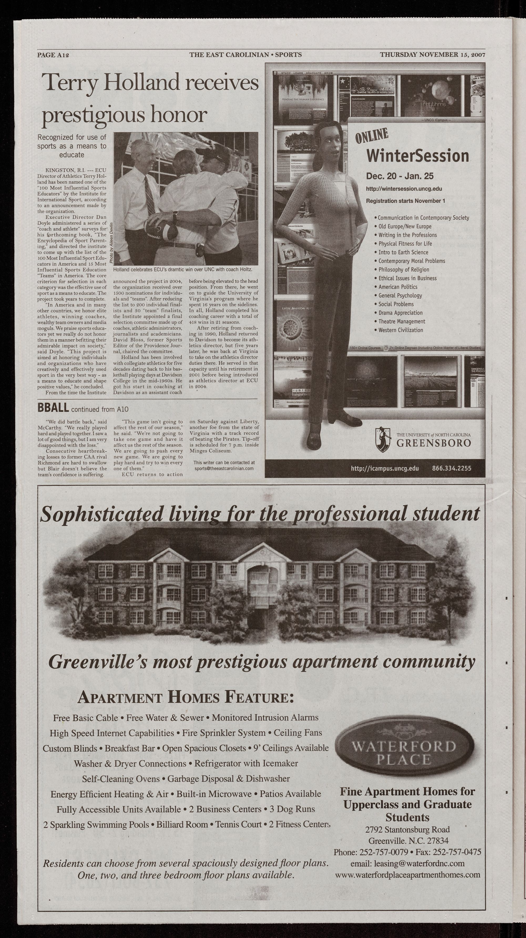 The East Carolinian Volume 83, Issue 21 November 15, 2007
