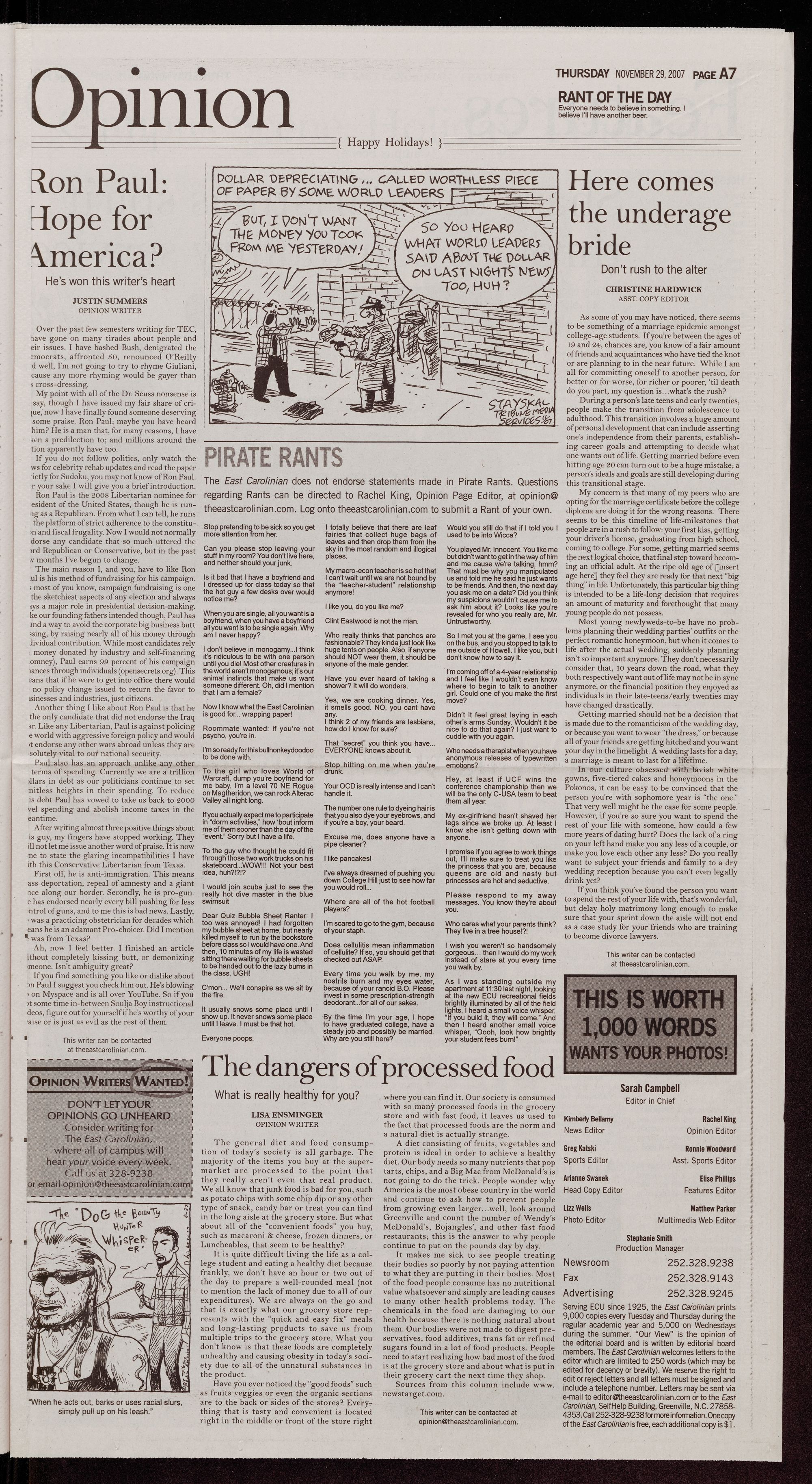 The East Carolinian Volume 82, Issue 69 November 29, 2007