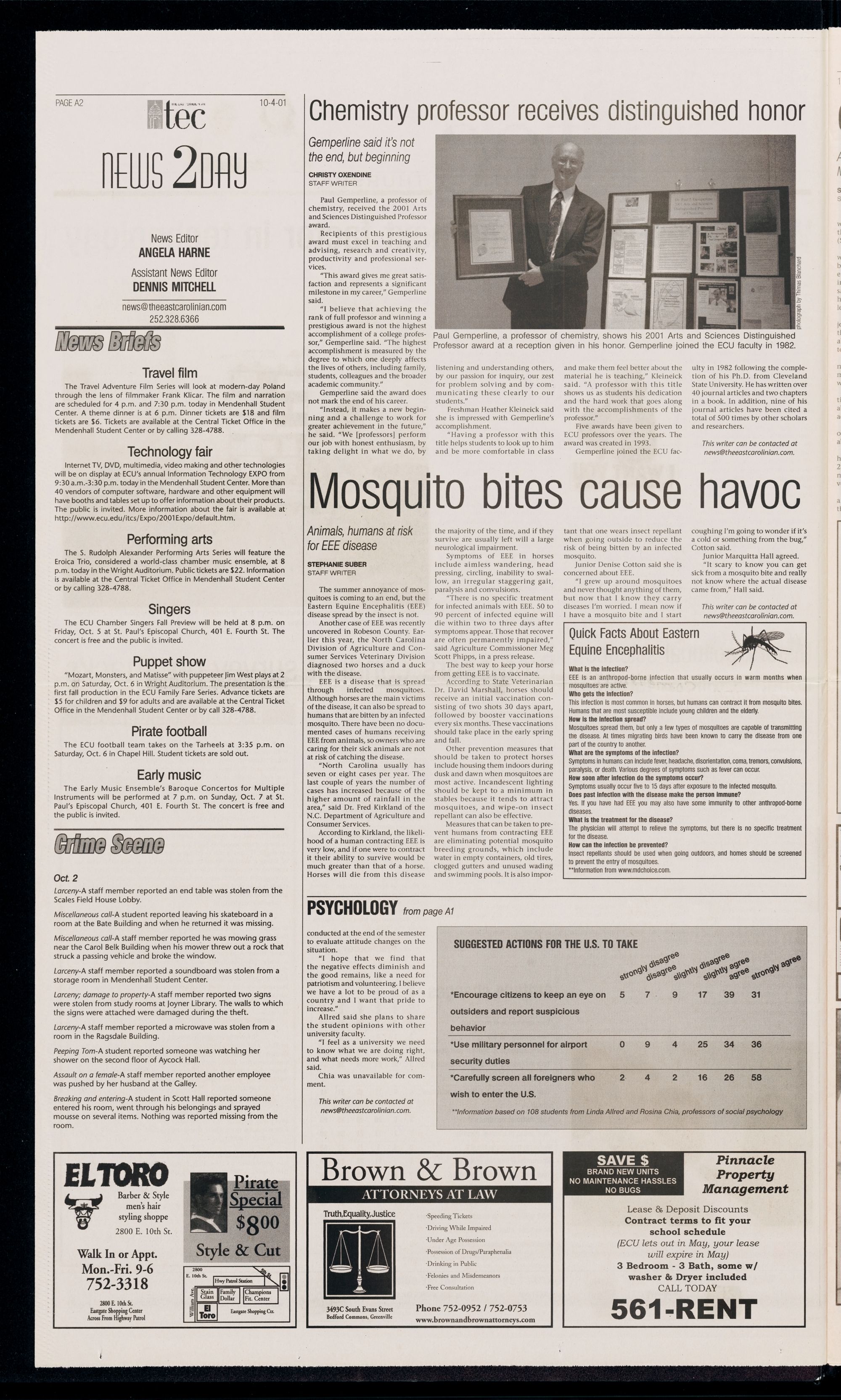 of the ECU faculty, the Greenville rorism and use of military personnel Once I found out my whole family was okay, | began to feel the