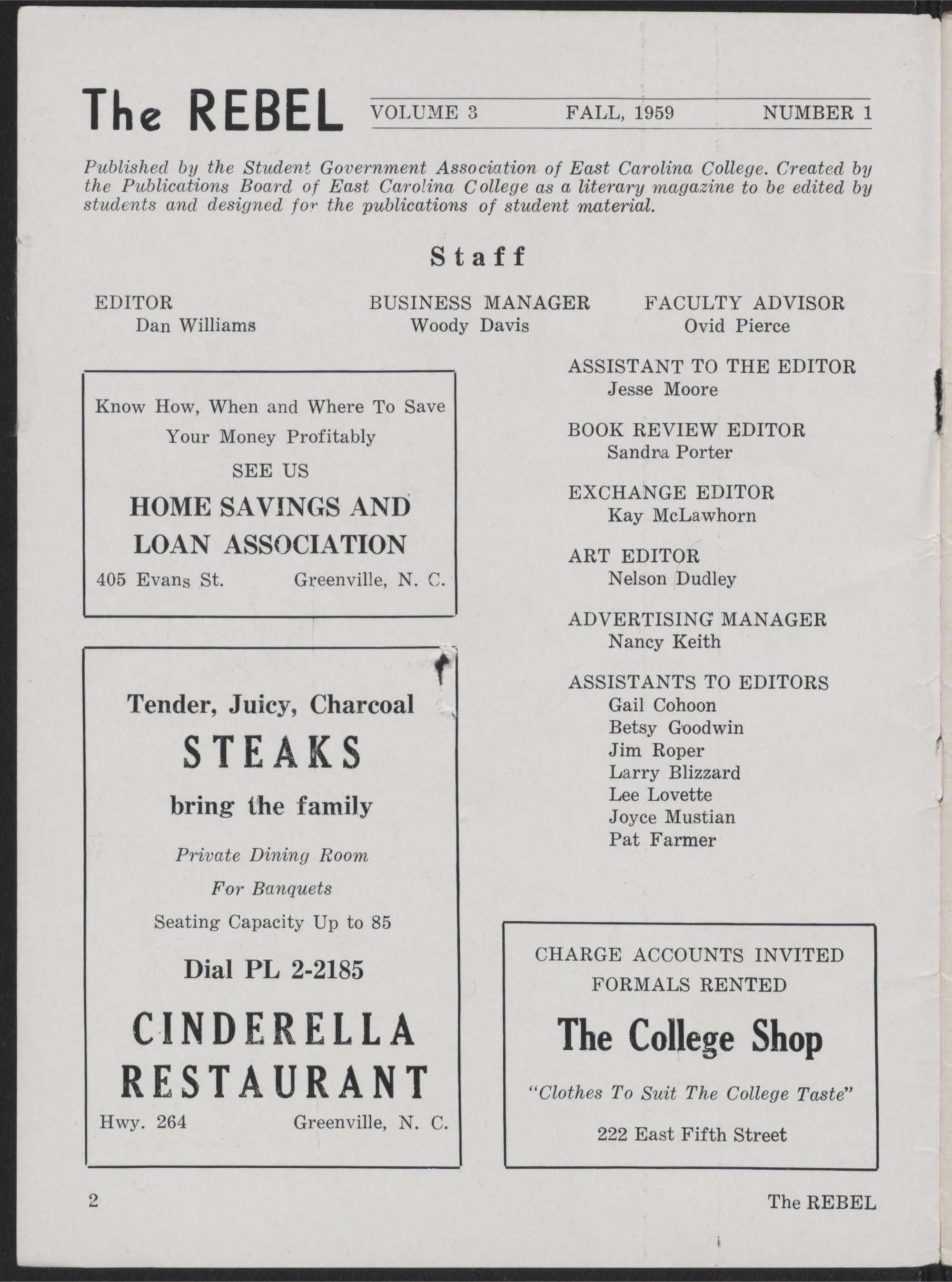 Published by the Student Government Association of East Carolina College. Created by
