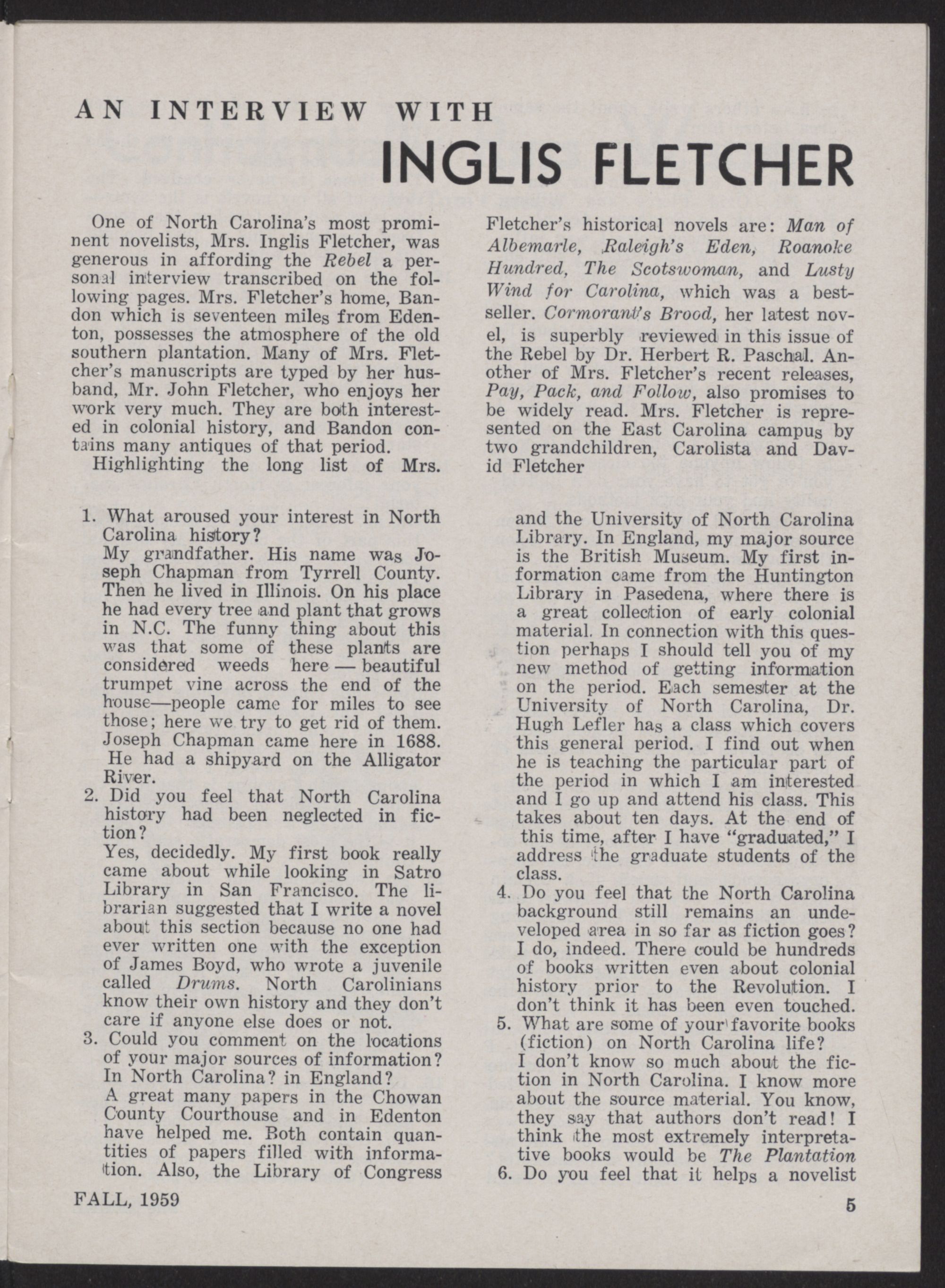 An Interview with Inglis Fletcher