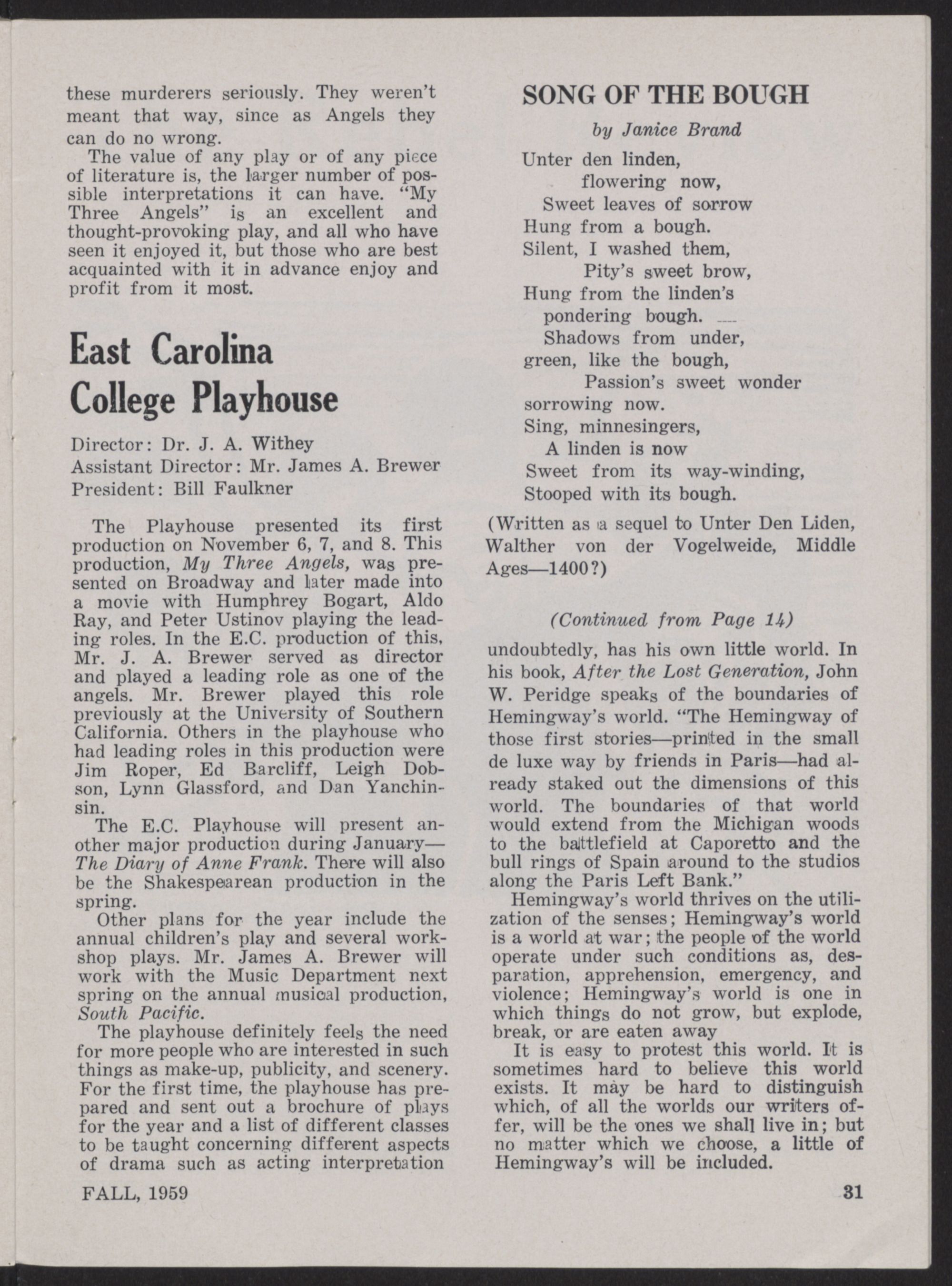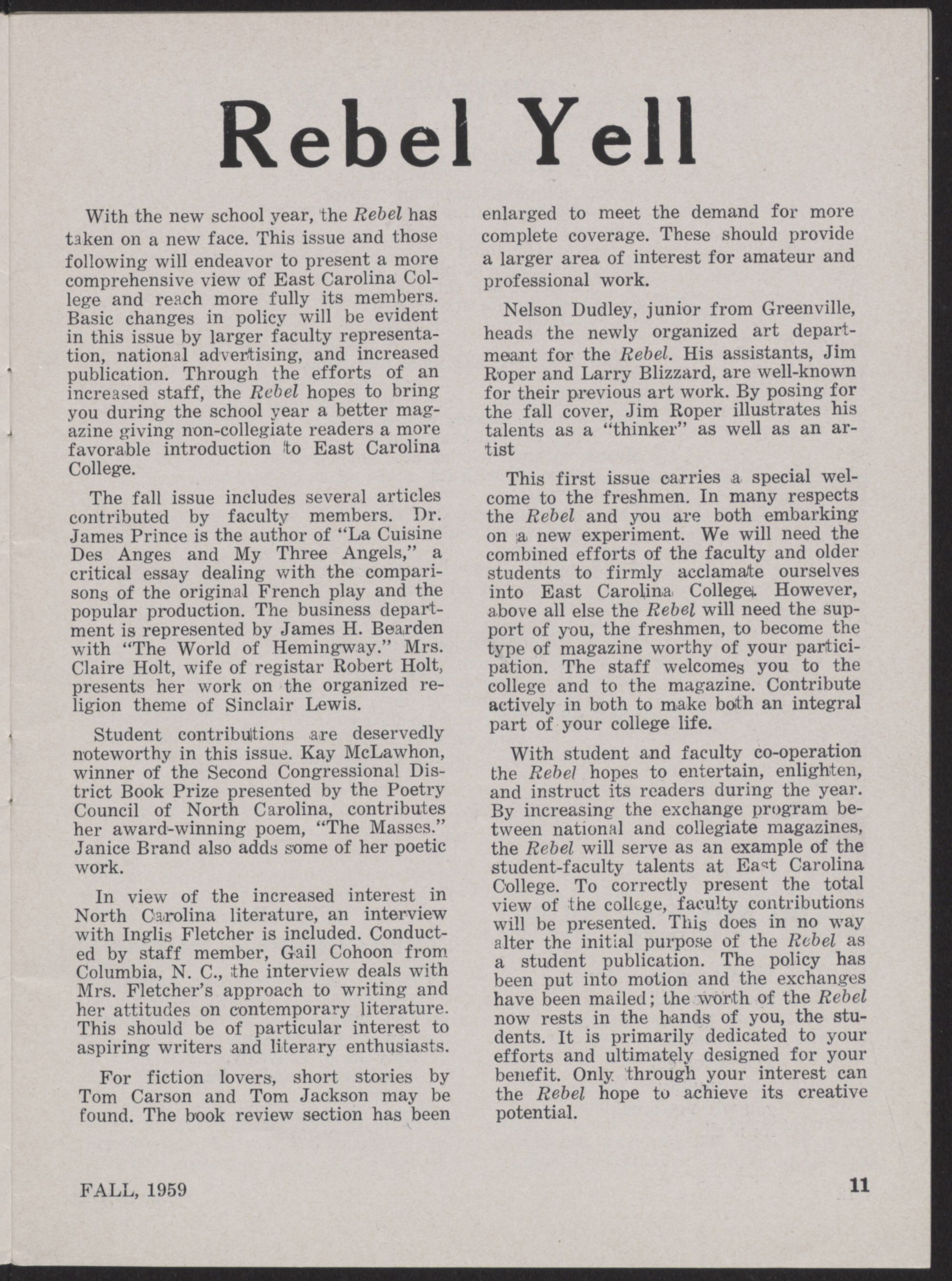 the Publications Board of East Carolina College as a literary magazine to be edited by