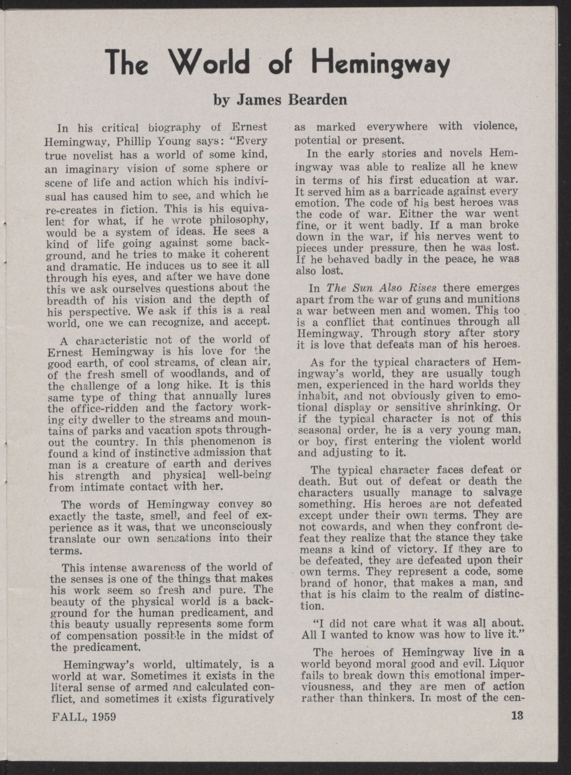 The World of Hemingway by James Bearden