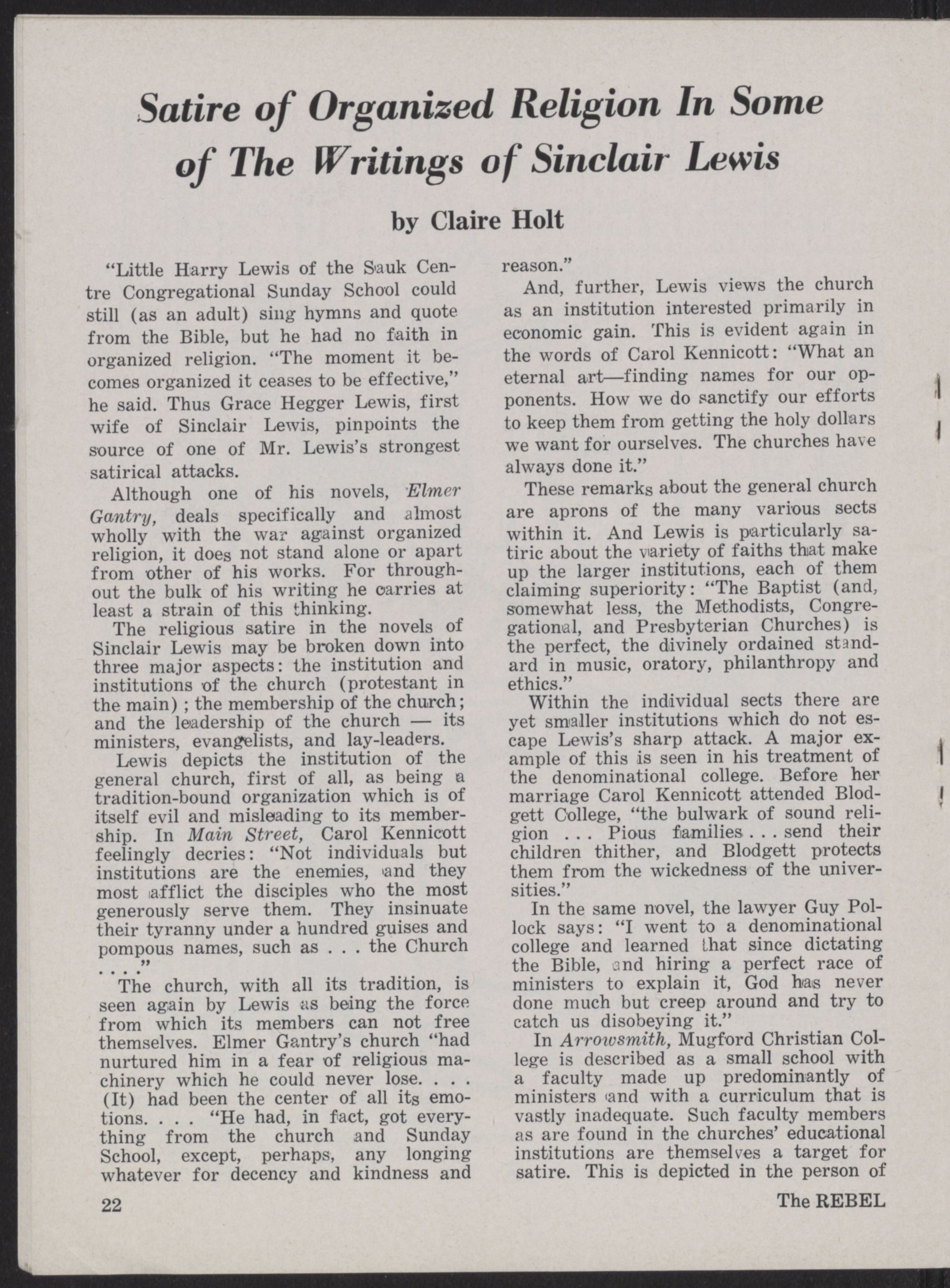 Satire of Organized Religion in some of the Writings i