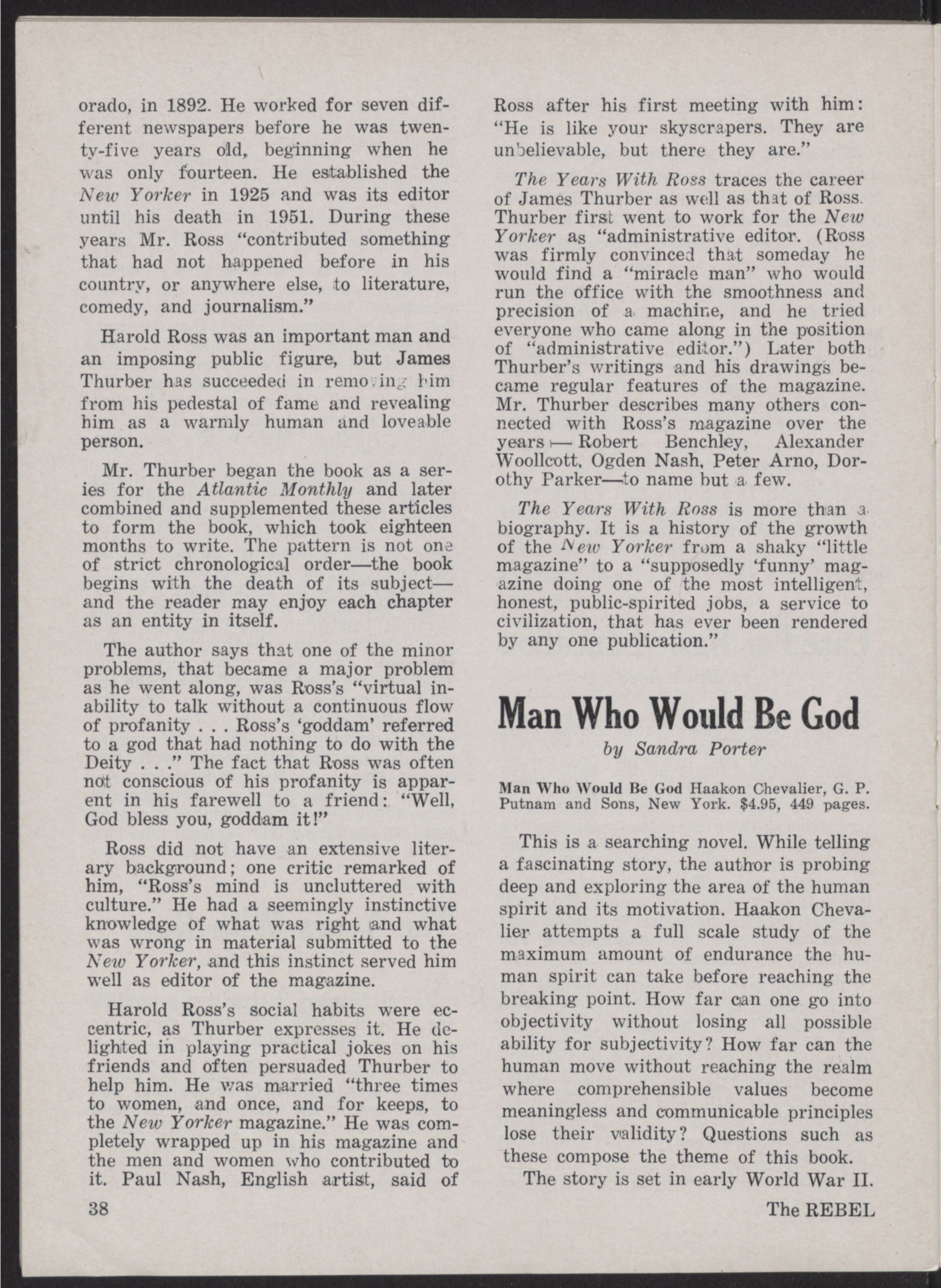 REBEL REVIEW edited by Sandra Porter