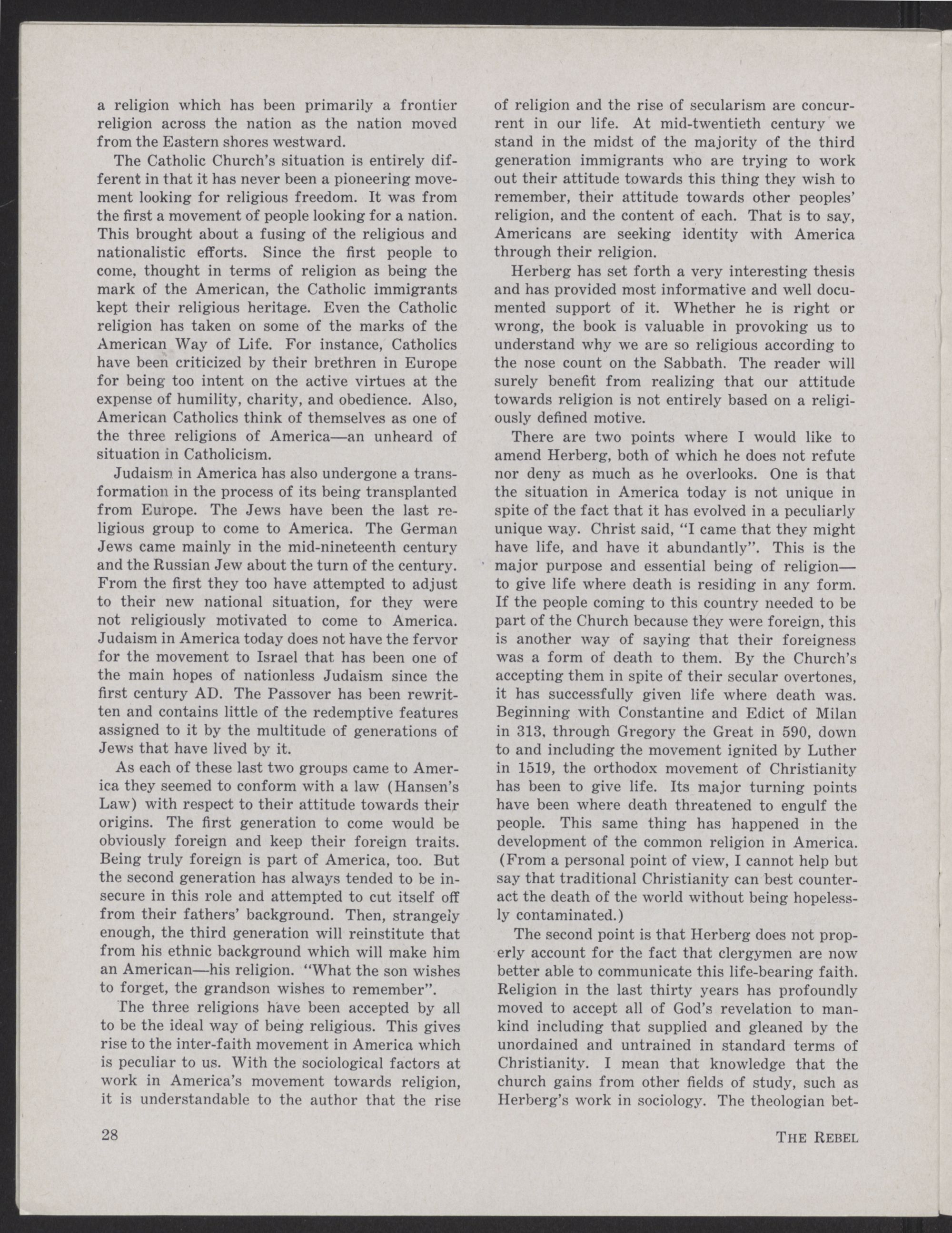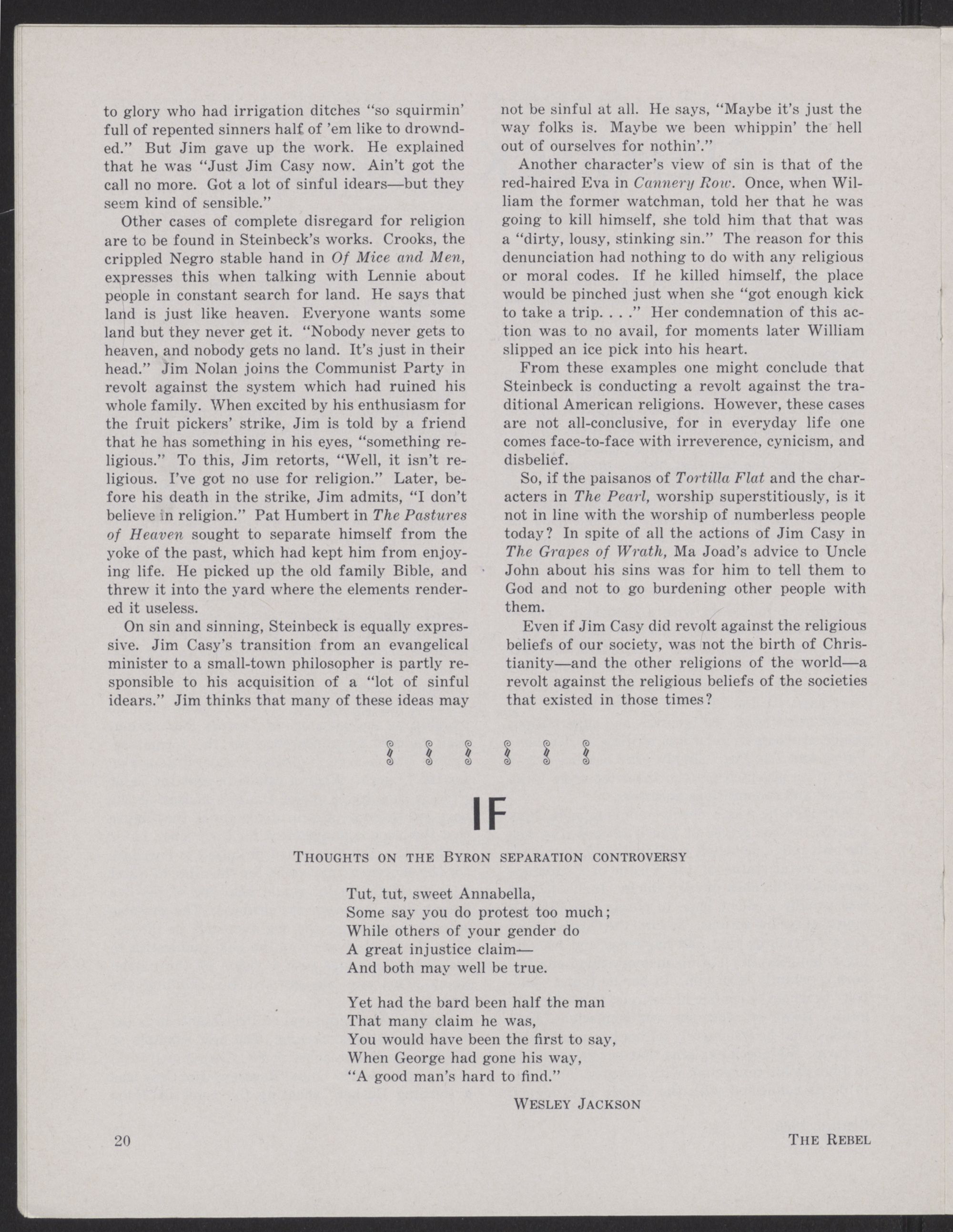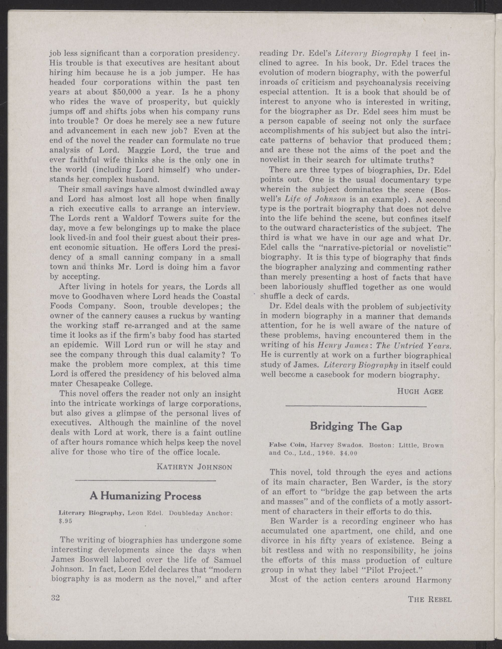 NOTICE"Contributions to THE REBEL should be directed to P.O. Box 1420, E. C. C. Editorial and business offices are located