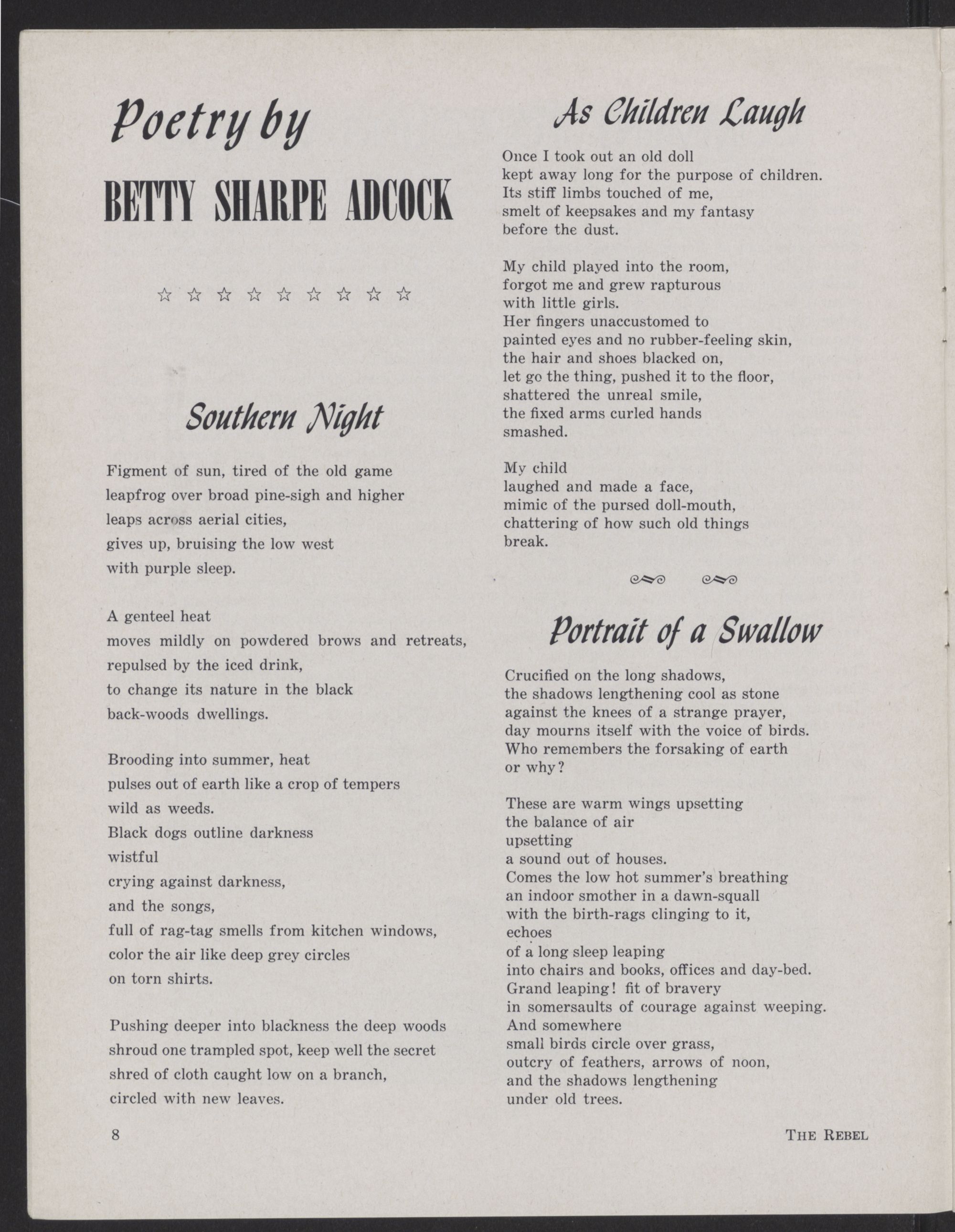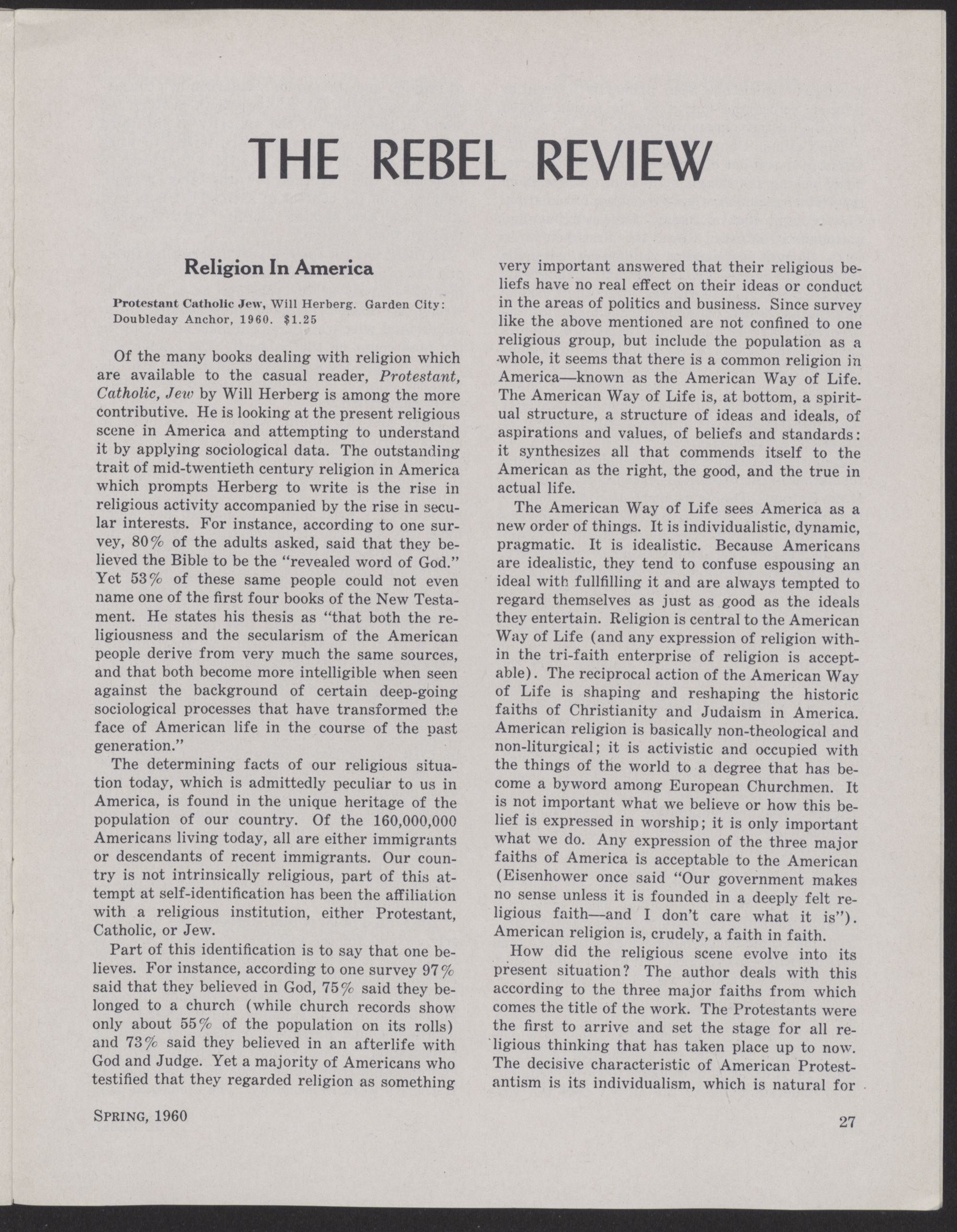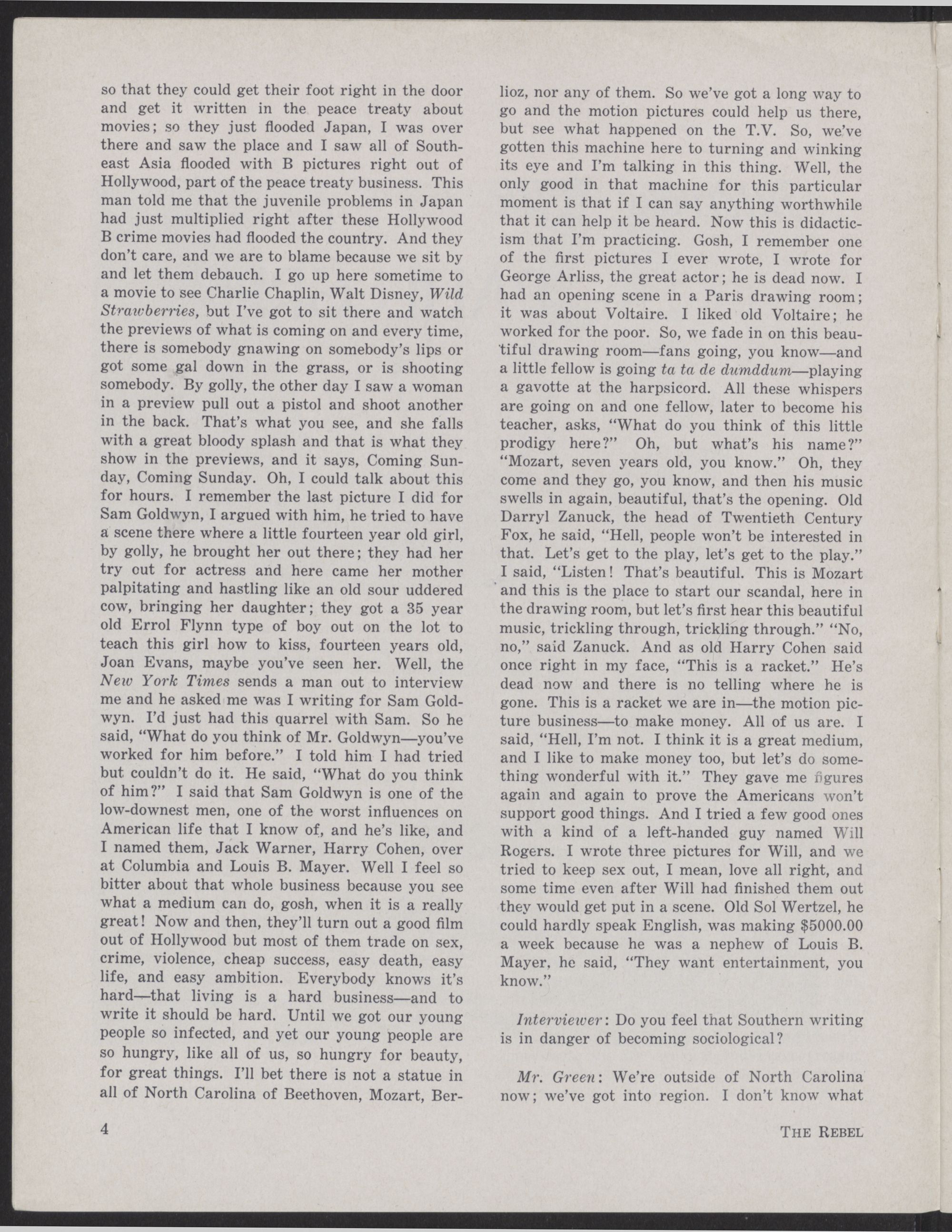 NOTICE"Contributions to THE REBEL should be directed to P.O. Box 1420, E. C. C. Editorial and business offices are located