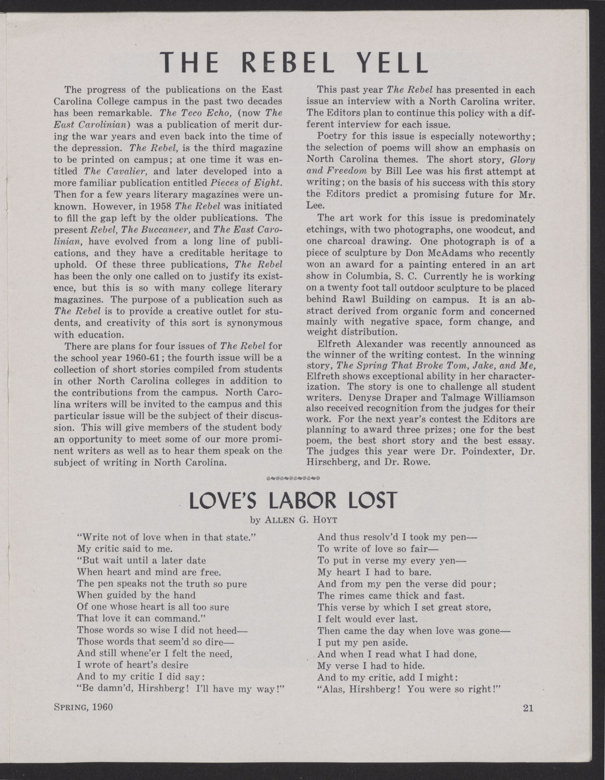 lications Board of East Carolina College as a literary magazine to be edited by students and de-