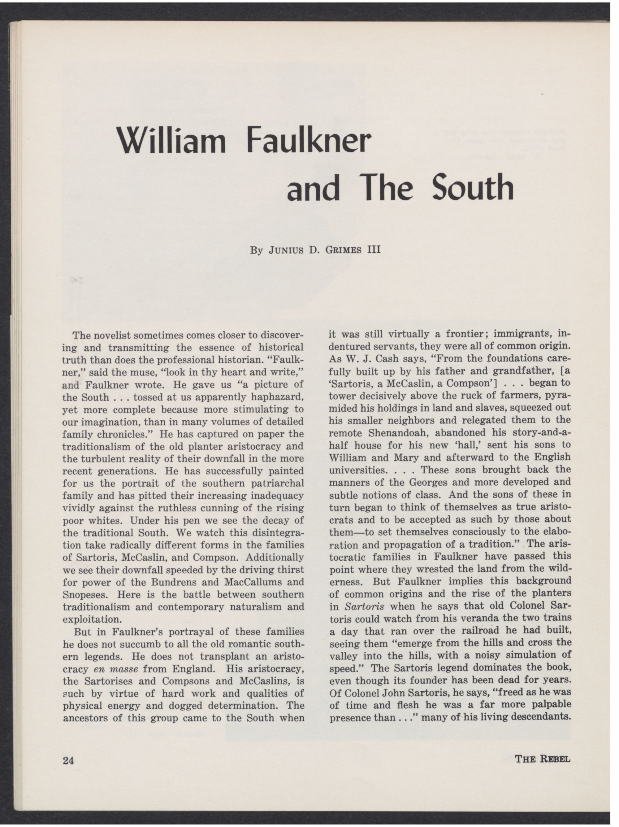 William Faulkner and the South by Junius D. Grisiee! I 24