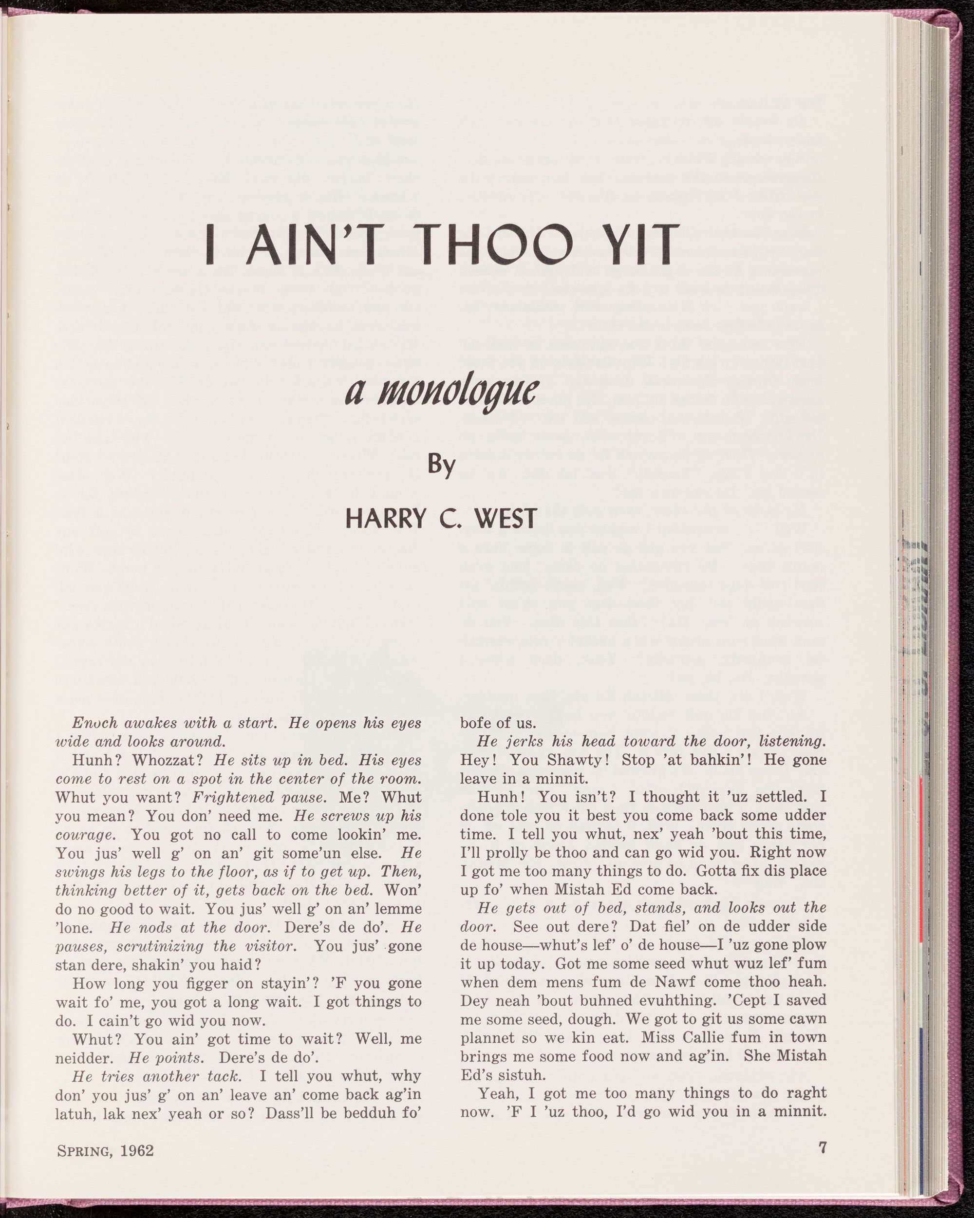 I AinTt Too Yit, a monologue, by Harry C. West i: