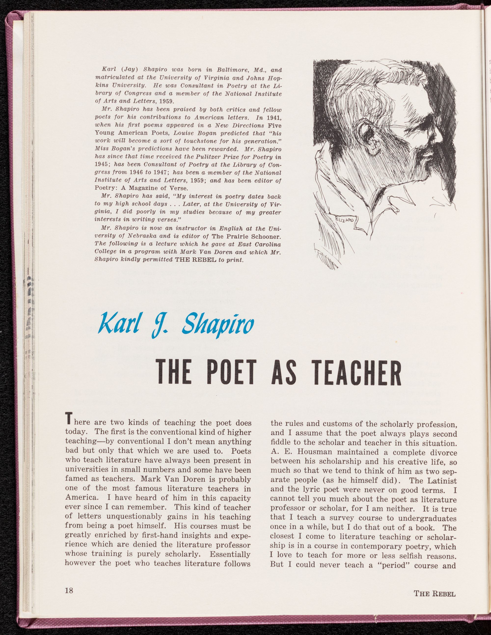 WO Ld The Poet As Teacher by Karl Shapiro. 18