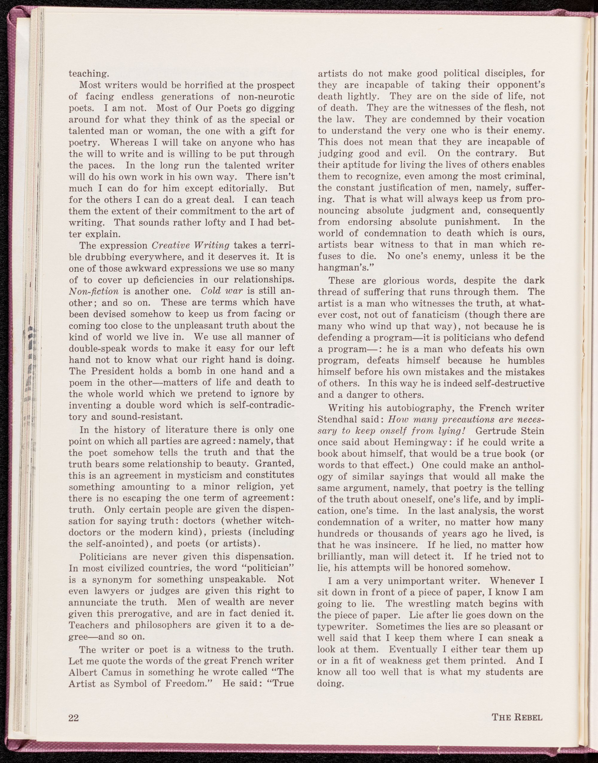 College as a literary magazine to be
