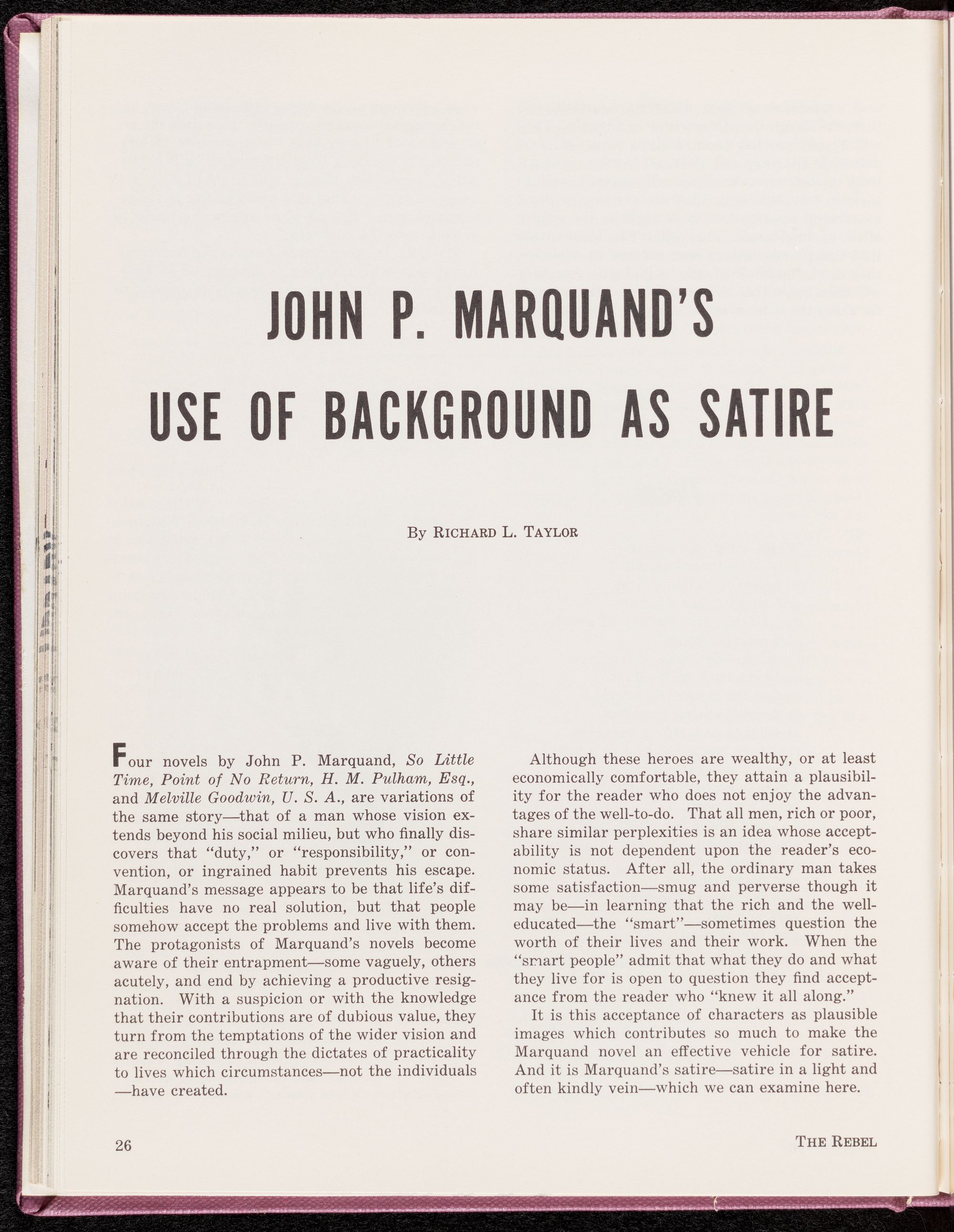 John P. MarquandTs Use of Background as Satire