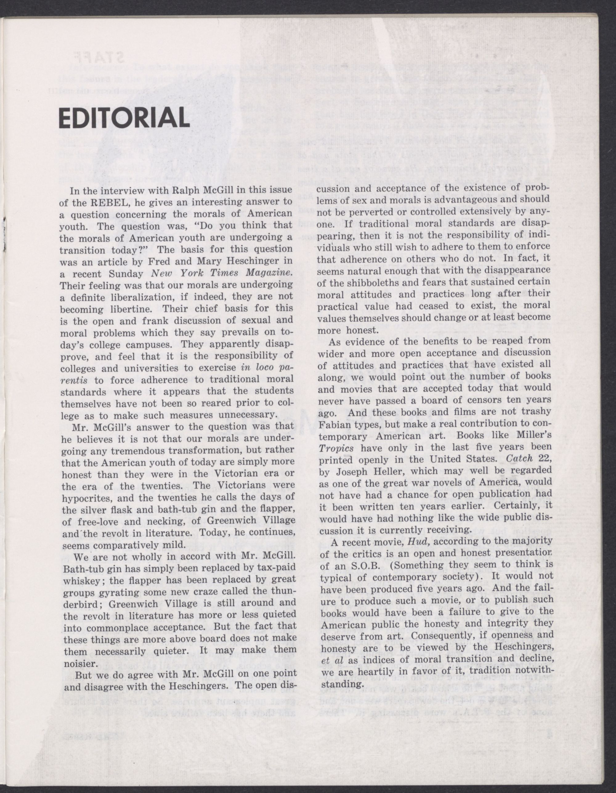 NOTICE"Contributions to THE REBEL should be directed to P. O. Box