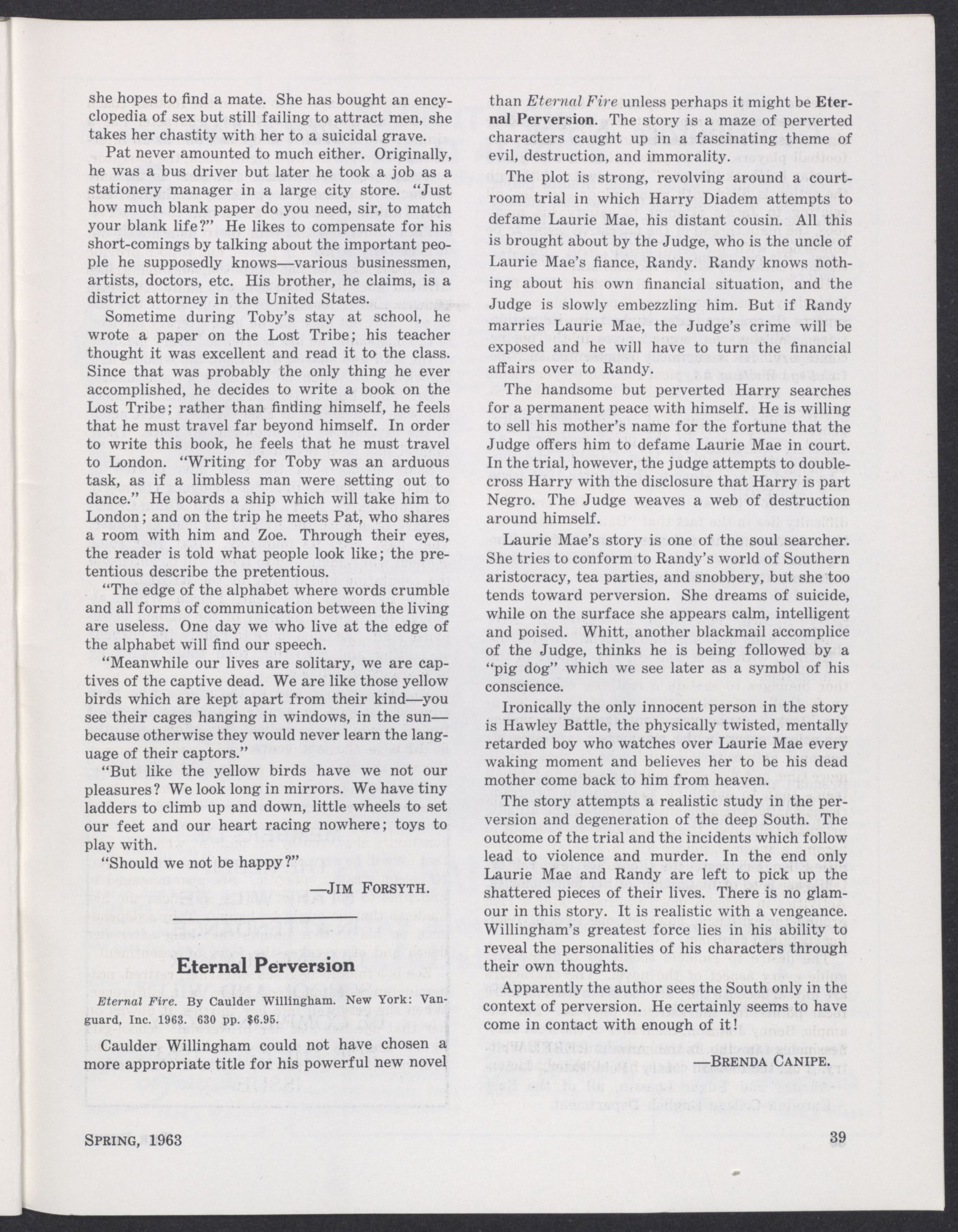 Reviews by Ben Bridgers, Gene Hugulet, Jim Forsyth, and Brenda