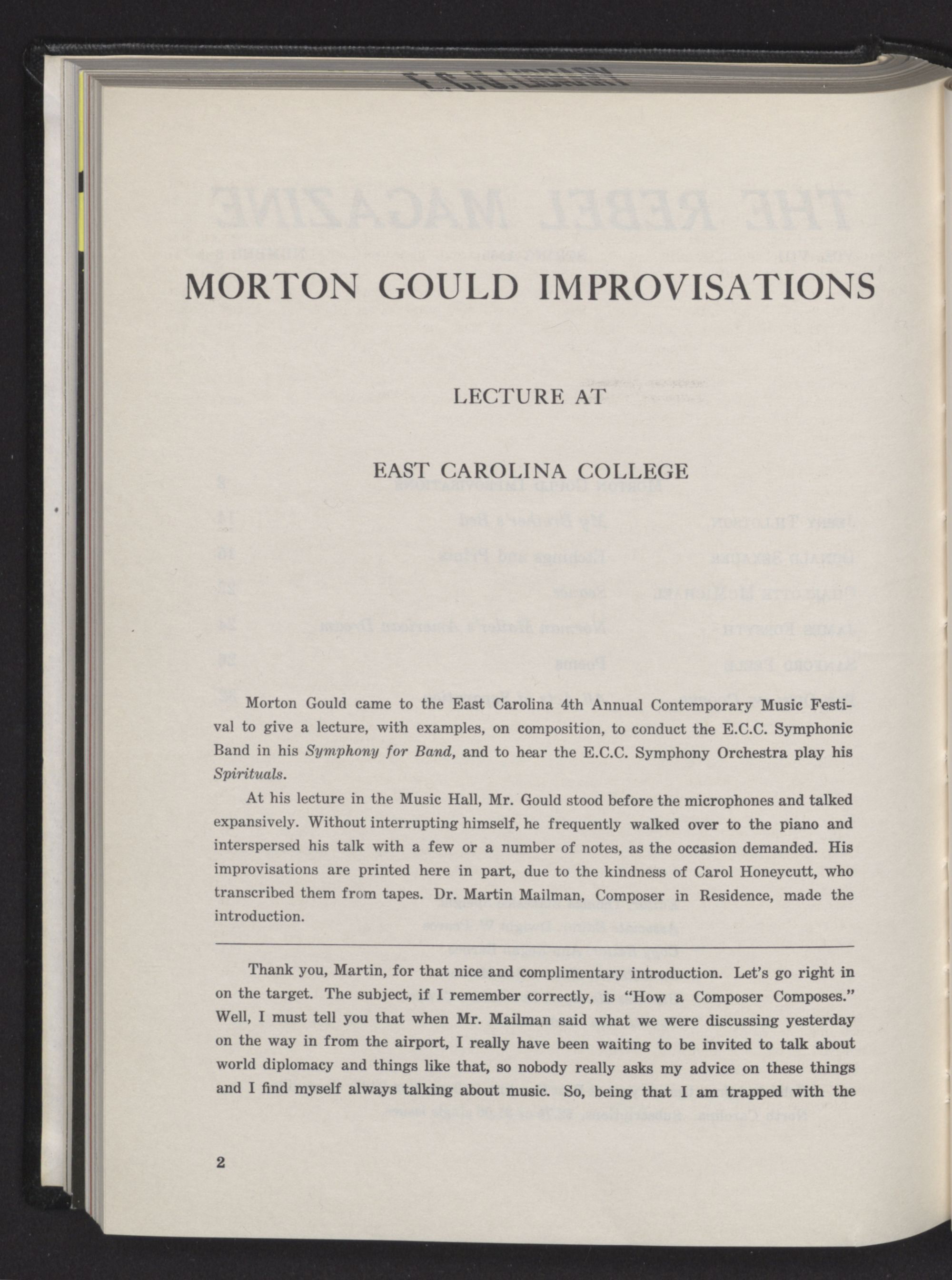 Morton Gould came to the East Carolina 4th Annual Contemporary Music Festi-