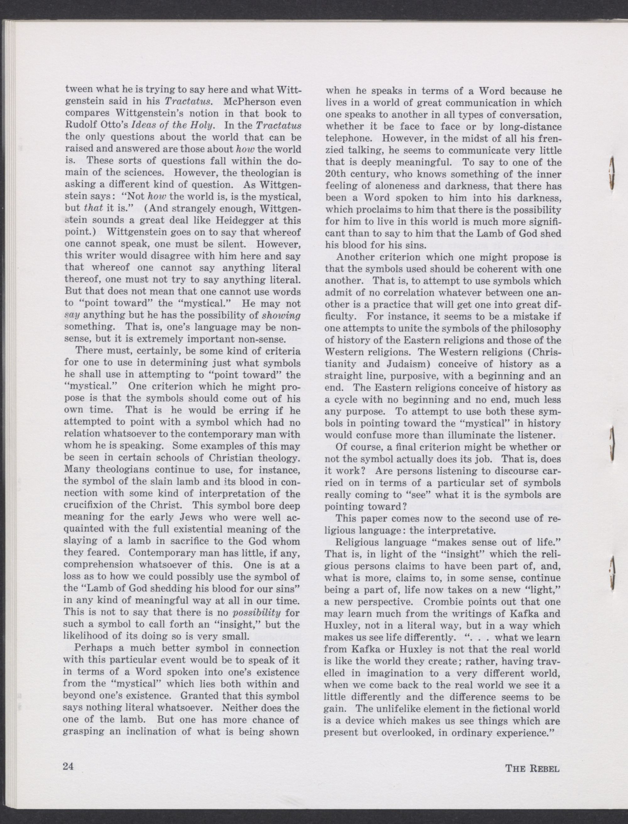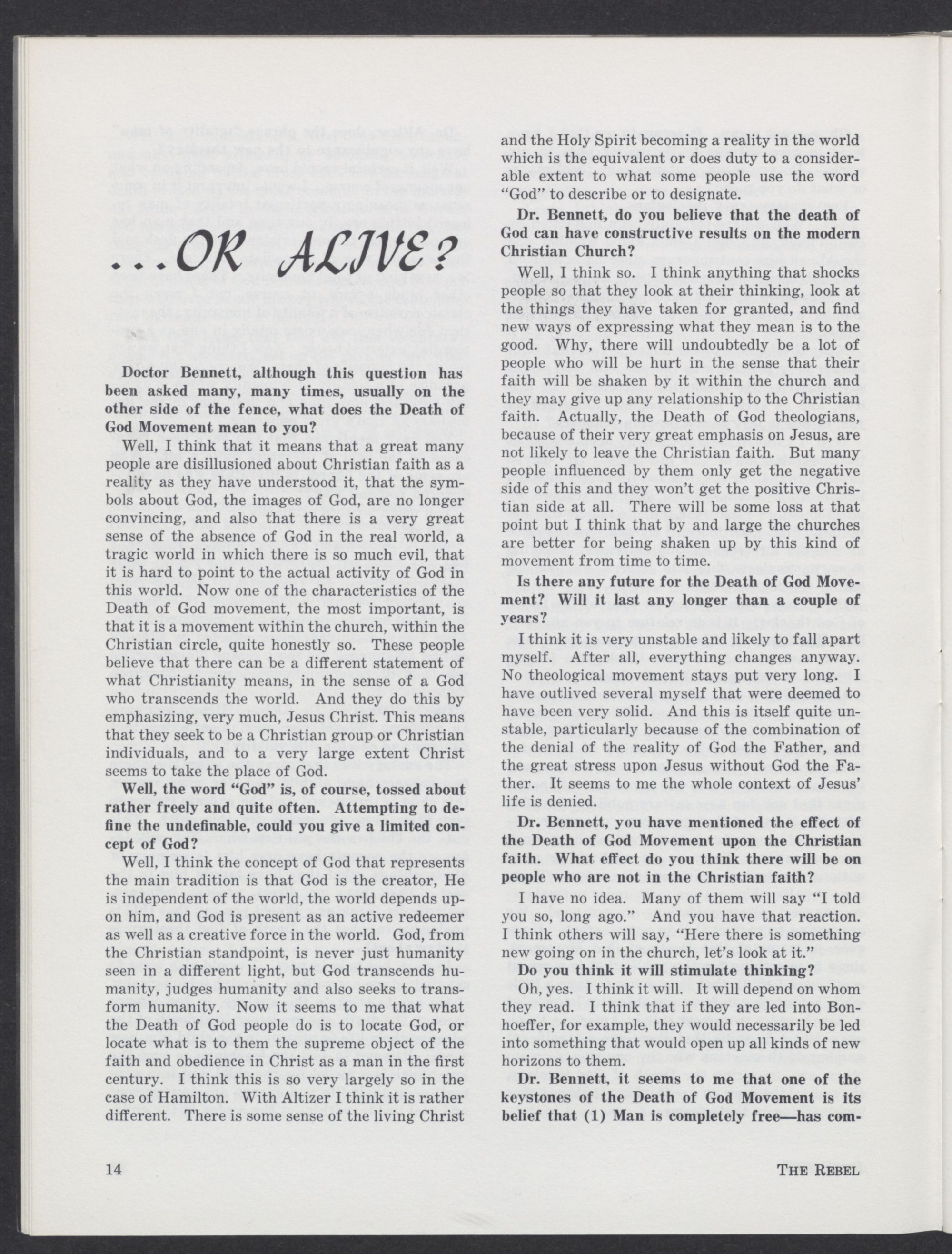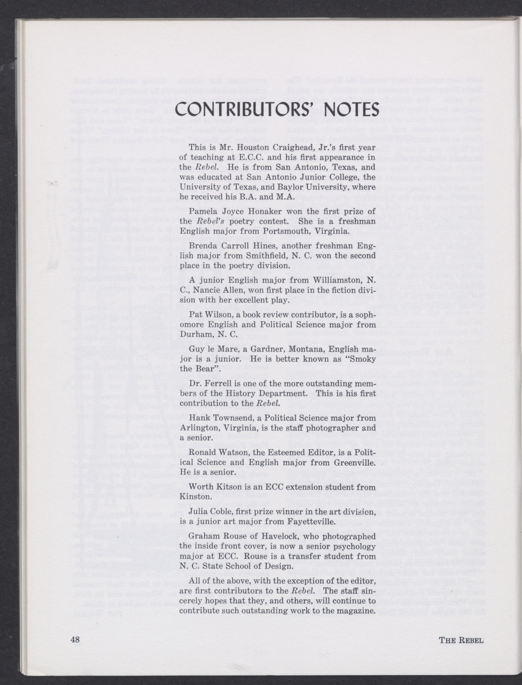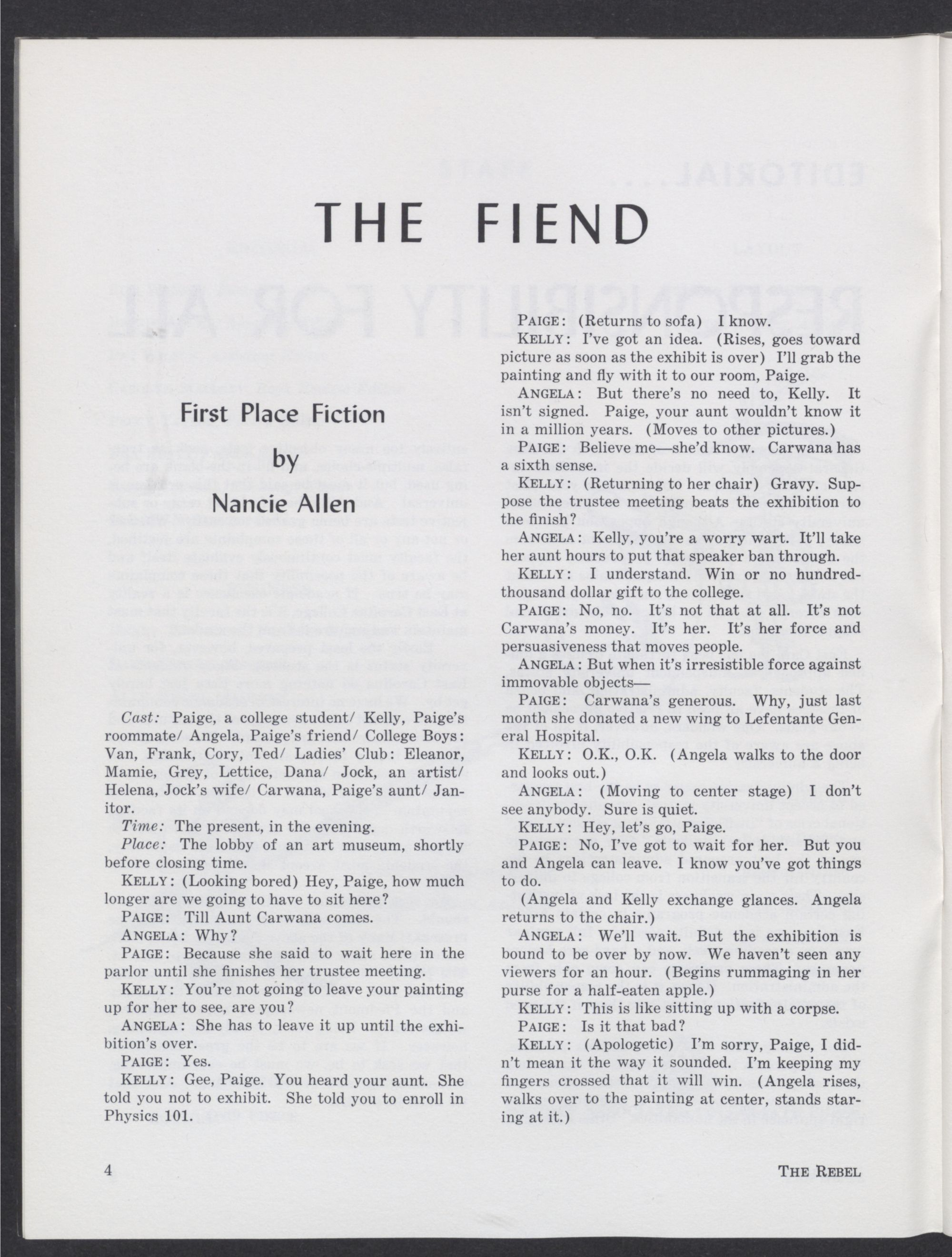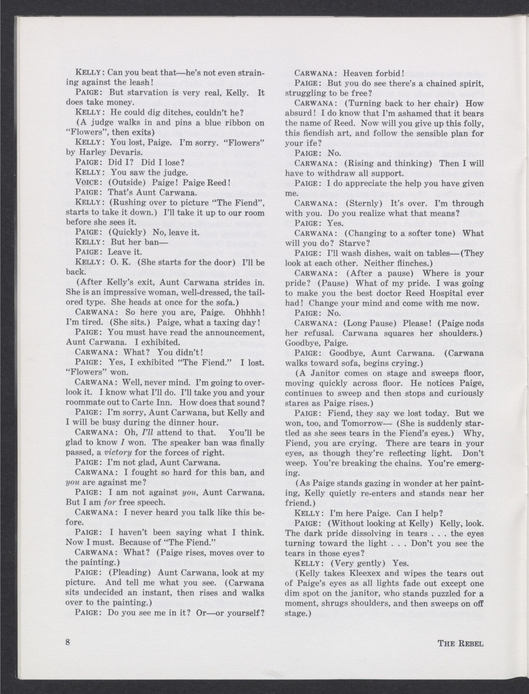 Contributions to THE REBEL should be directed to P. O. Box 2486