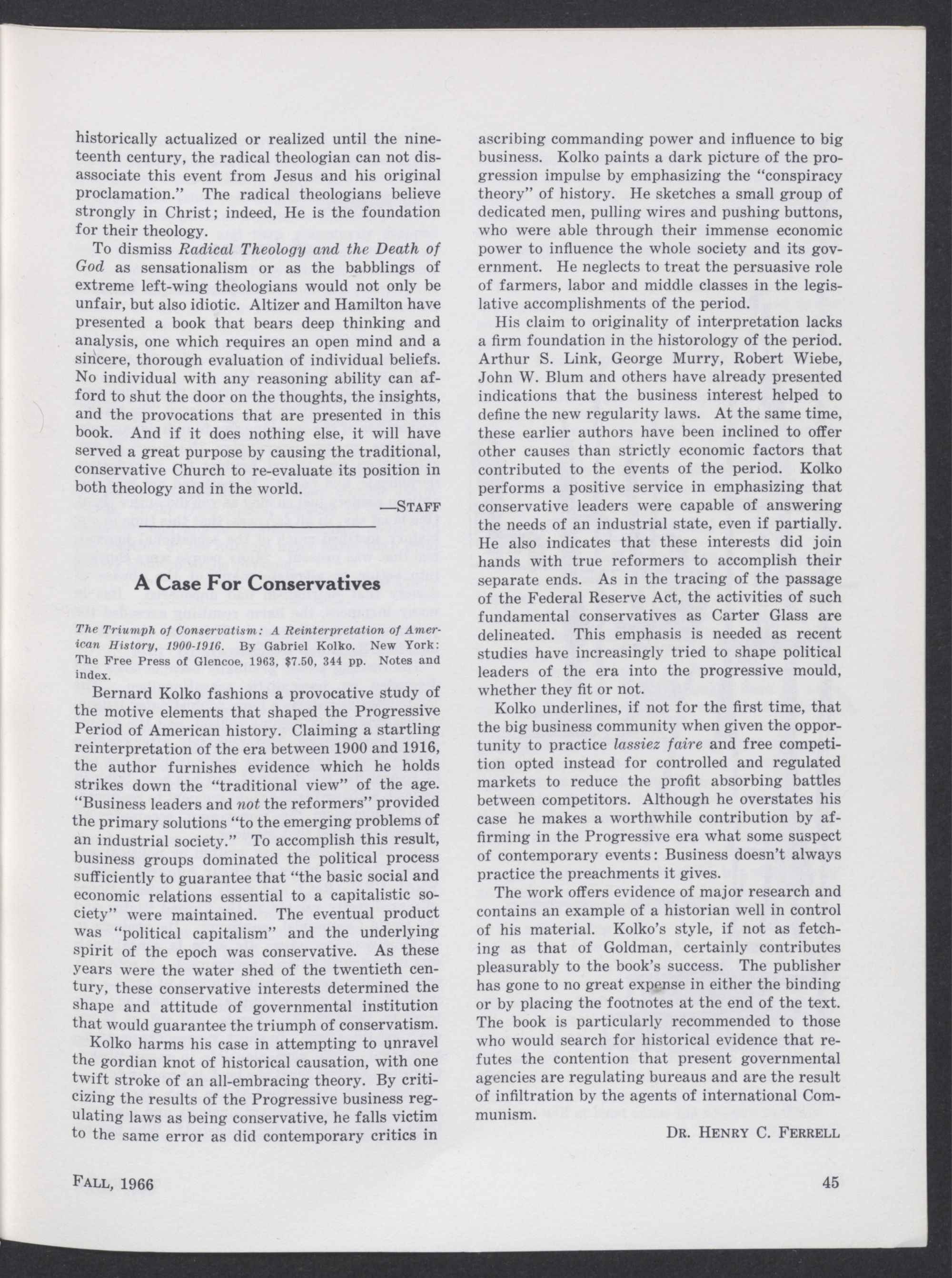 Reviews by Dr. Henry C. Ferrell, Ronald Watson, and Pat