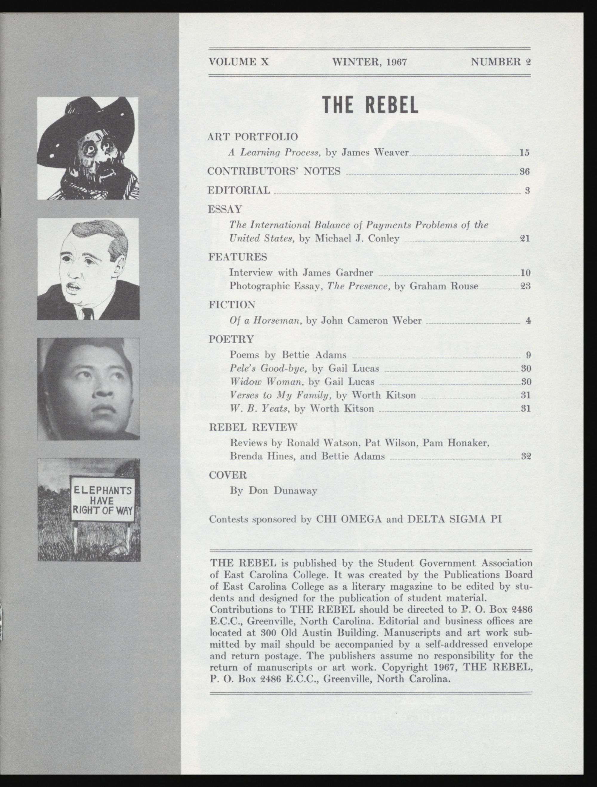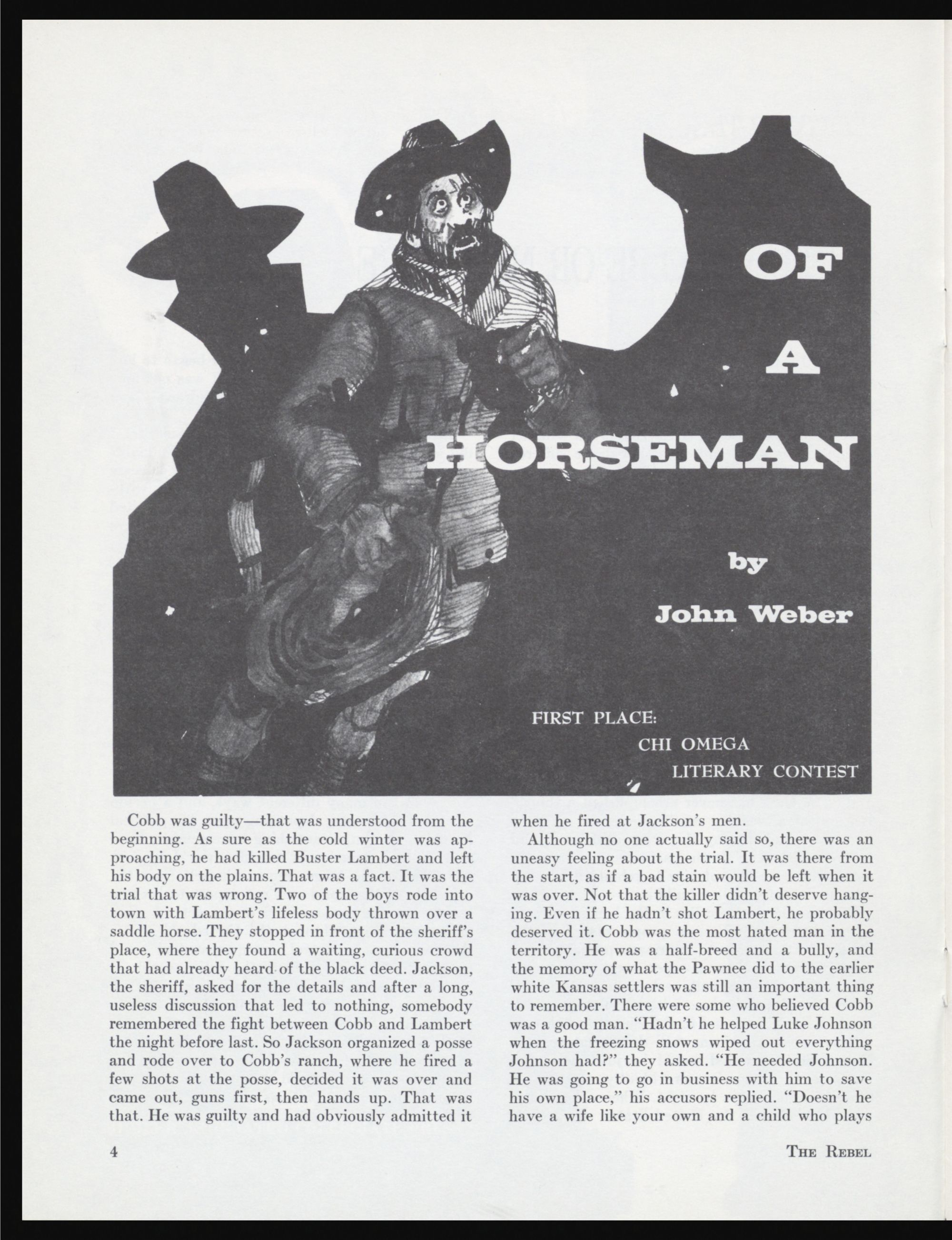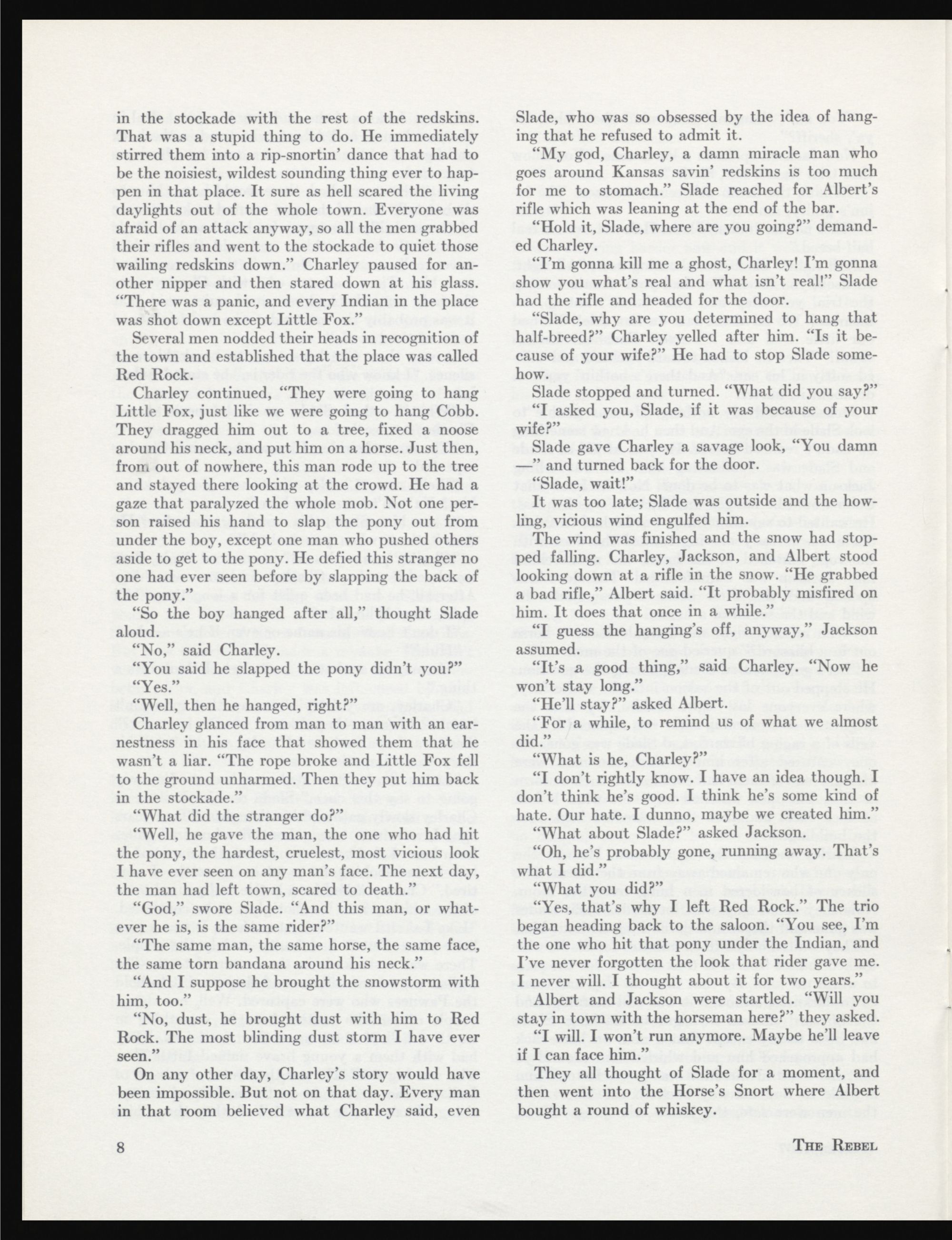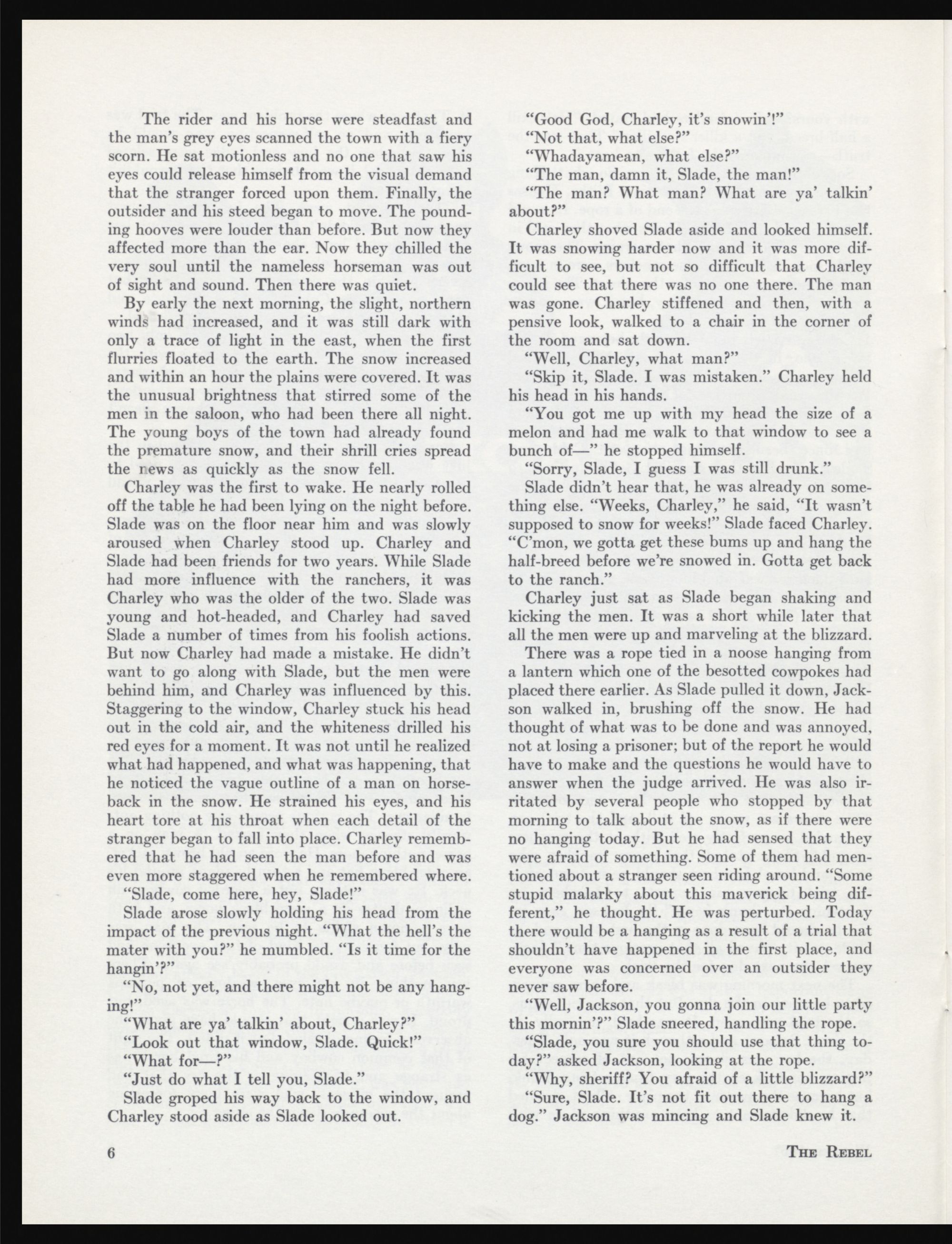 return of manuscripts or art work. Copyright 1967, THE REBEL,