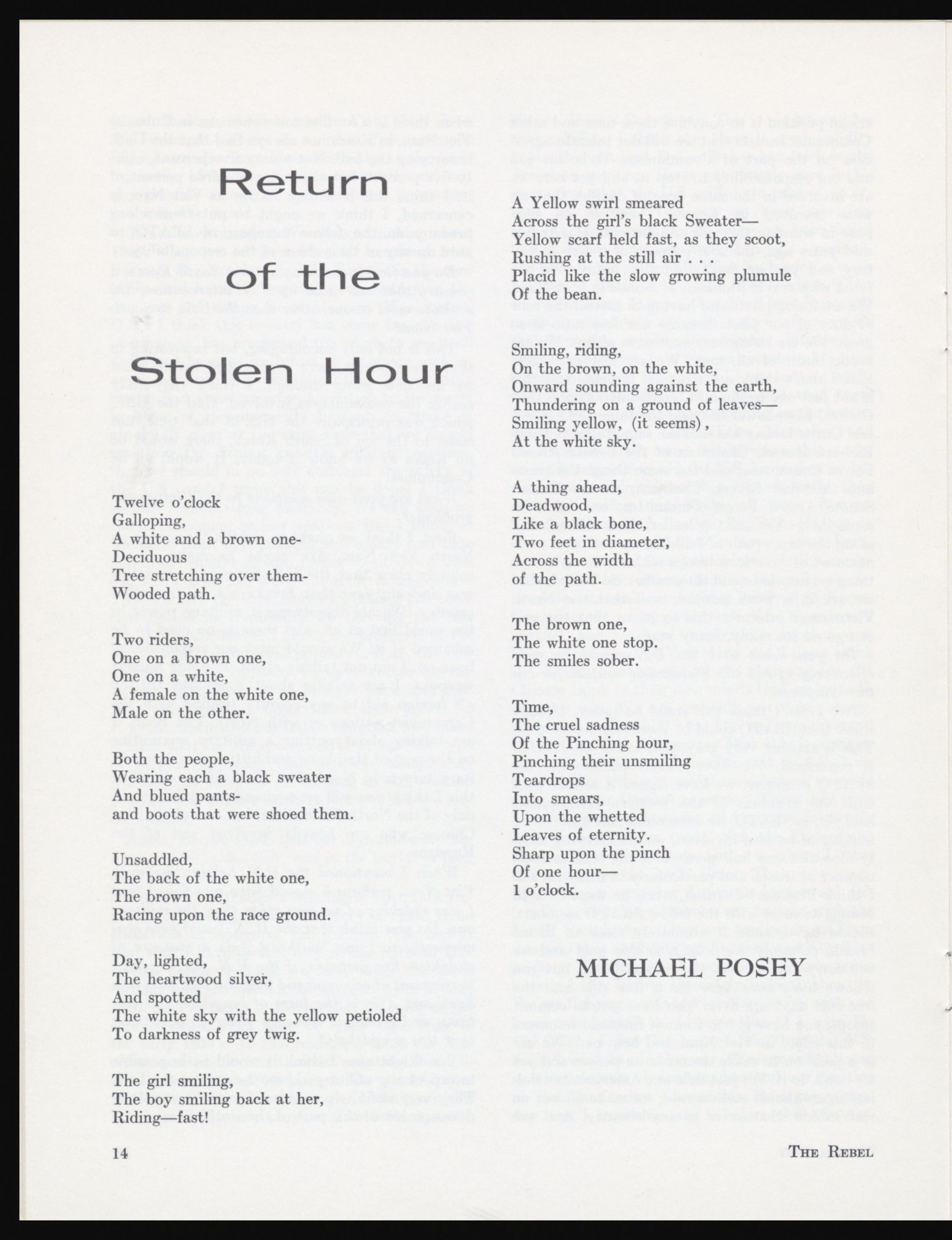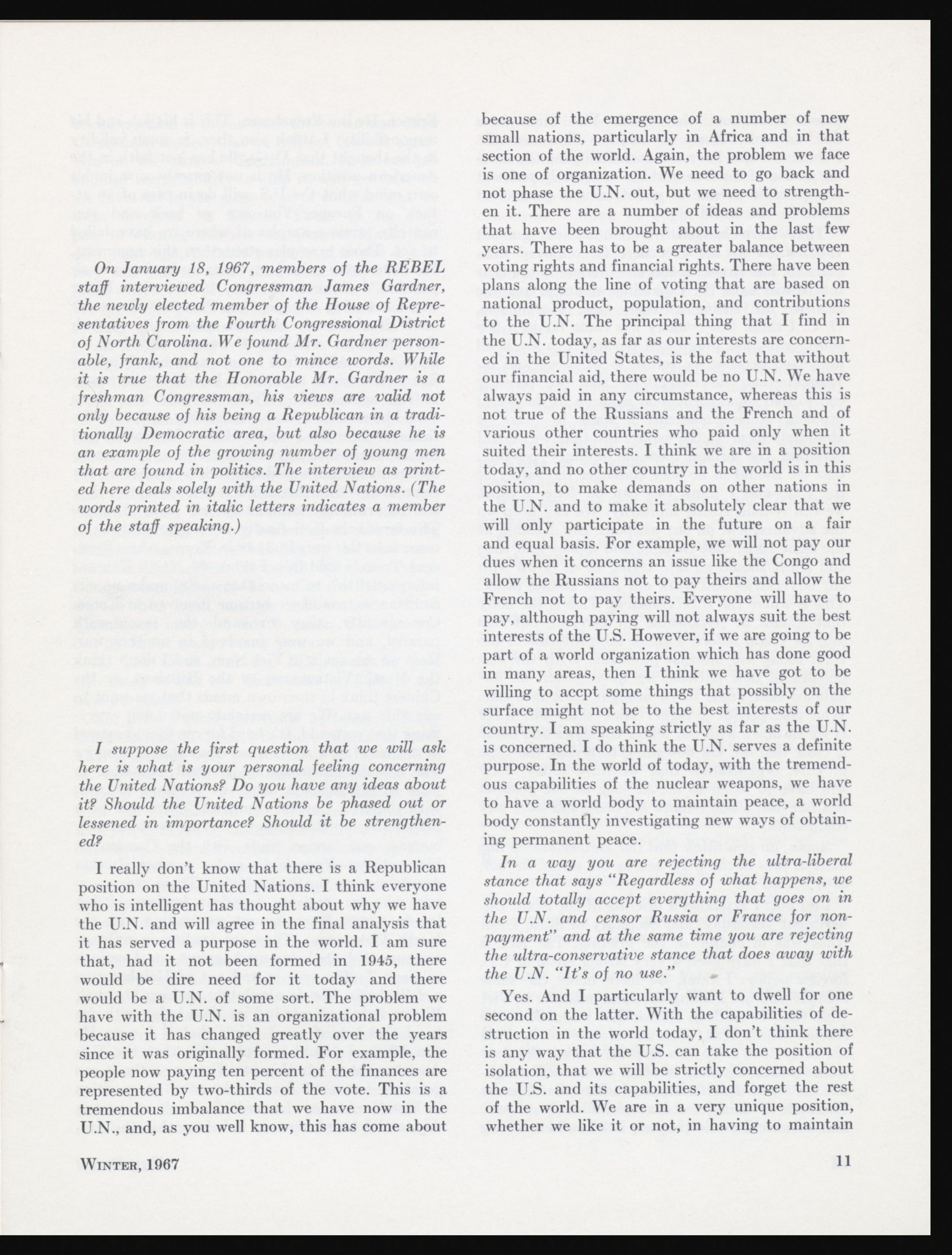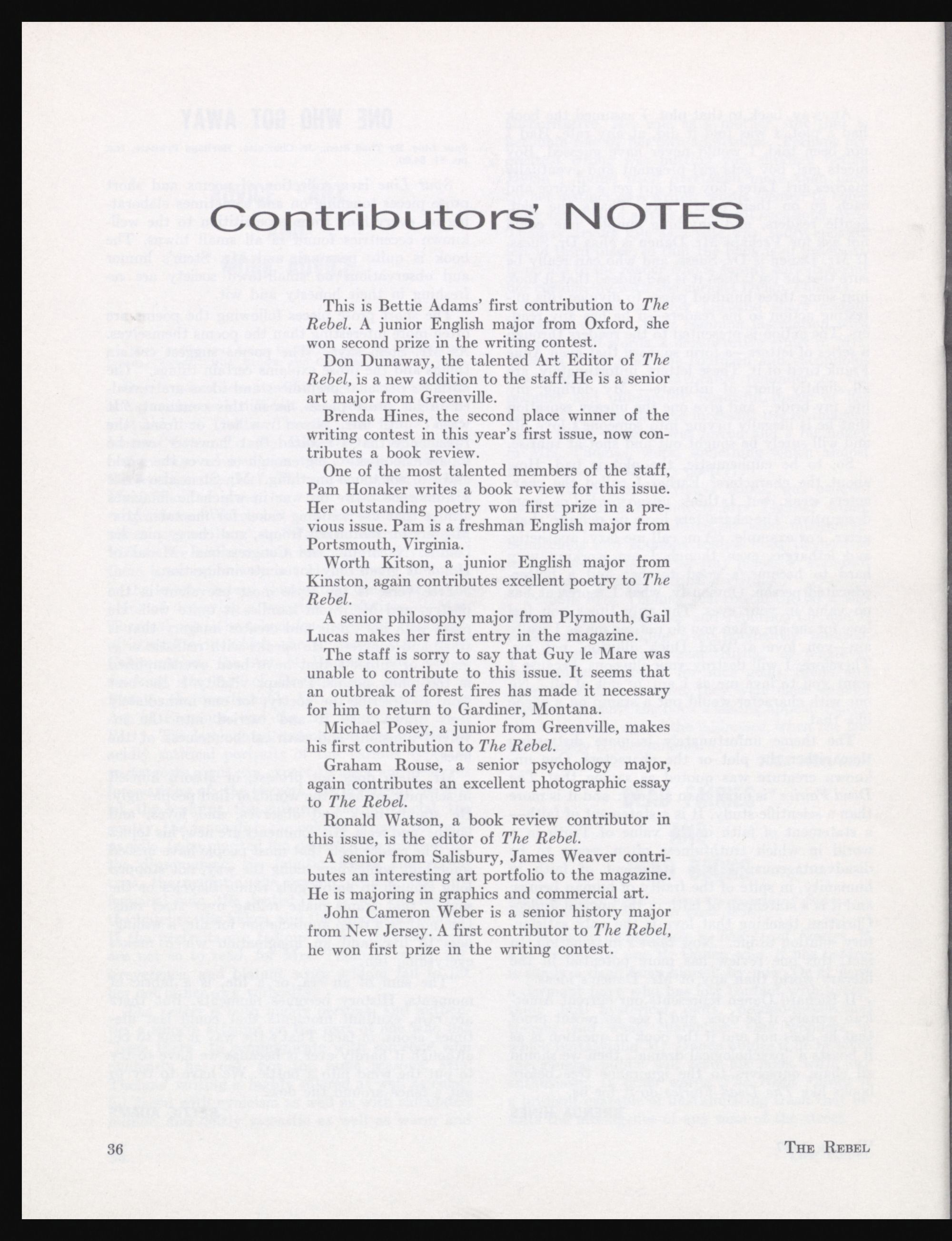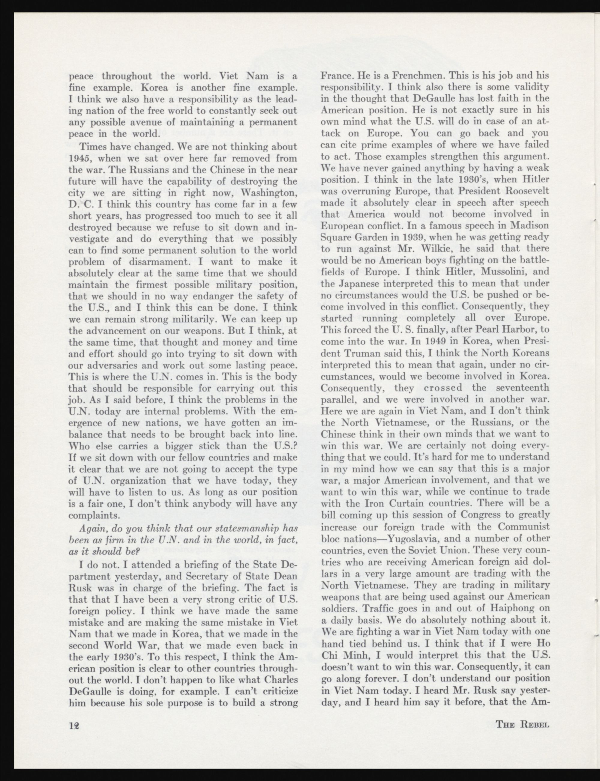 return of manuscripts or art work. Copyright 1967, THE REBEL,