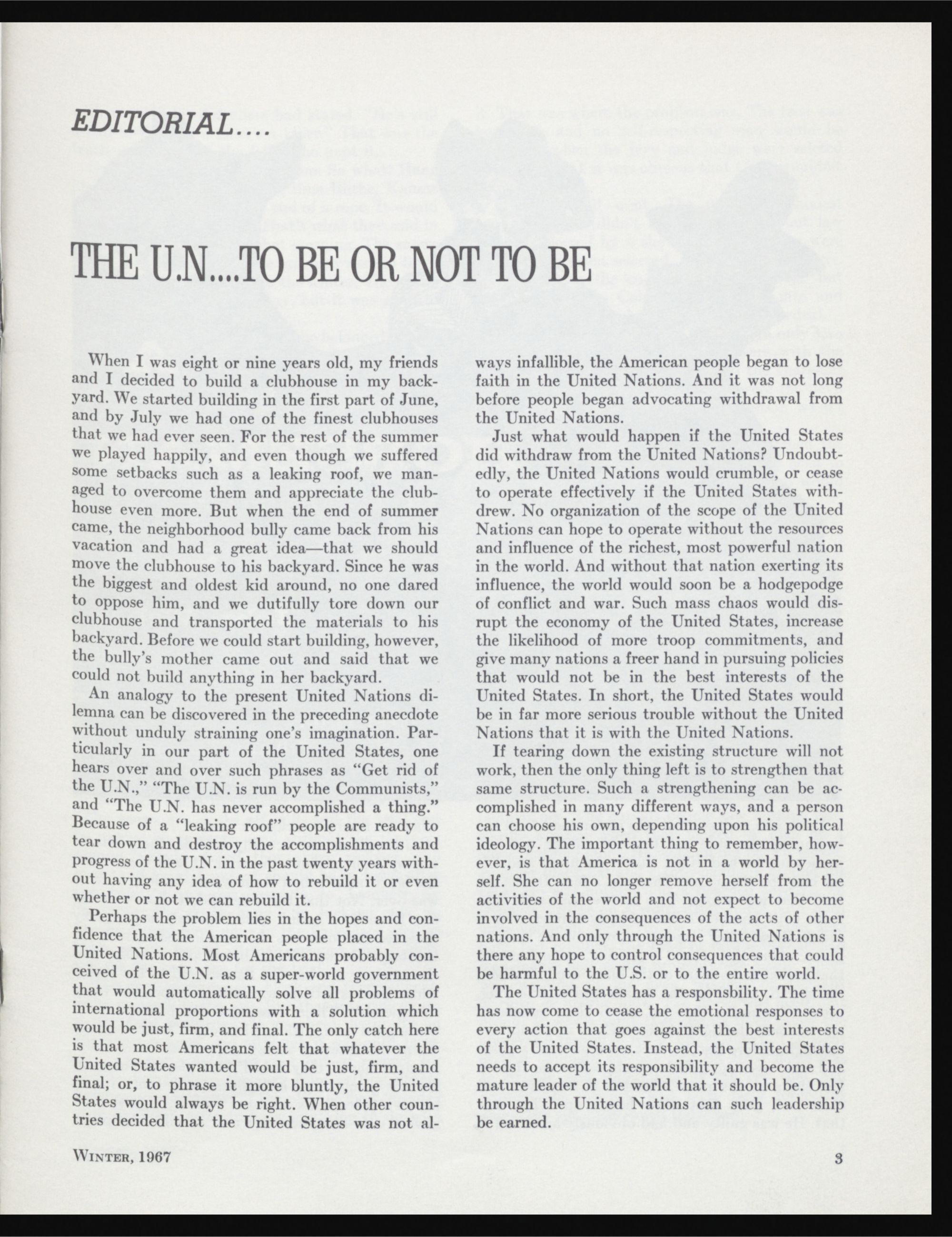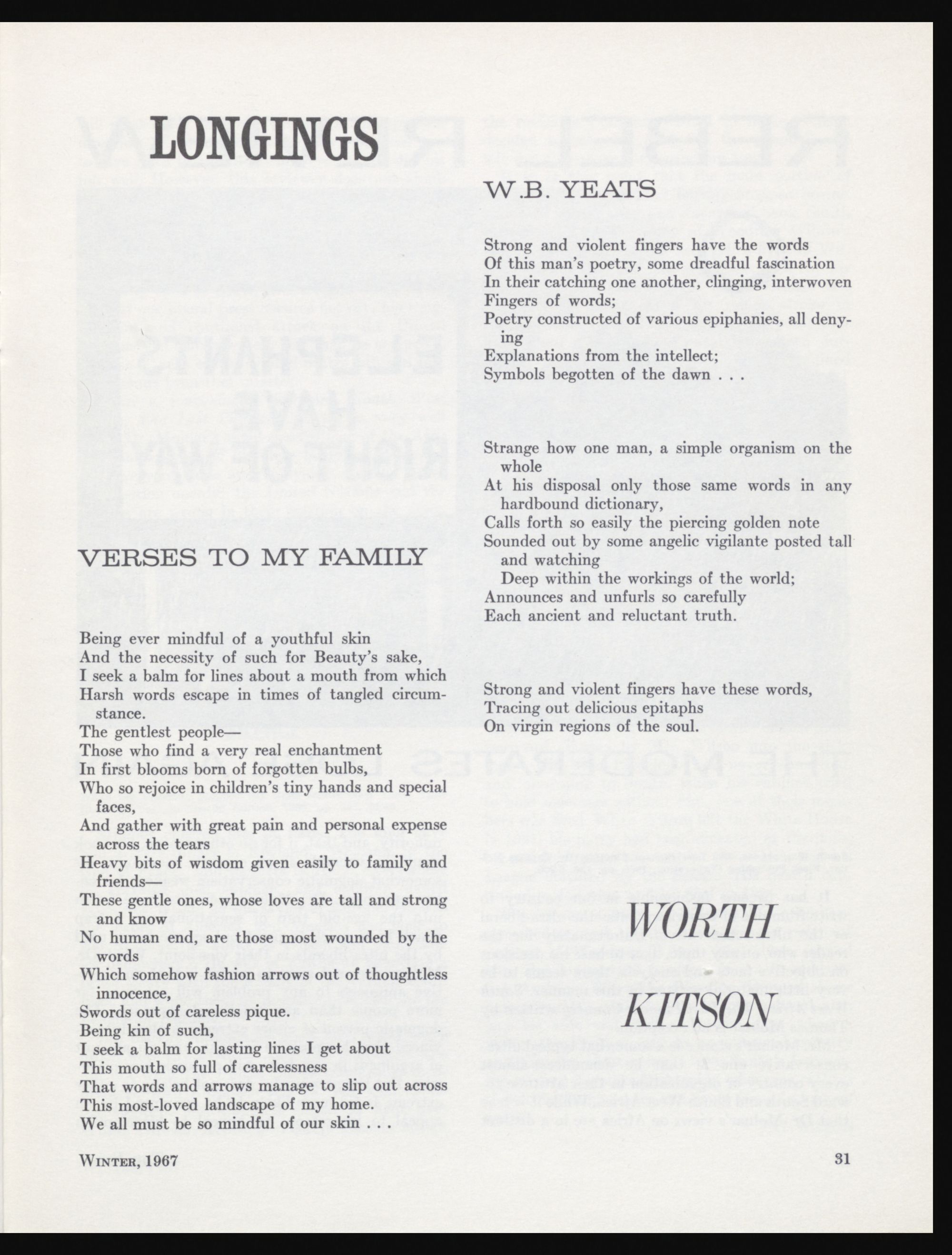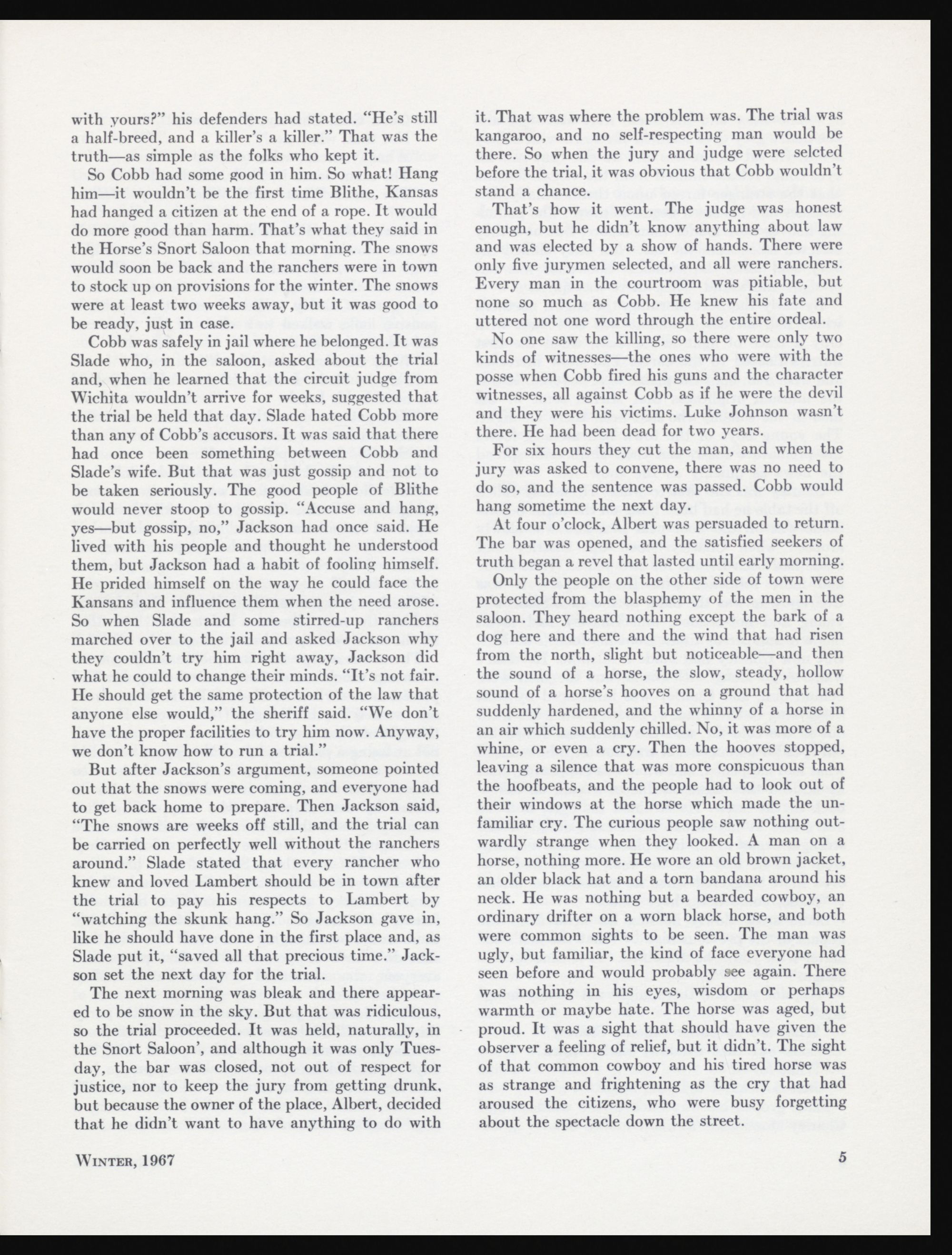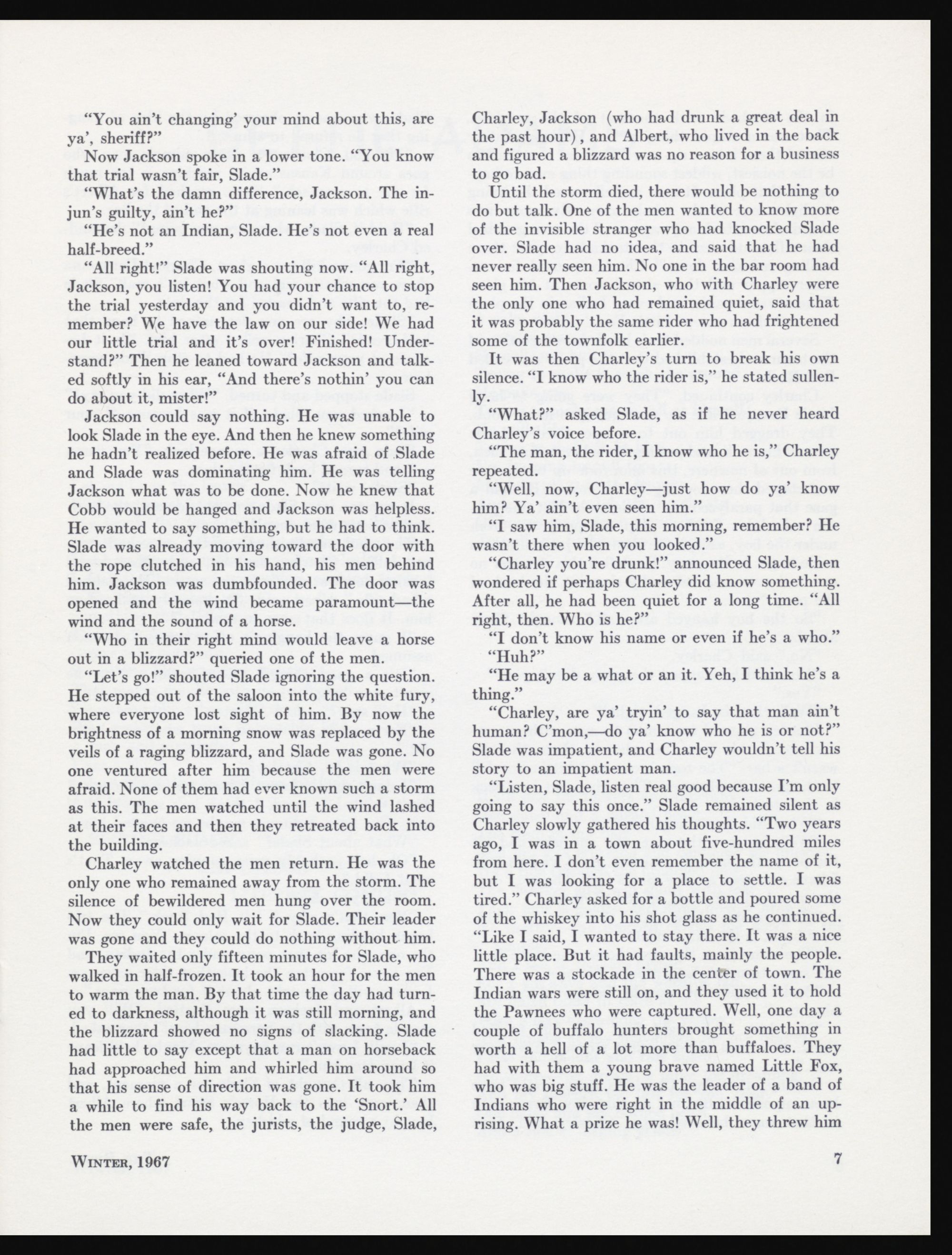 return of manuscripts or art work. Copyright 1967, THE REBEL,