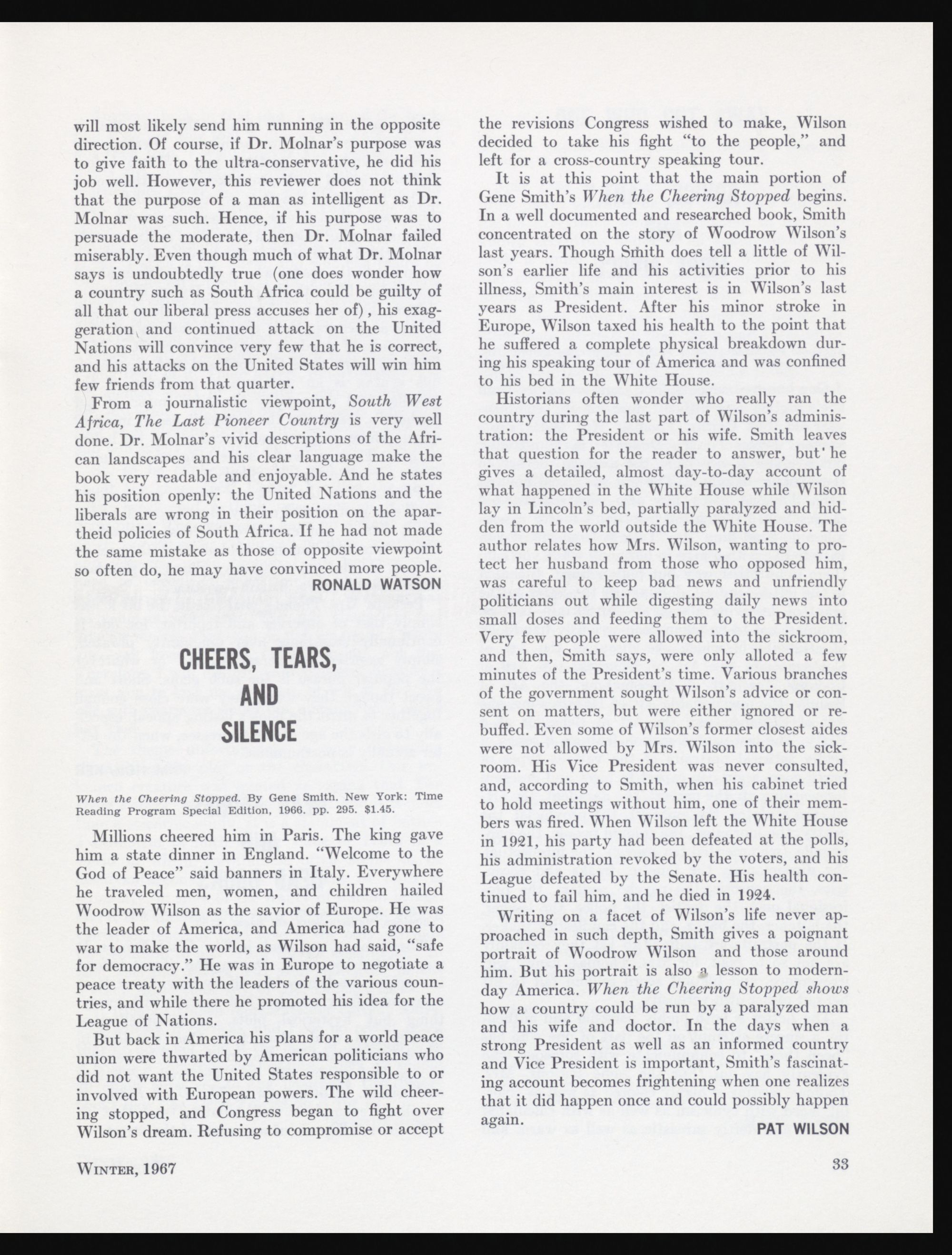 Reviews by Ronald Watson, Pat Wilson, Pam Honaker,