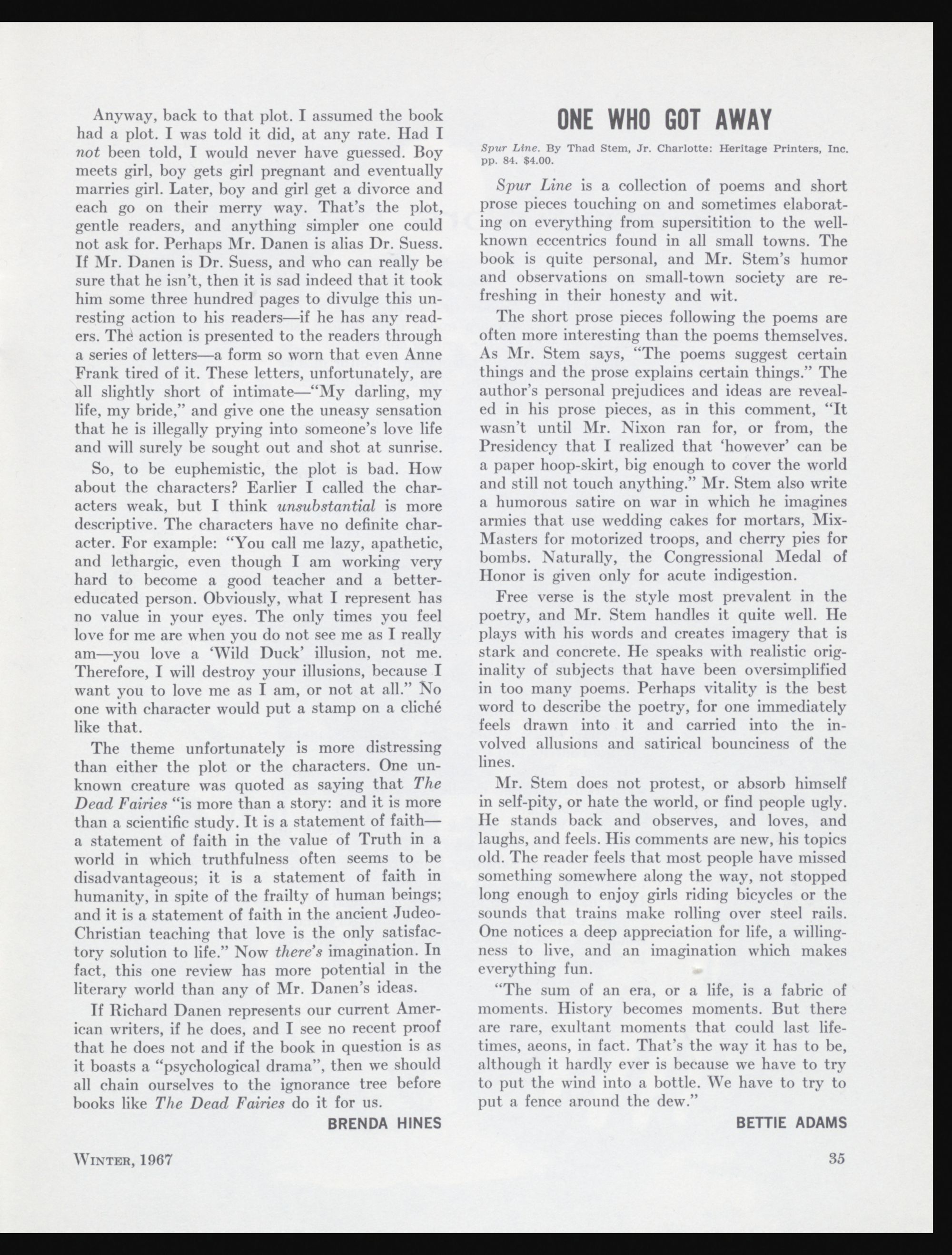 Spur Line. By Thad Stem, Jr. Charlotte: Heritage Printers, Inc.